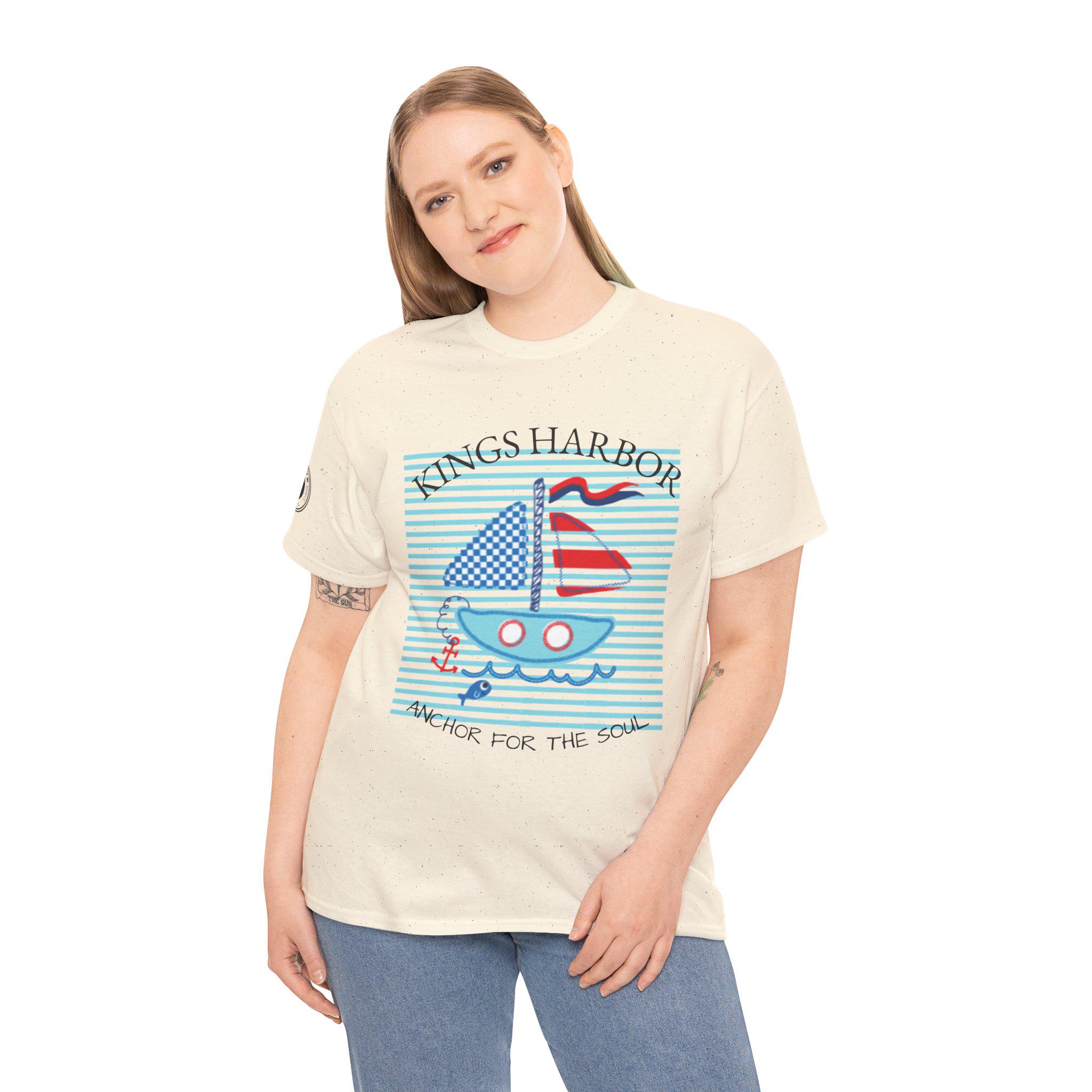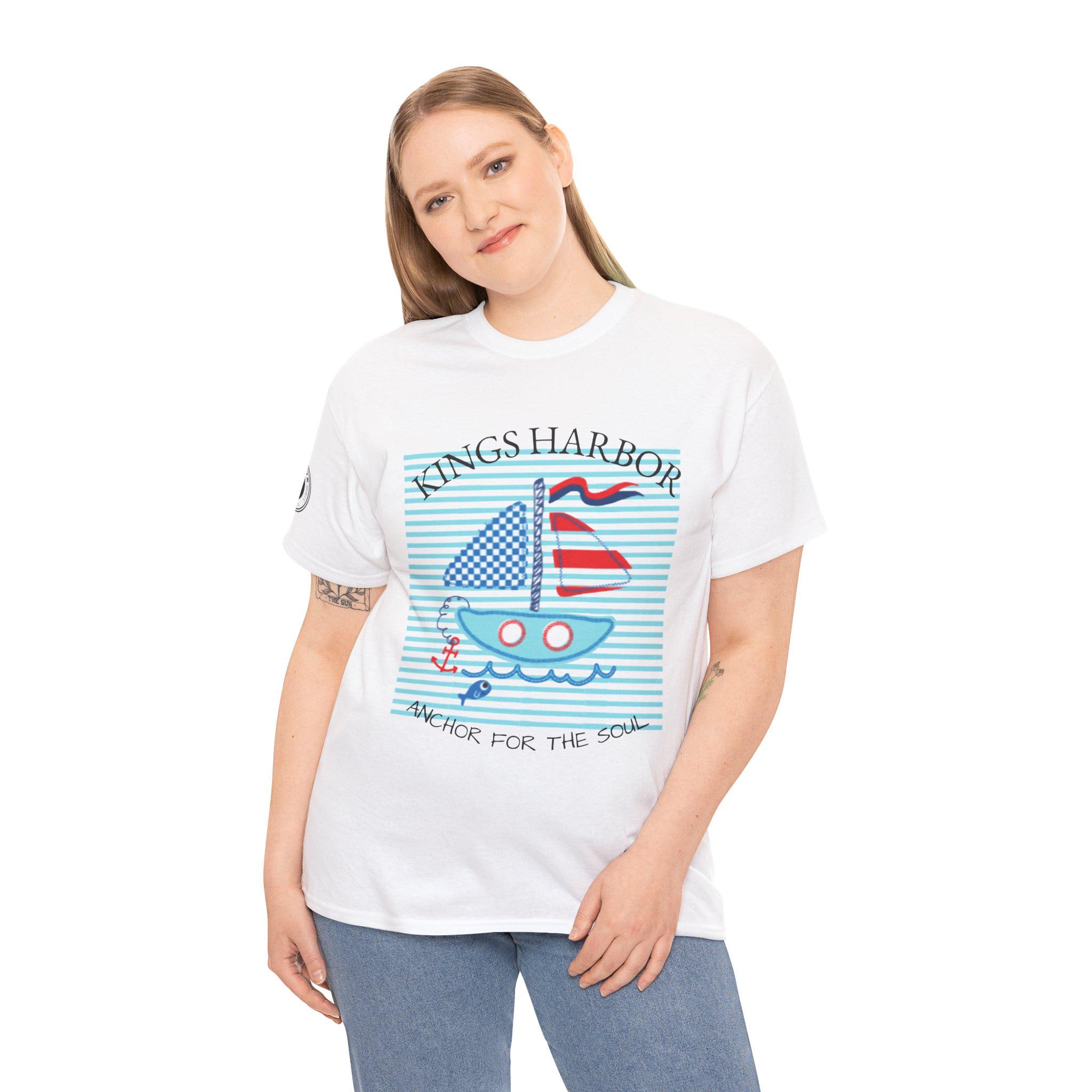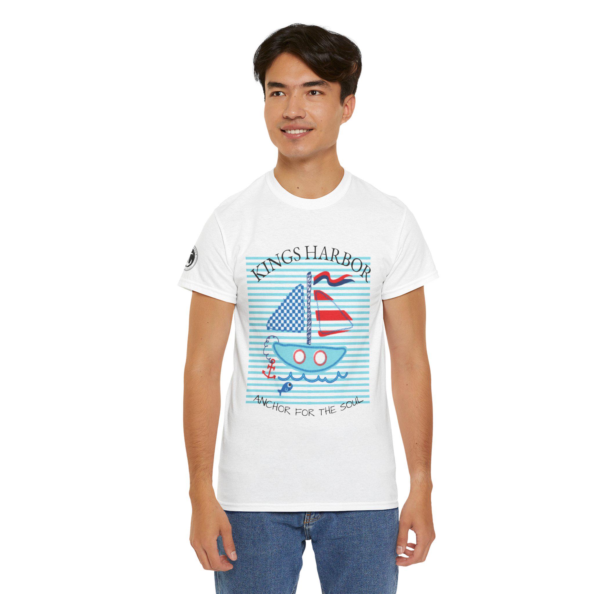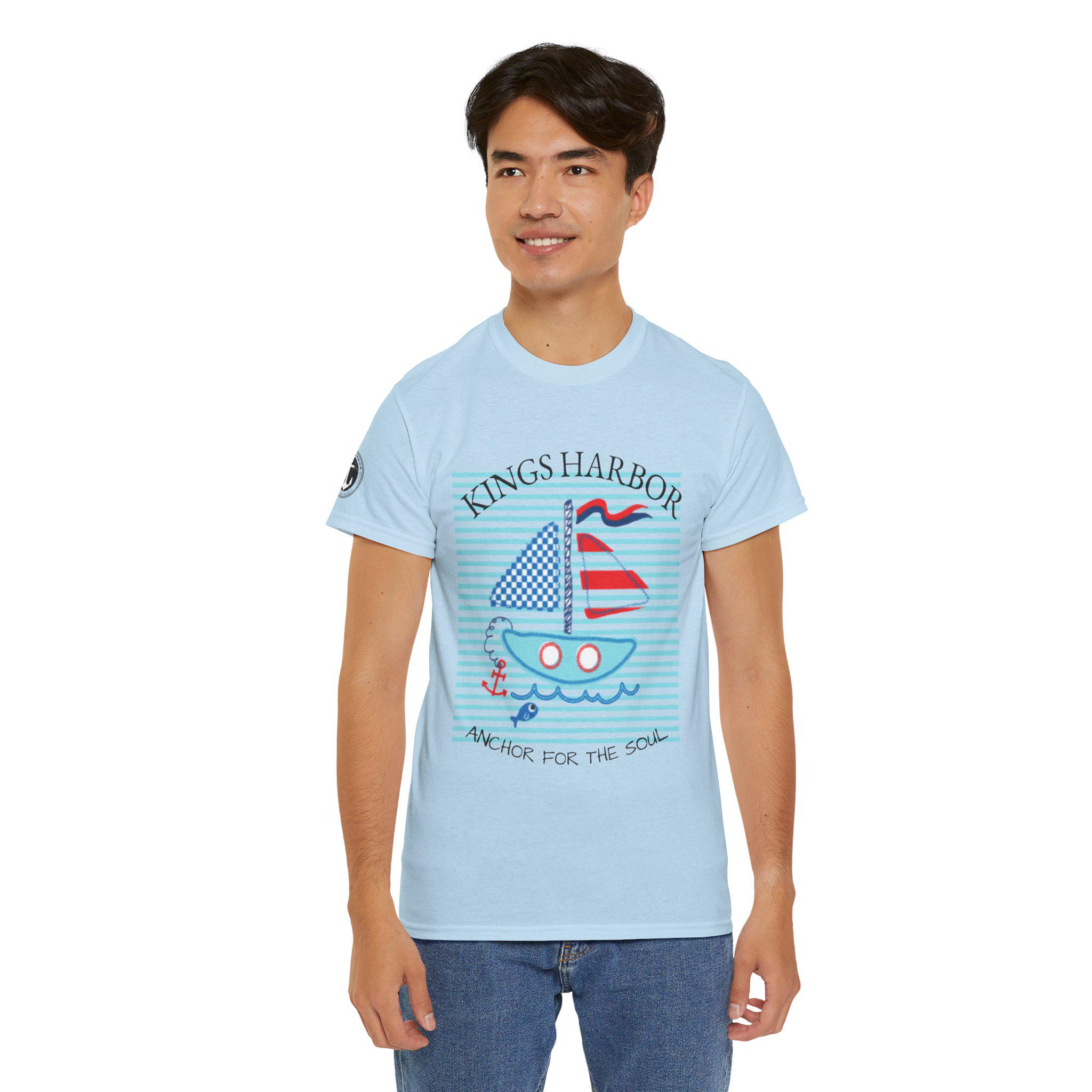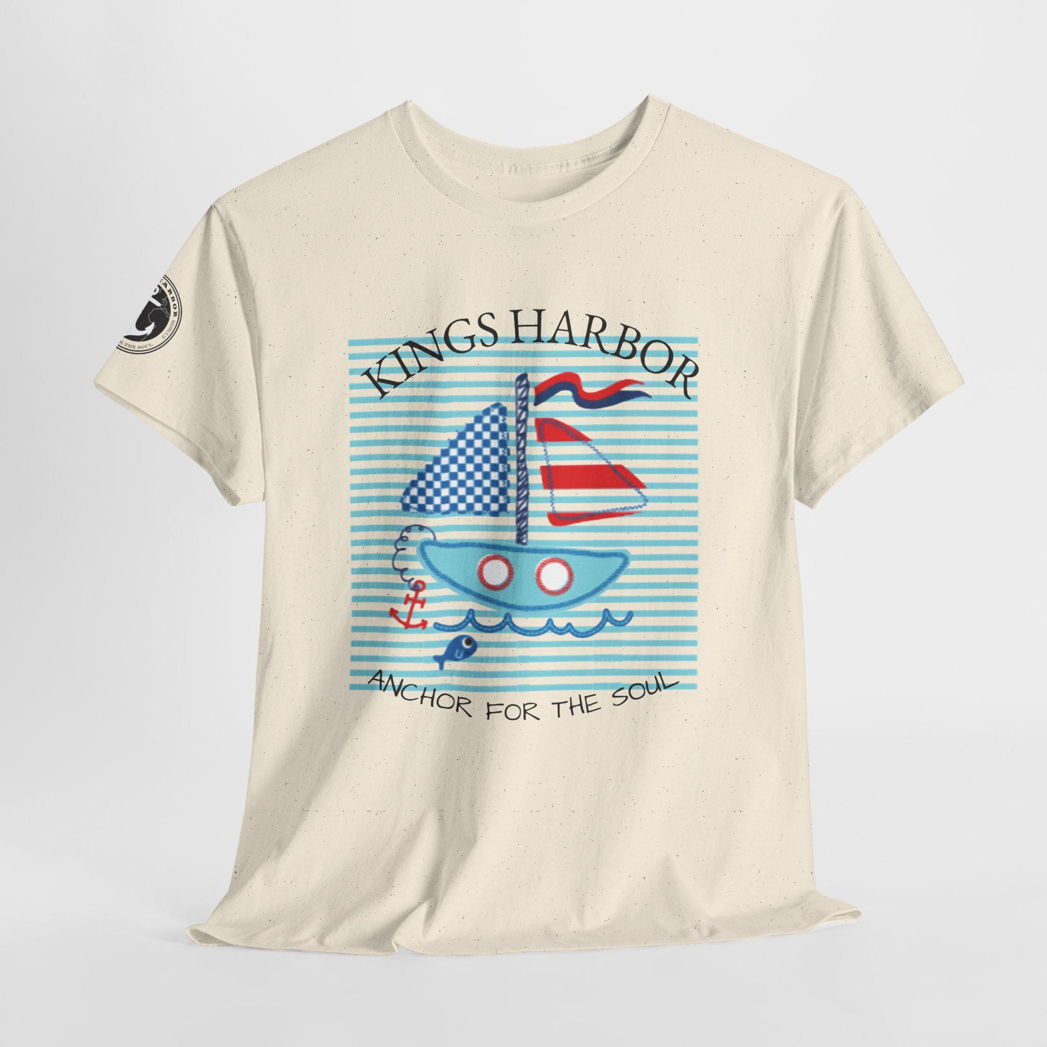 A fun toy boat design tee great for kids and the young at heart with a nautical feel. This tee brings a playful and whimsical vibe to your wardrobe, perfect for casual outings and everyday wear. Ideal for parents looking to add a touch of fun to their children's clothing collection or for adults who appreciate a childlike spirit.