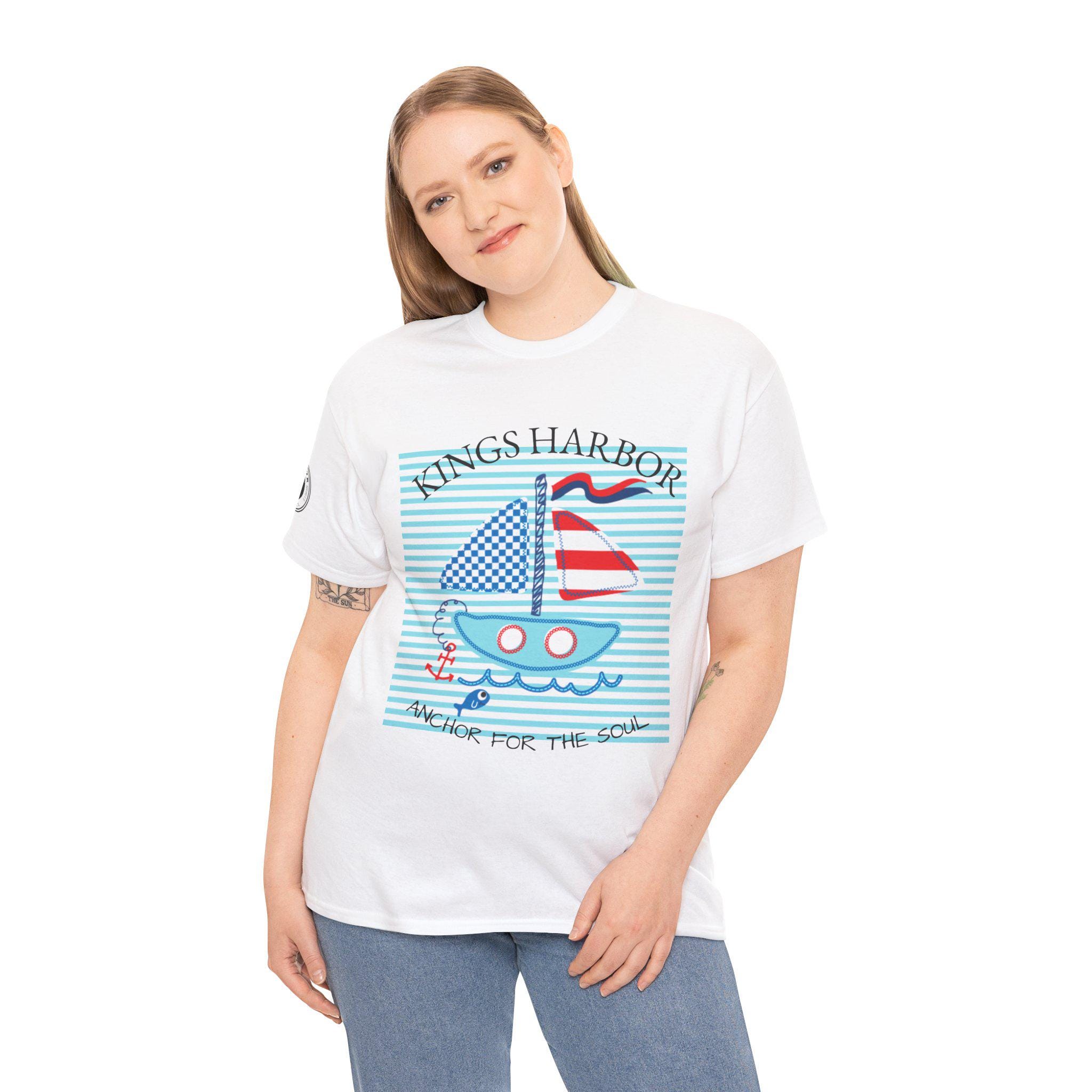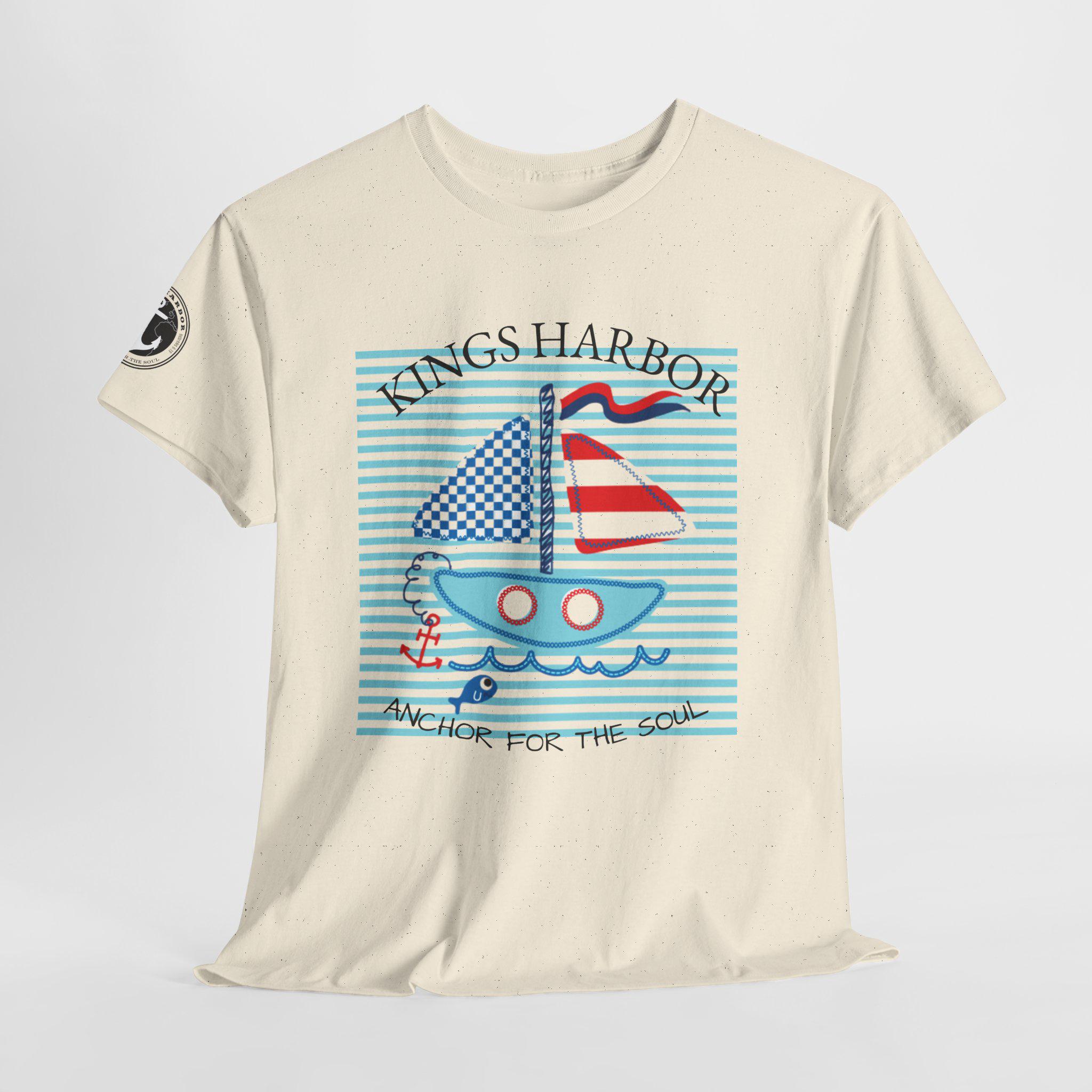 A fun toy boat design tee great for kids and the young at heart with a nautical feel. This tee brings a playful and whimsical vibe to your wardrobe, perfect for casual outings and everyday wear. Ideal for parents looking to add a touch of fun to their children's clothing collection or for adults who appreciate a childlike spirit.