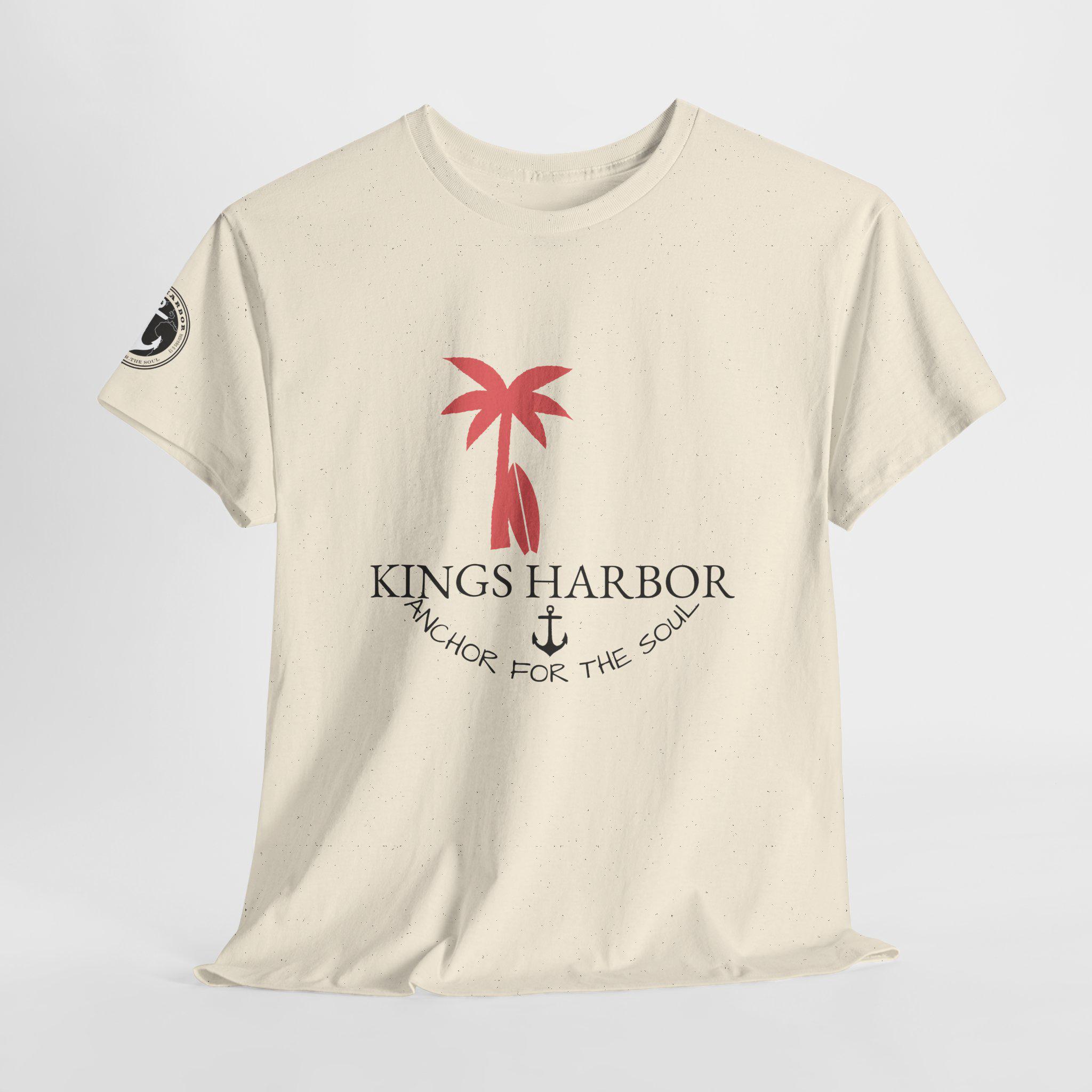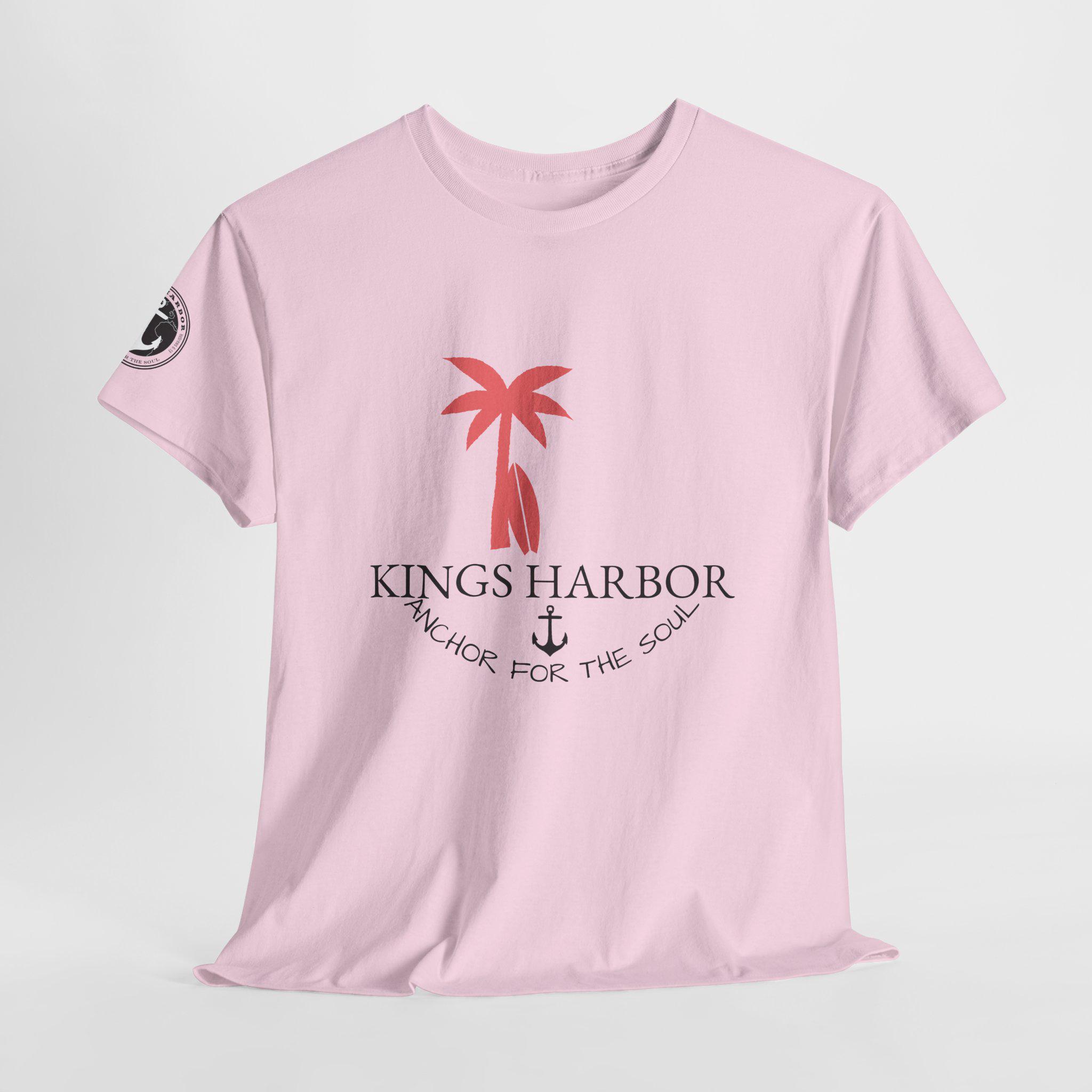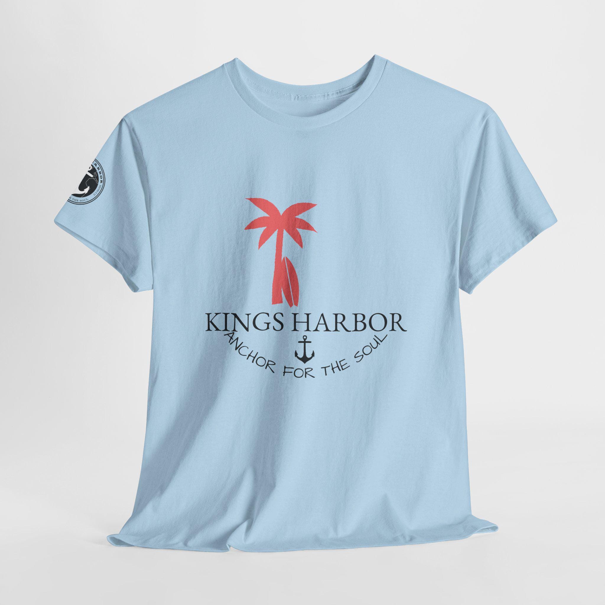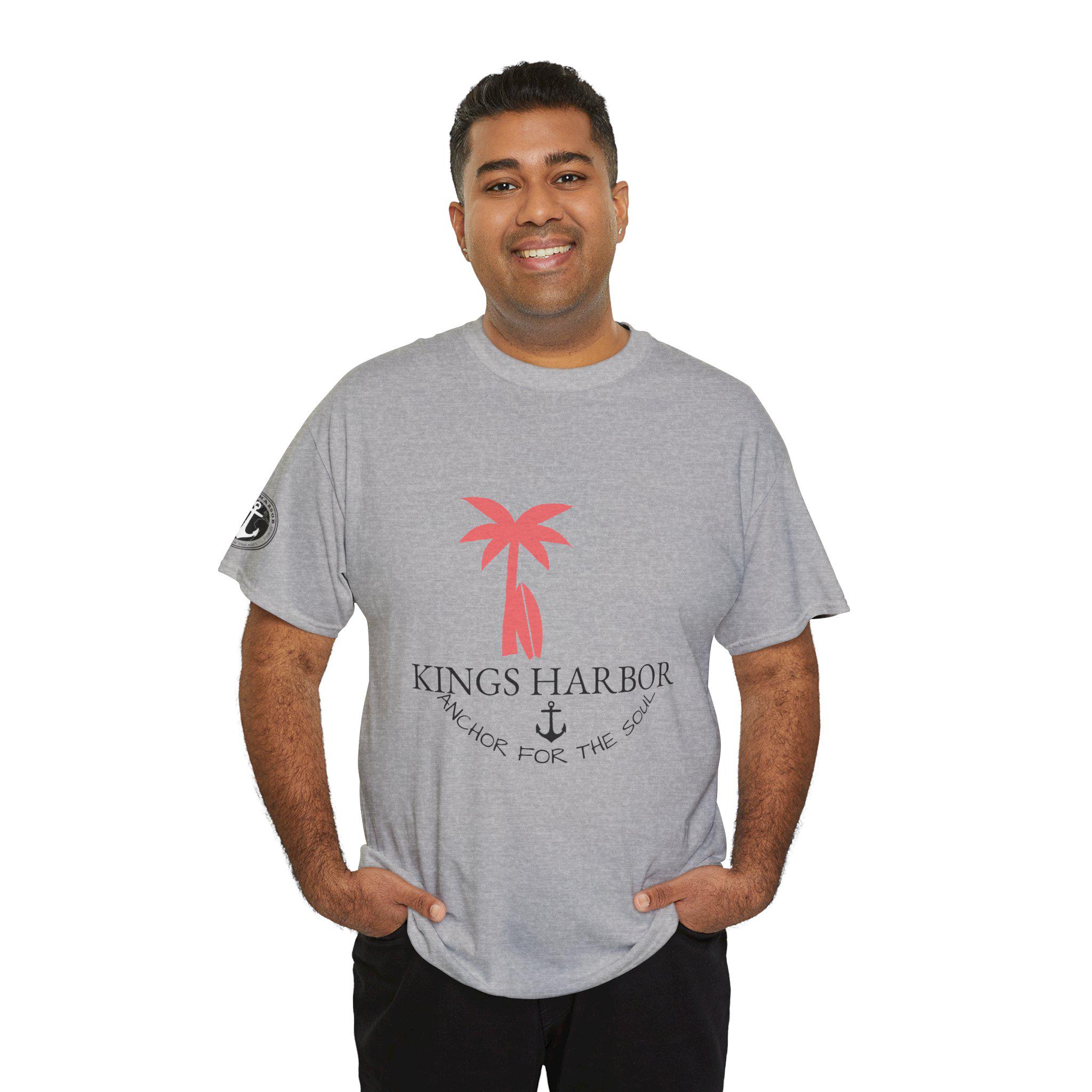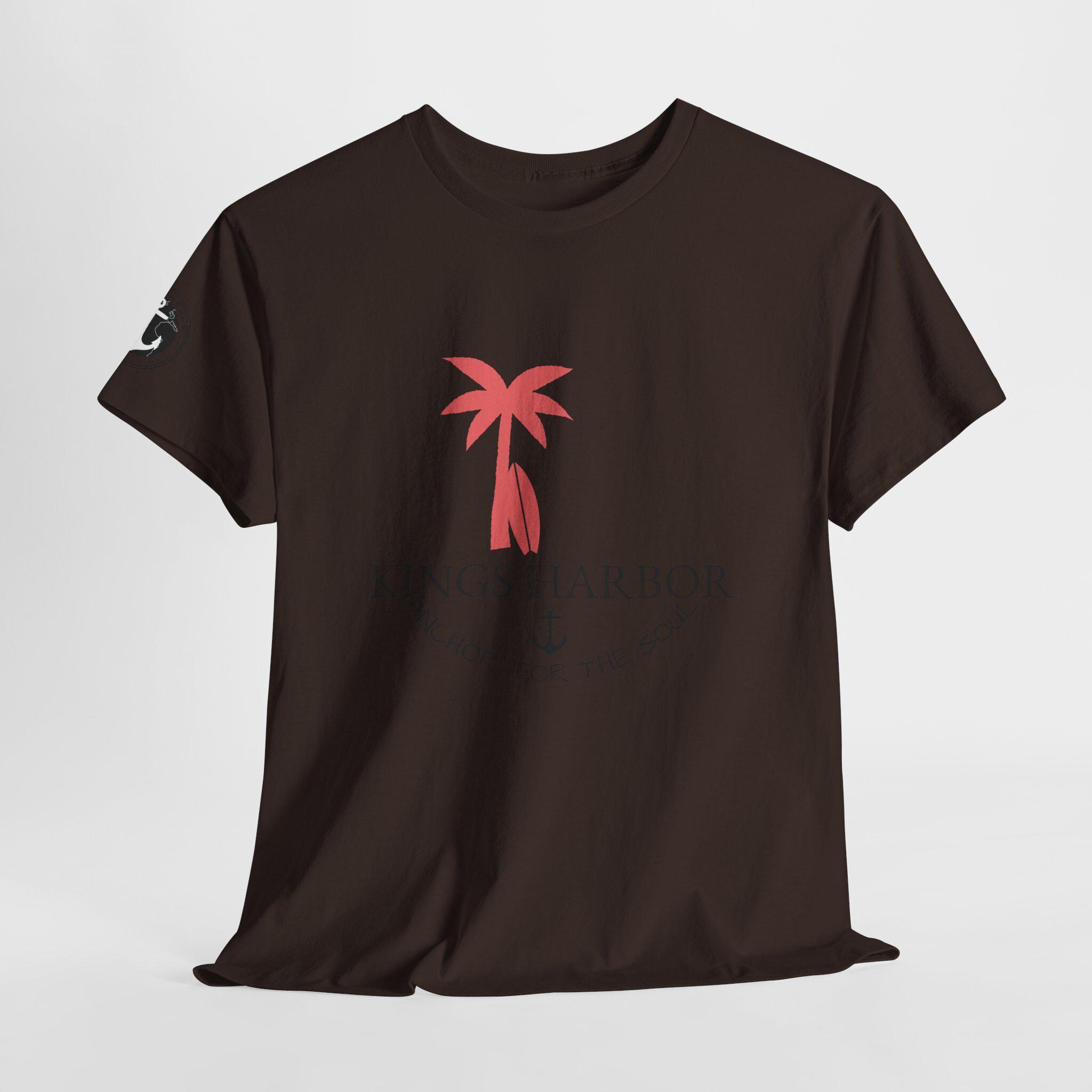 A unisex heavy cotton tee with a surf board and palm tree design that gives a unique and fresh vibe, perfect for any beach goer. Let this design breathe fresh air into your soul. Relevant for beach lovers and vacation enthusiasts. Perfect for summer, beach holidays, and casual gatherings.