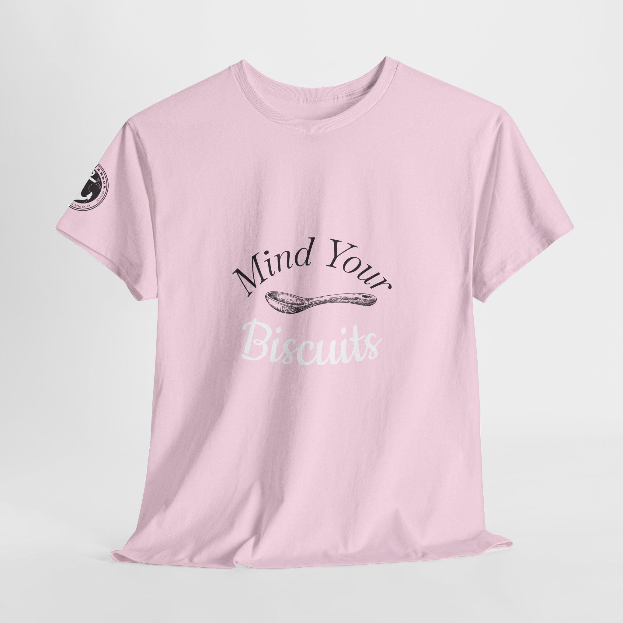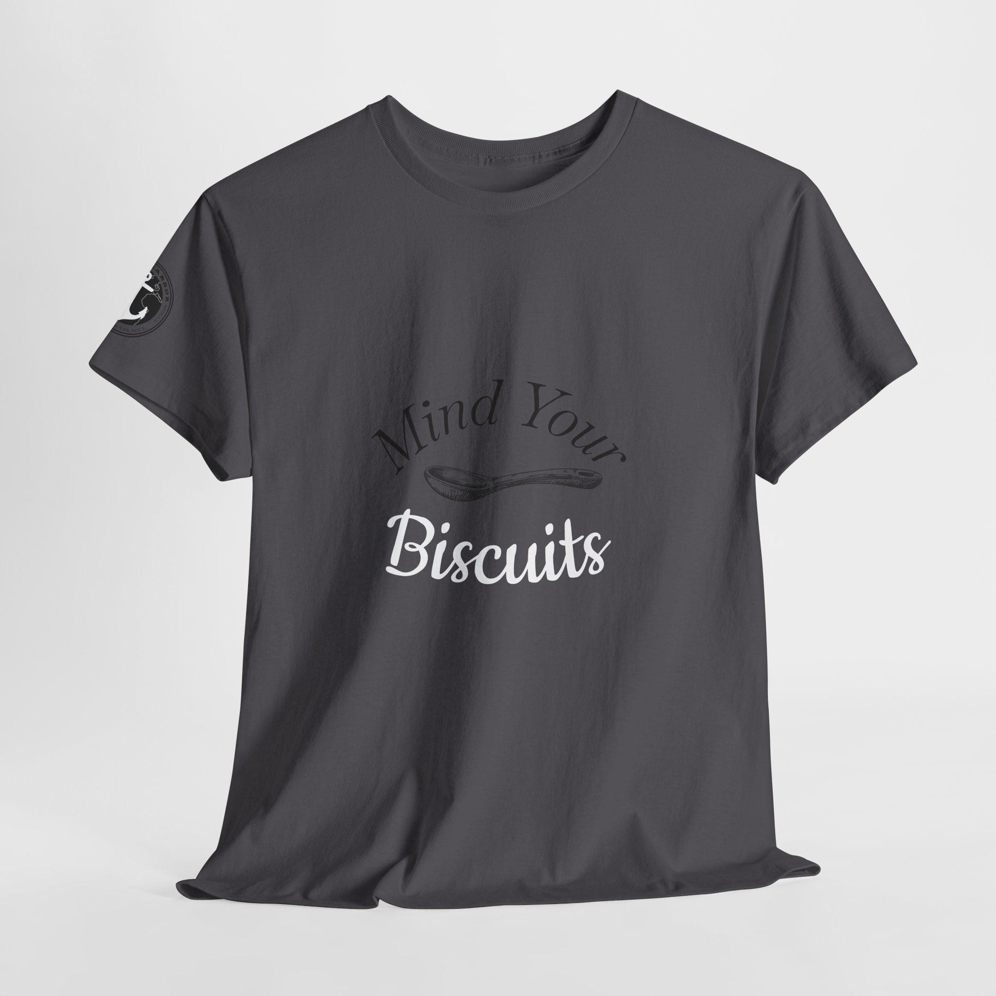 This T-Shirt features a fun country saying of "Mind Your Biscuits" that will bring laughter and smiles. Perfect for those who appreciate humor and a relaxed vibe, this tee is great for casual wear or as a conversation starter. Ideal for country and humor enthusiasts, this shirt is perfect for everyday wear, casual outings, and social gatherings.
