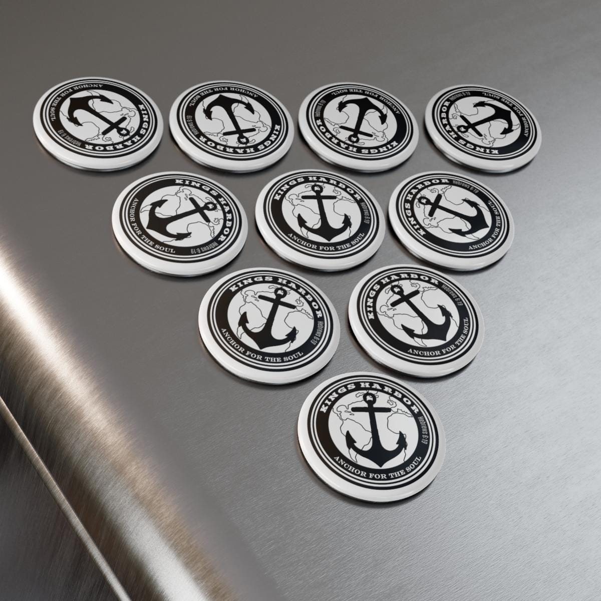 Add a touch of character on any metal surface with these personalized magnets. Available as 1-packs or 10-packs, these round magnets feature a metal shell front with a magnetic backing. On the front, where your custom design goes, you'll find a clear mylar/UV cover that protects against fading and scratches.