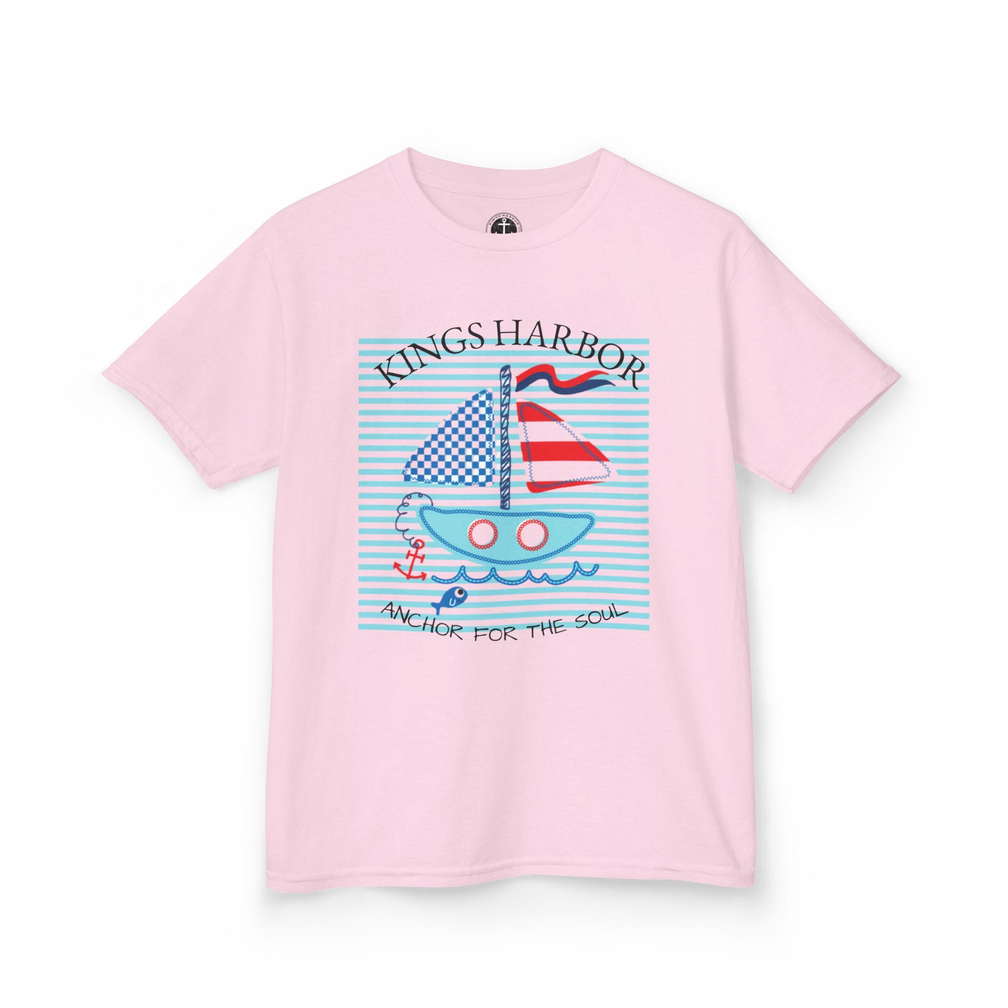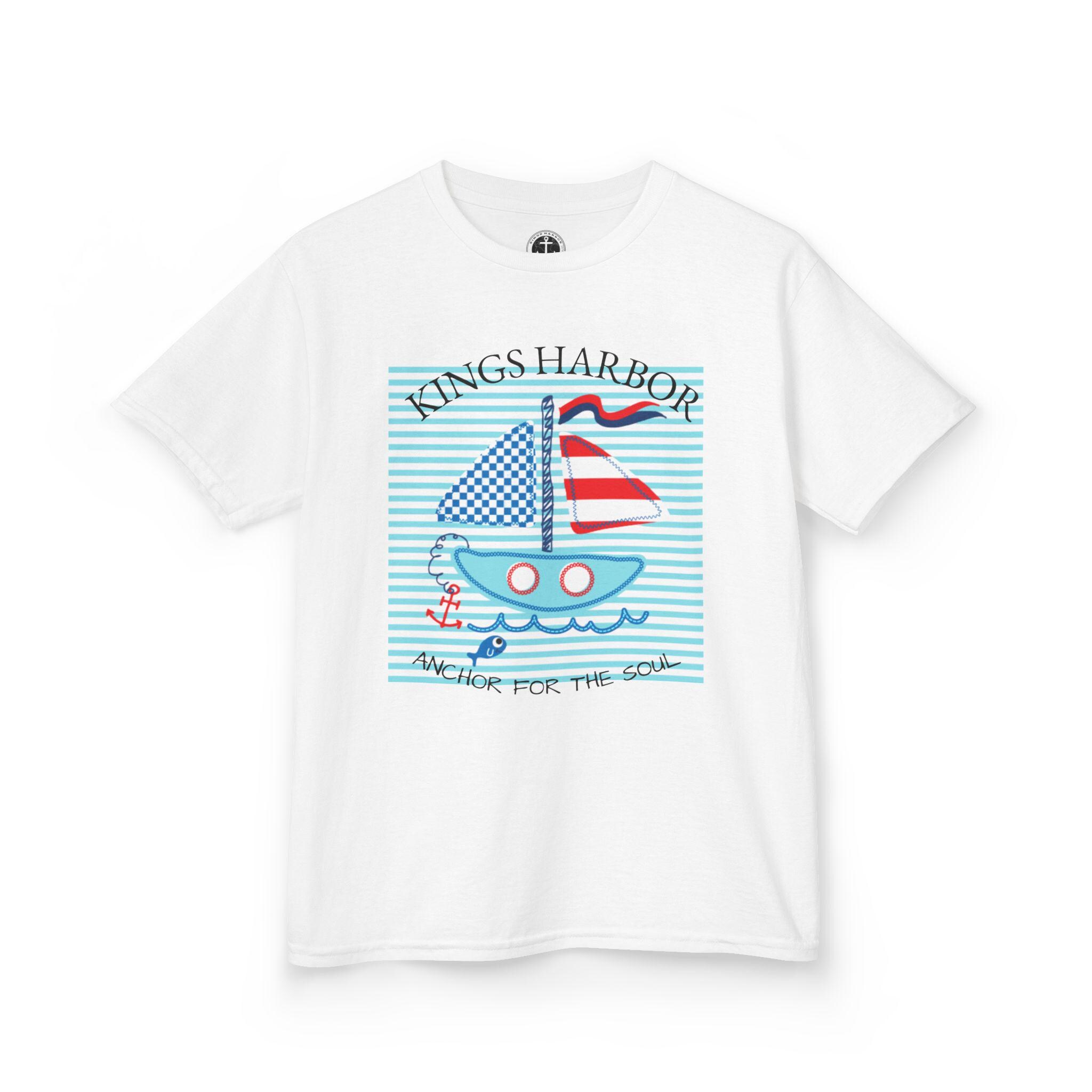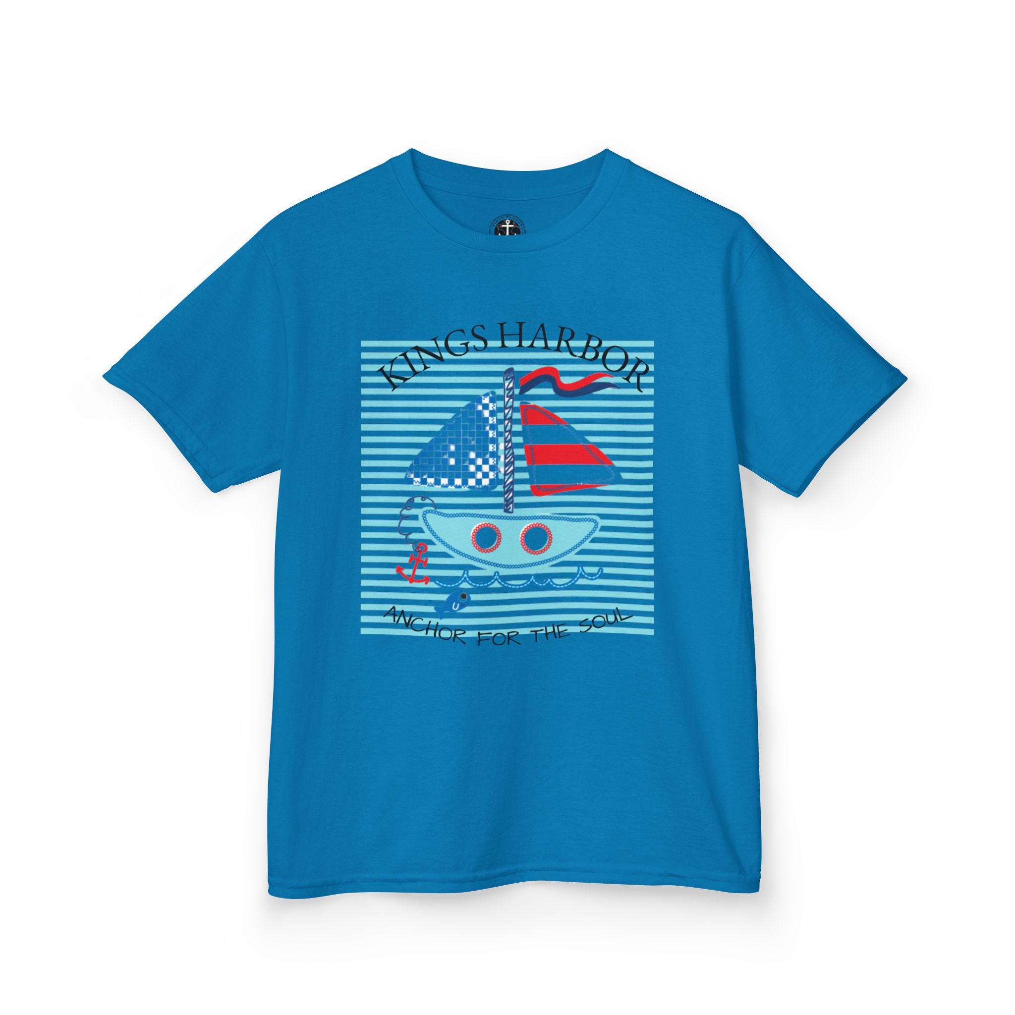 Kids Toy Boat Nautical Scene Tee with color and a fun vibe, perfect for children who love playful designs. This tee is ideal for casual wear and can be worn for beach trips, summer outings, and nautical-themed parties.