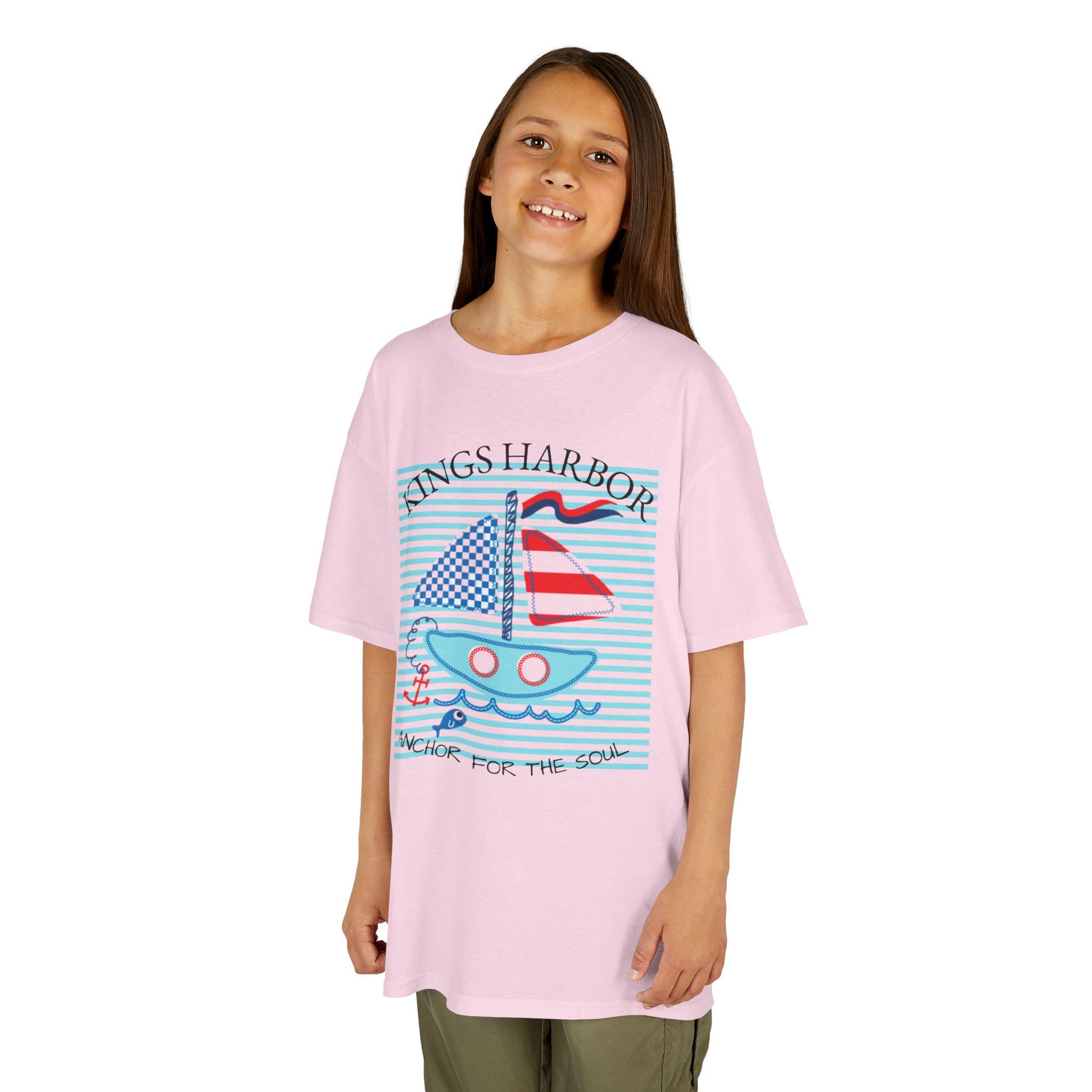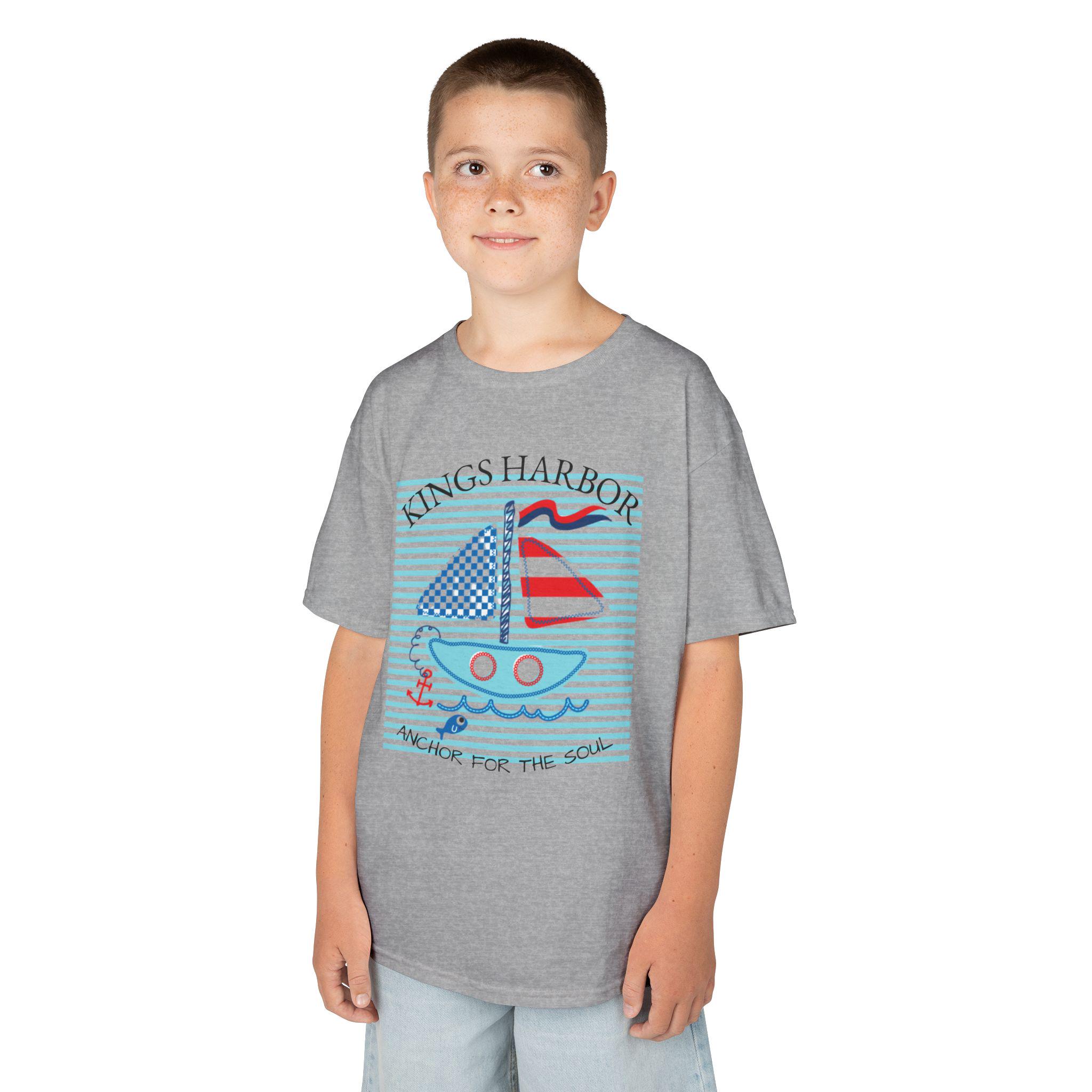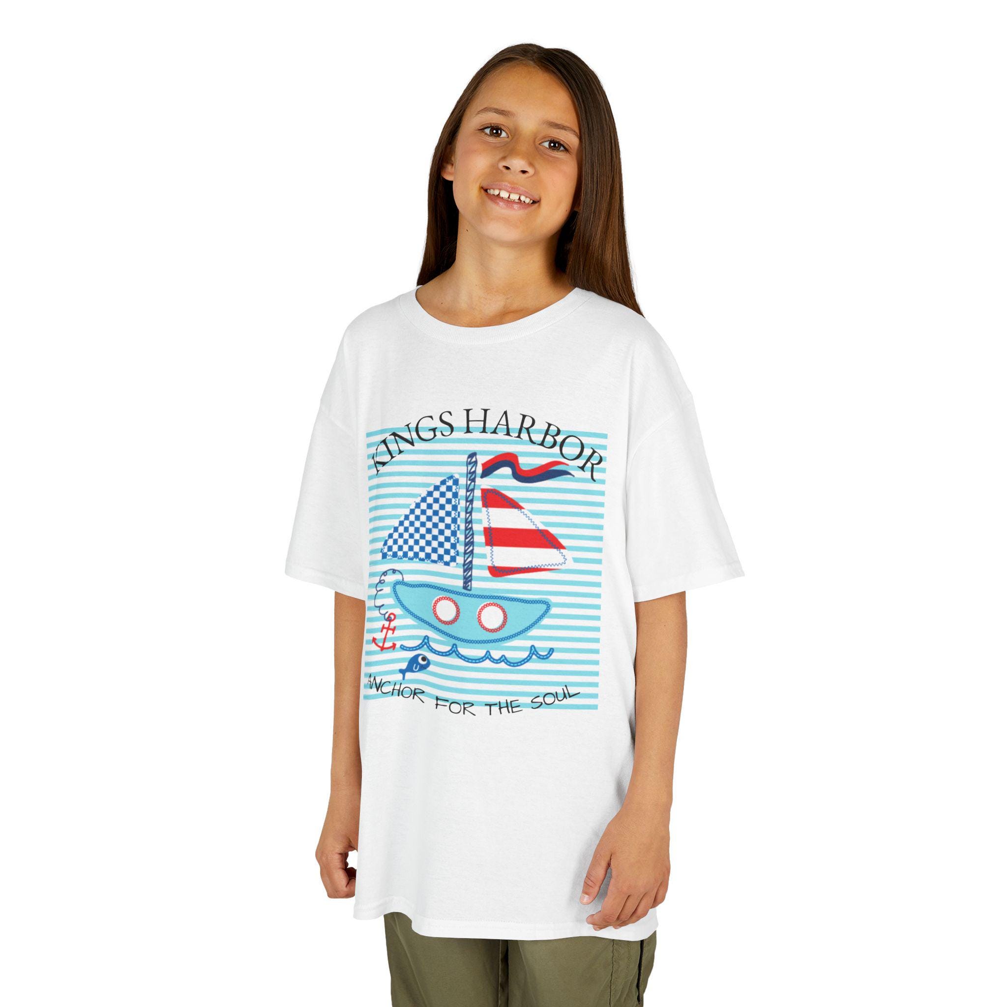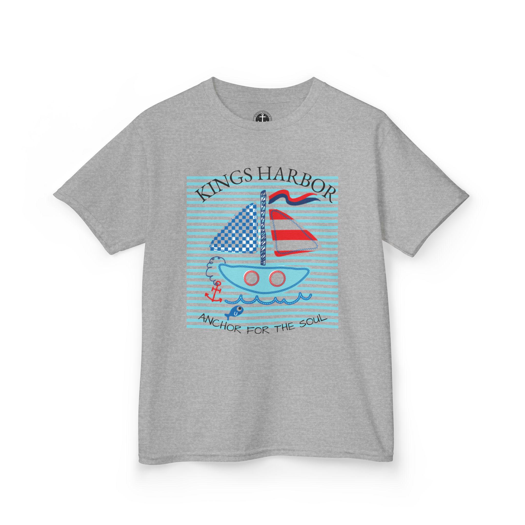 Kids Toy Boat Nautical Scene Tee with color and a fun vibe, perfect for children who love playful designs. This tee is ideal for casual wear and can be worn for beach trips, summer outings, and nautical-themed parties.
