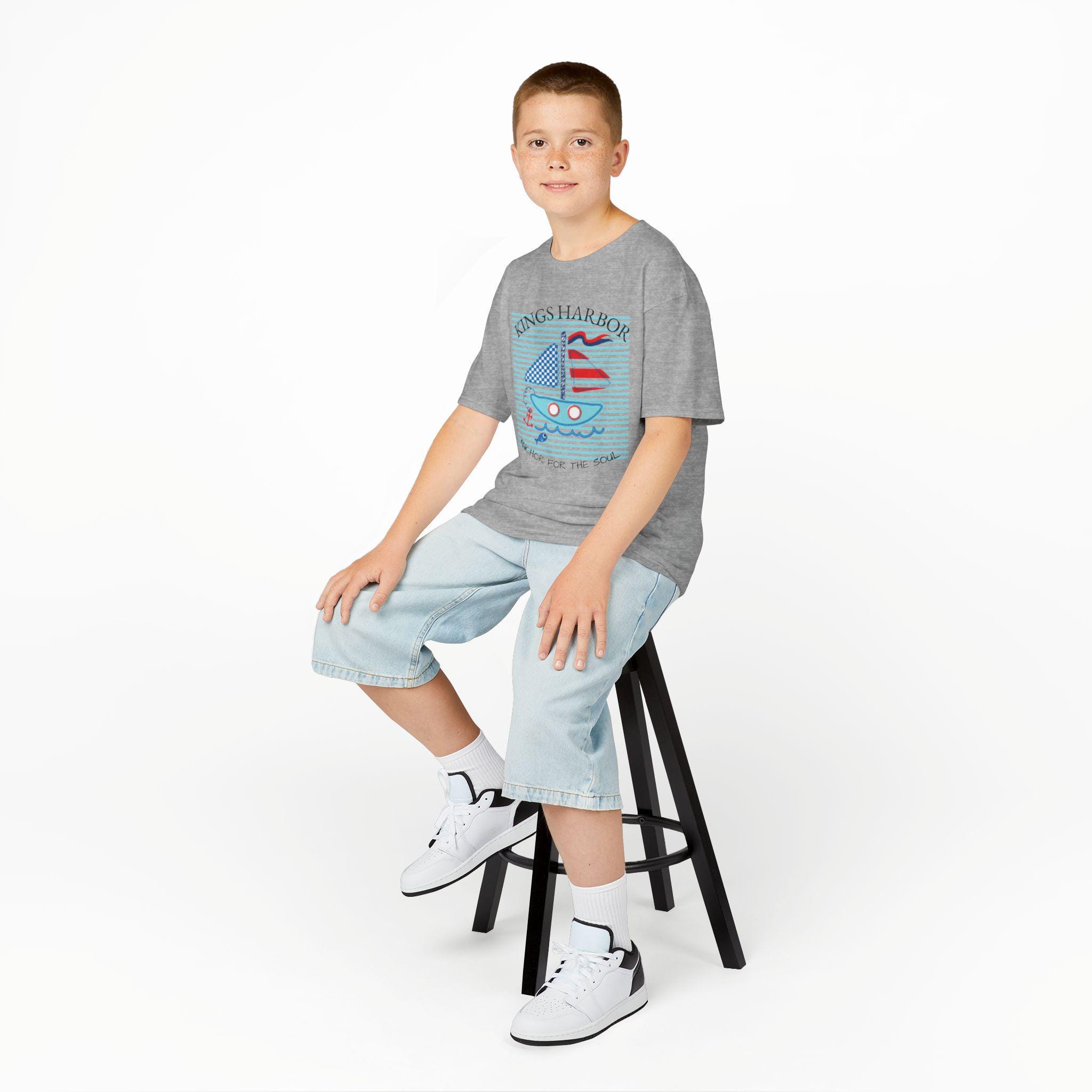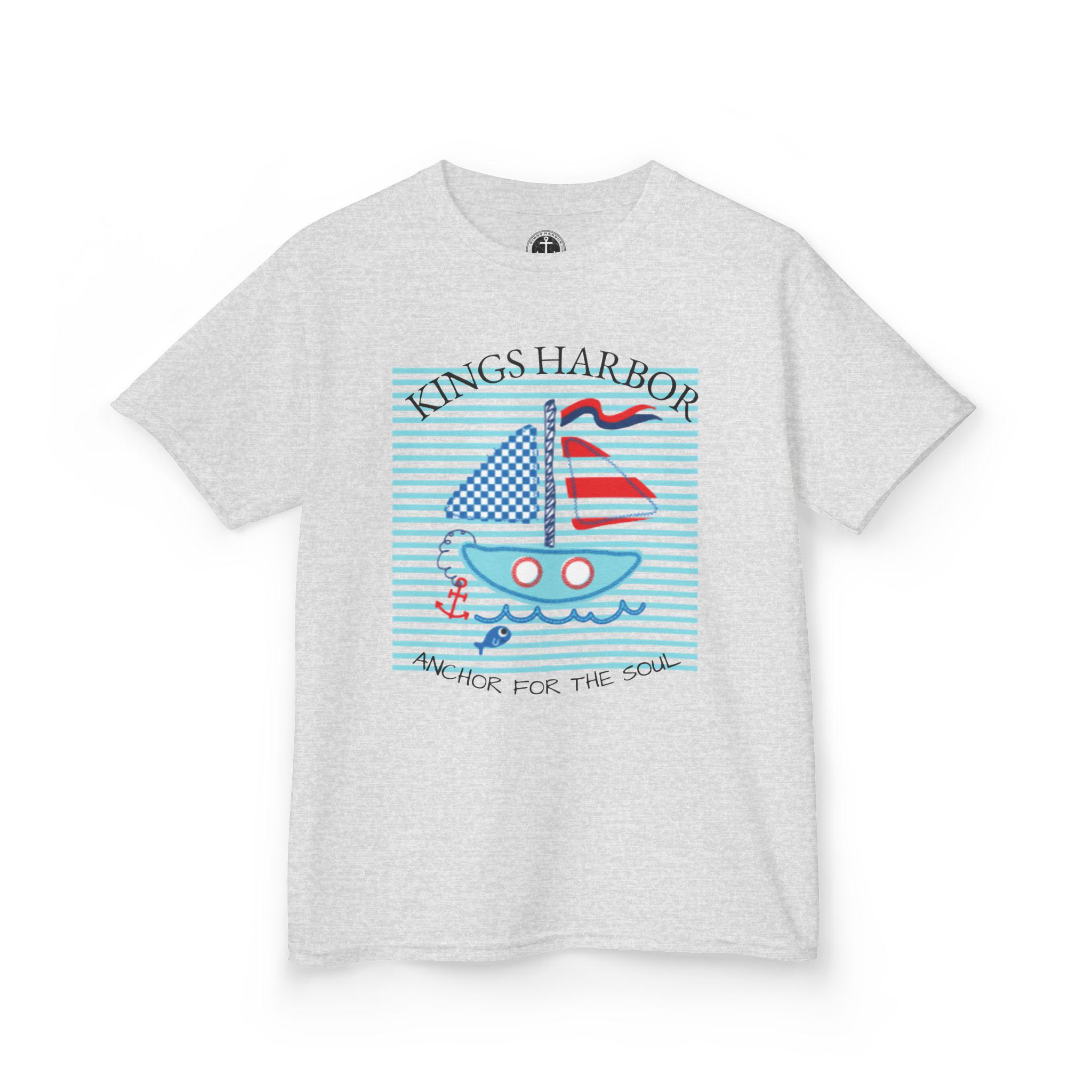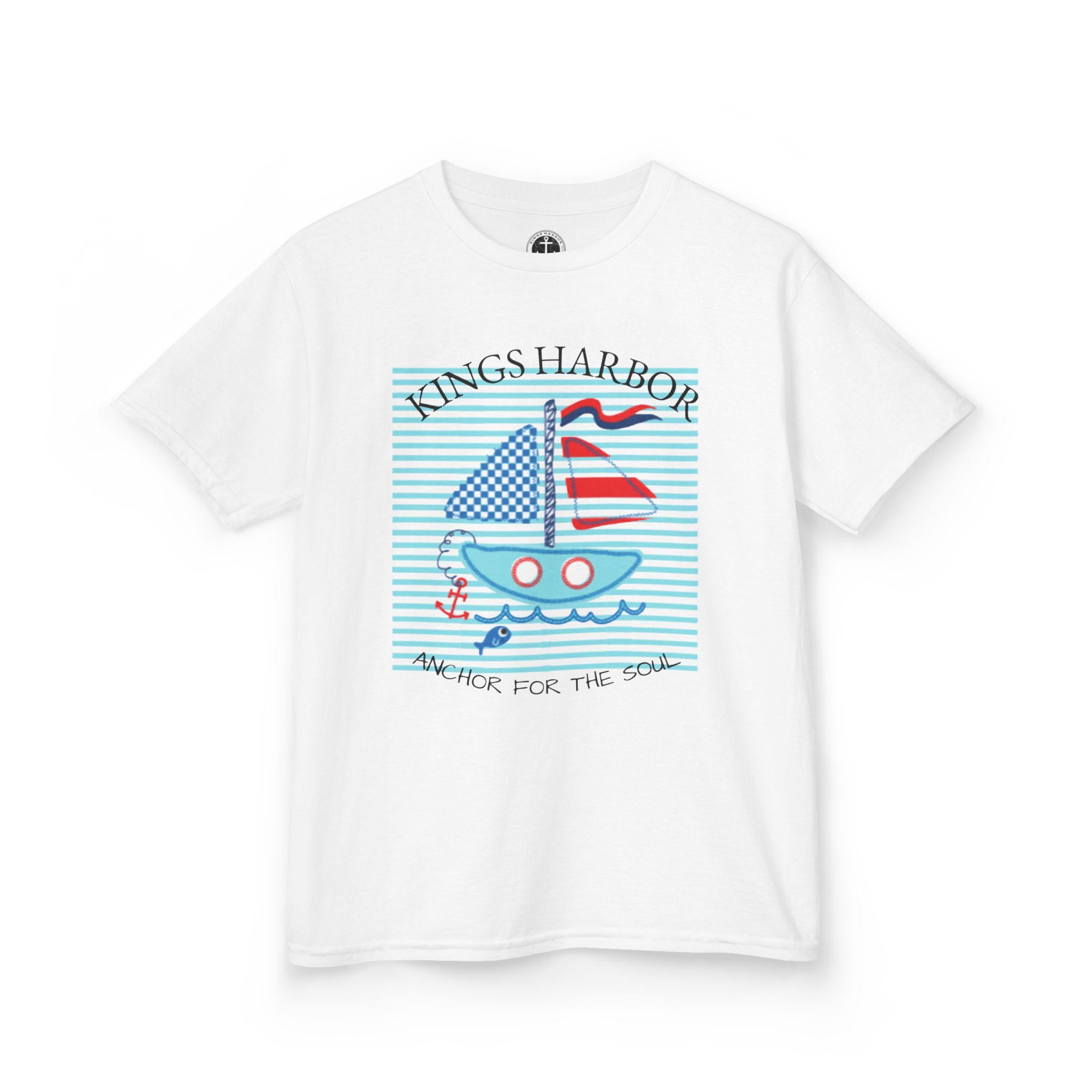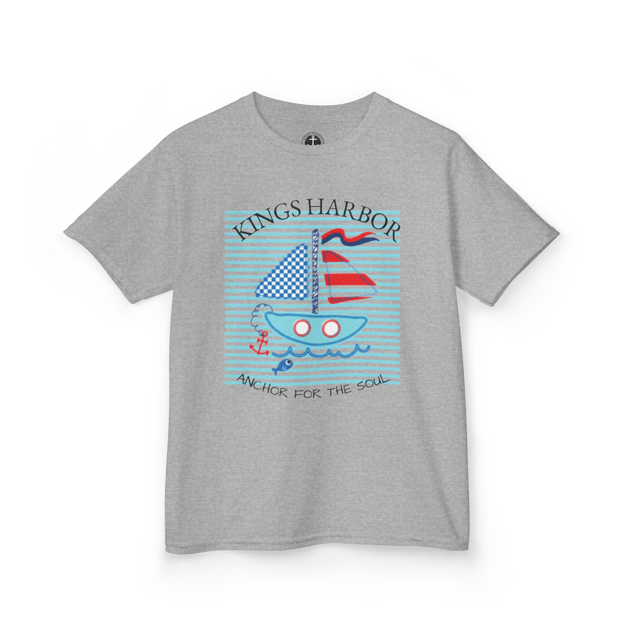 Kids Toy Boat Nautical Scene Tee with color and a fun vibe, perfect for children who love playful designs. This tee is ideal for casual wear and can be worn for beach trips, summer outings, and nautical-themed parties.