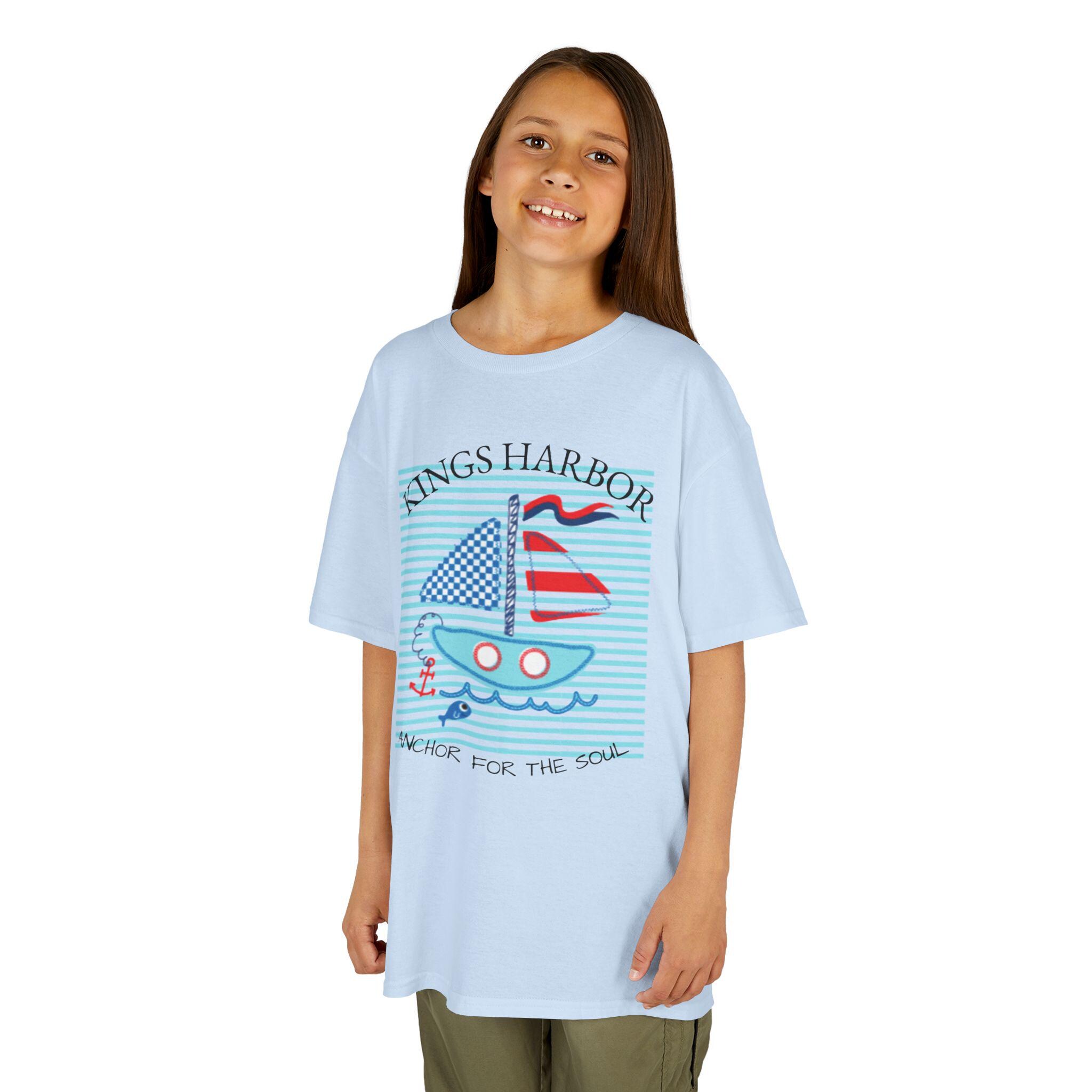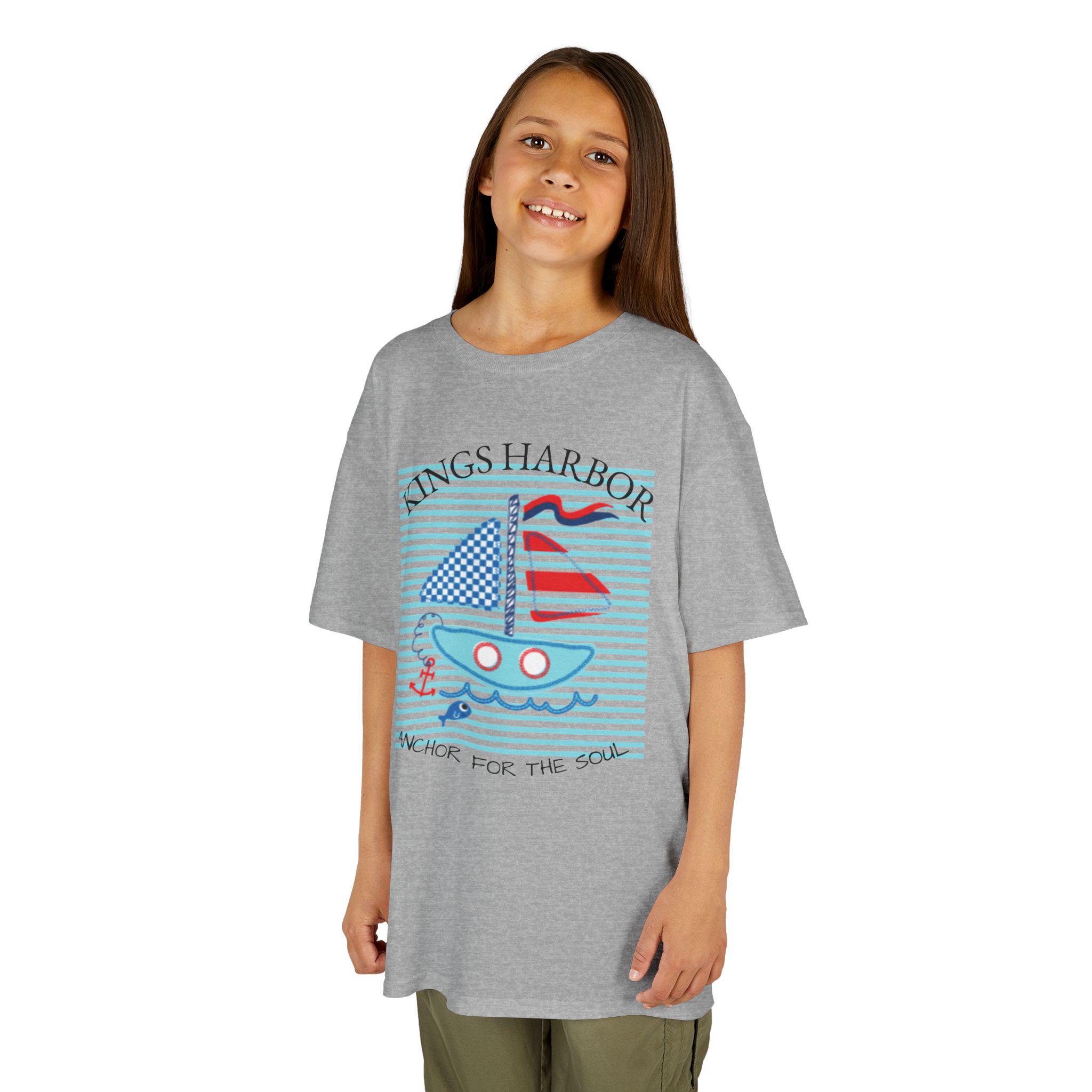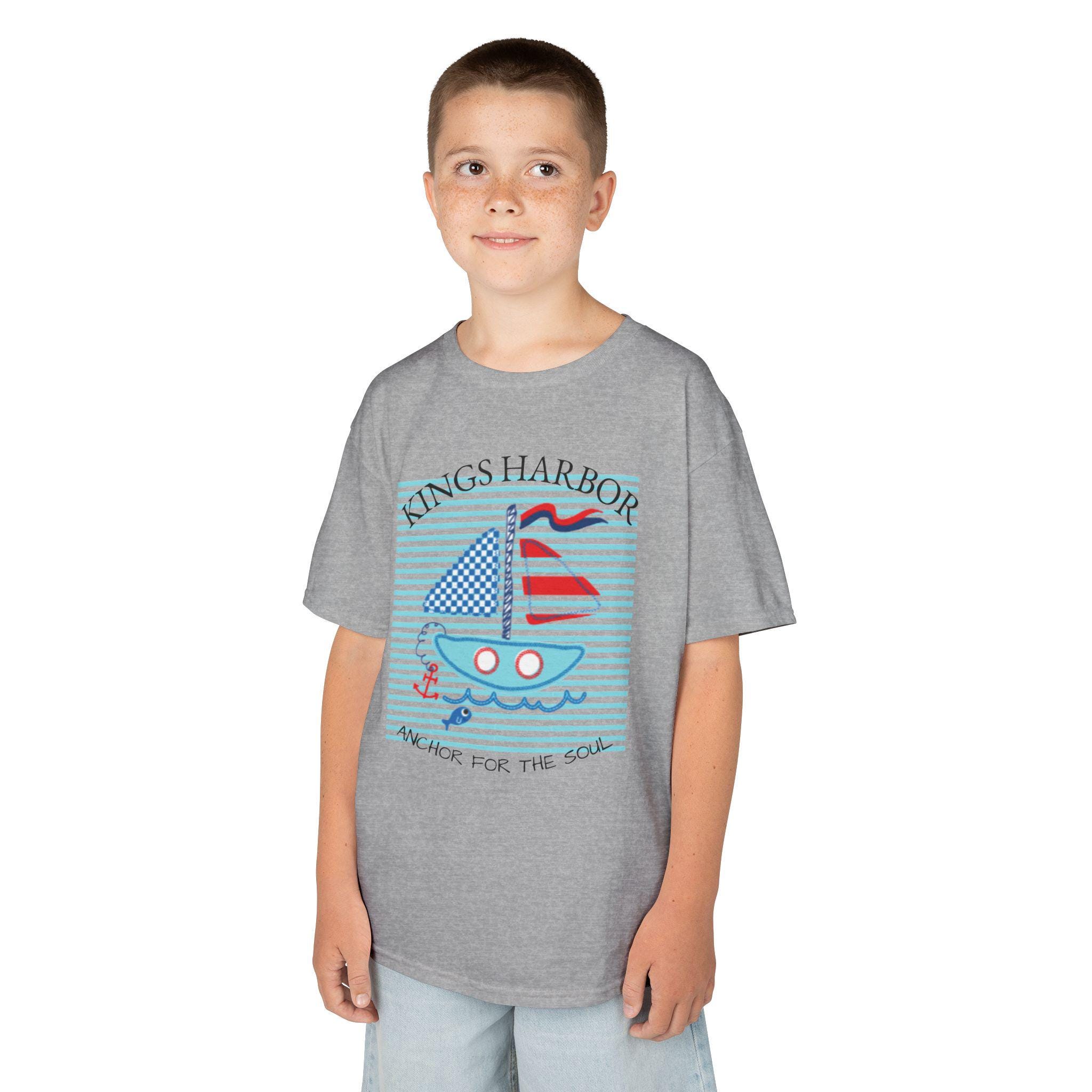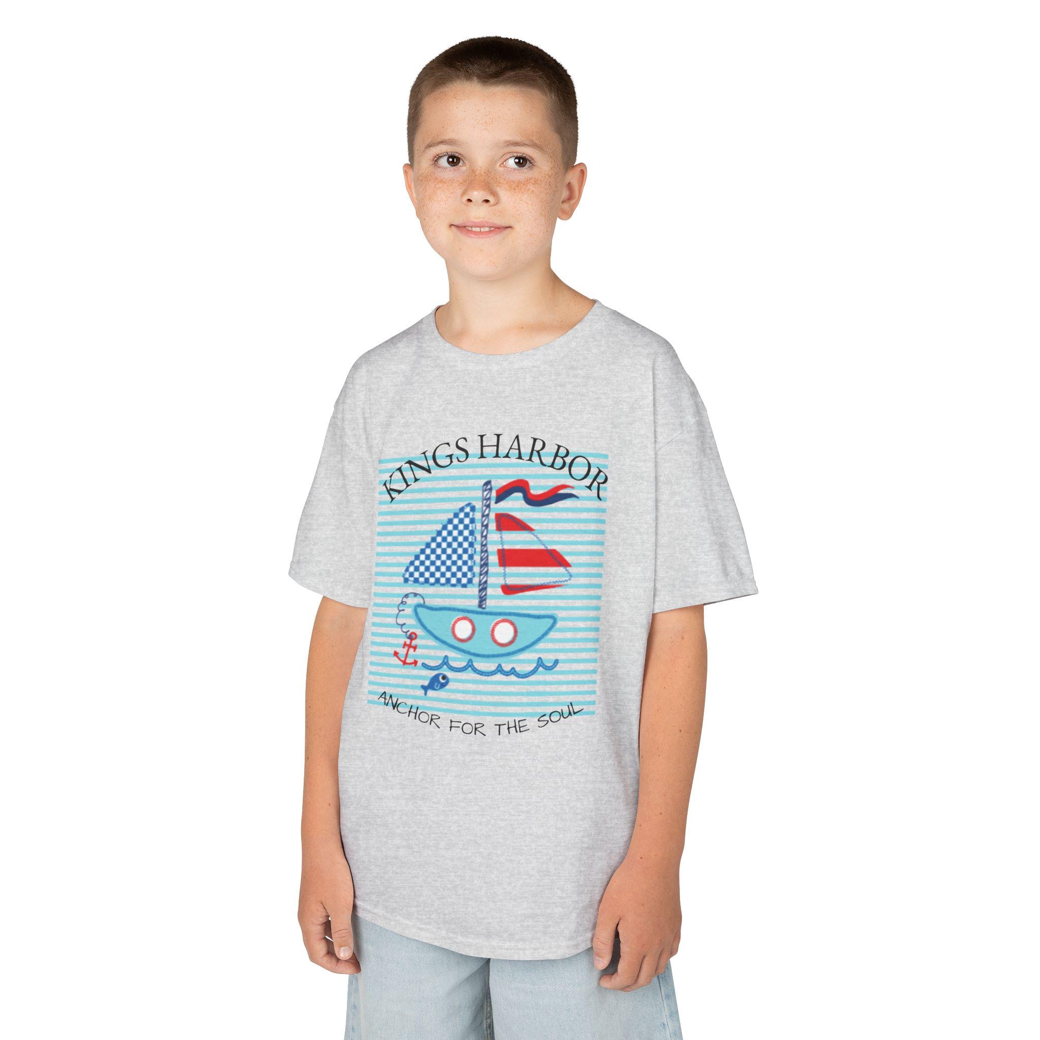 Kids Toy Boat Nautical Scene Tee with color and a fun vibe, perfect for children who love playful designs. This tee is ideal for casual wear and can be worn for beach trips, summer outings, and nautical-themed parties.