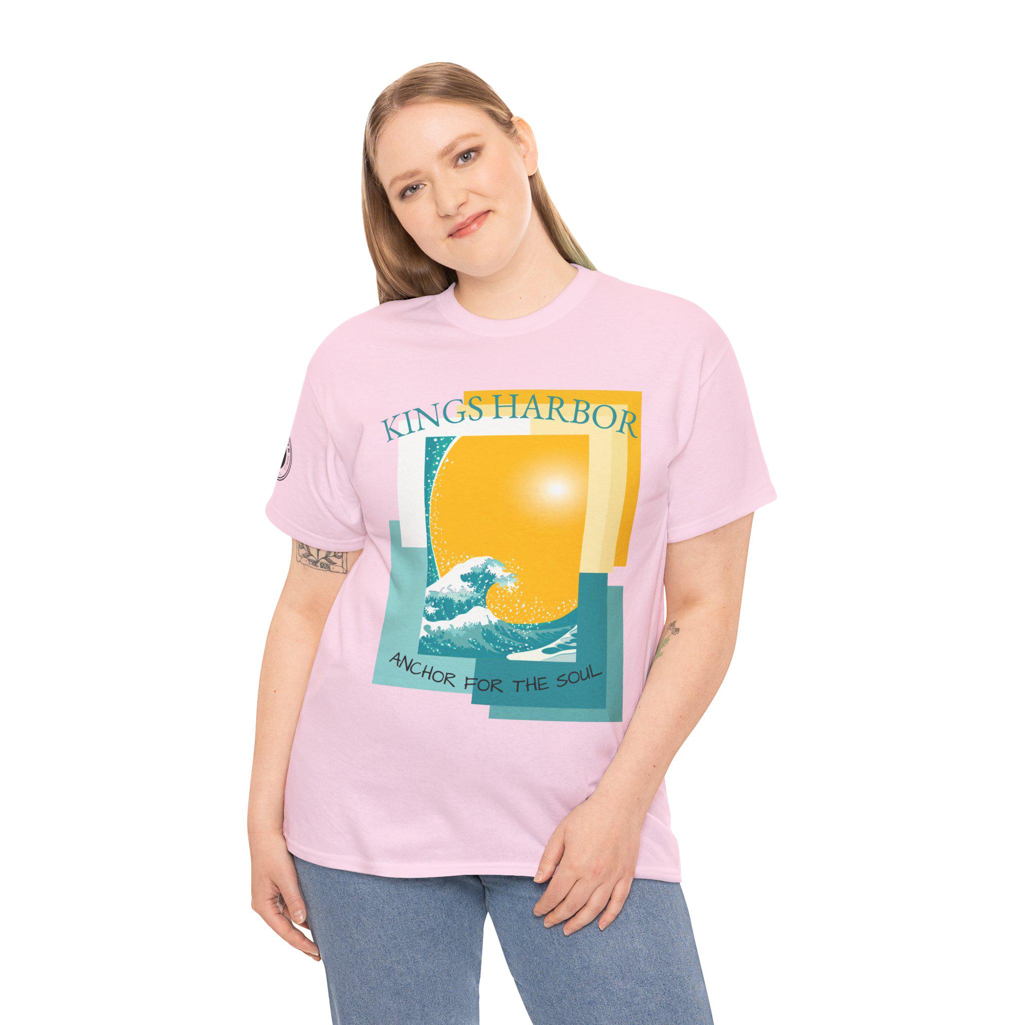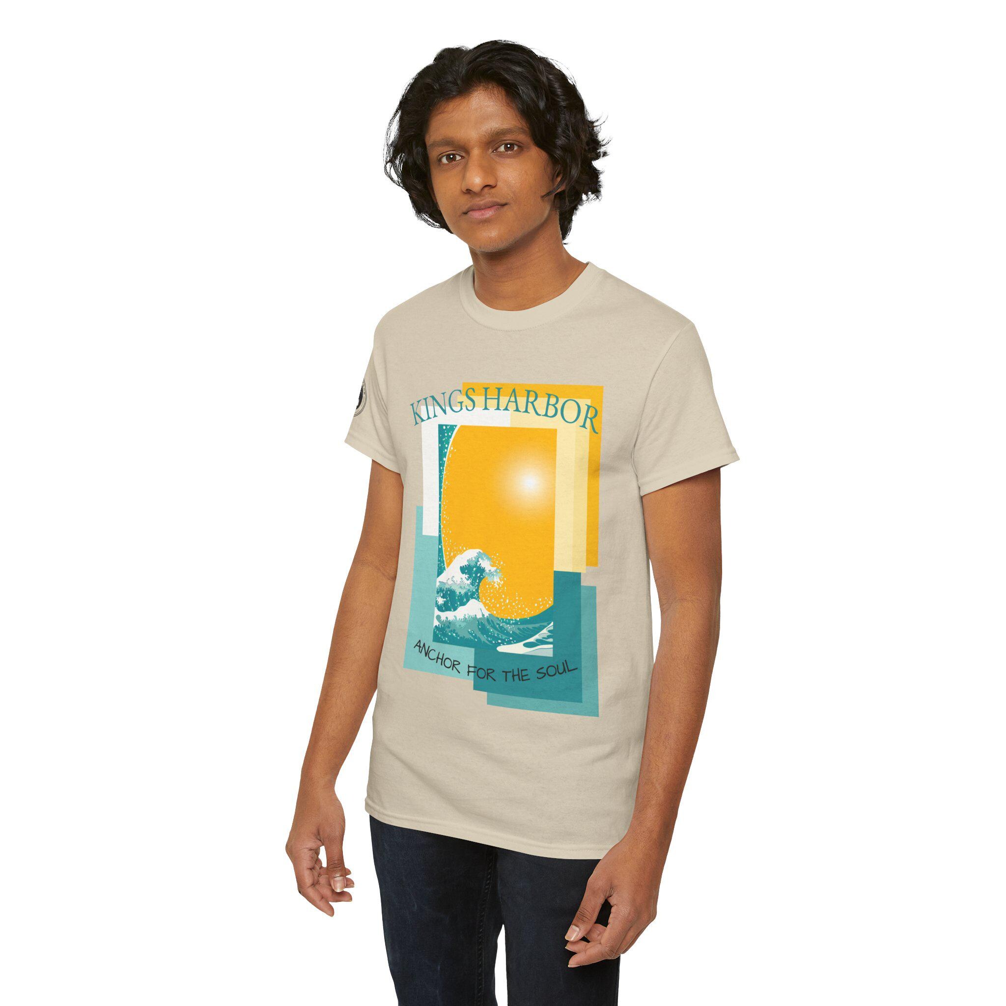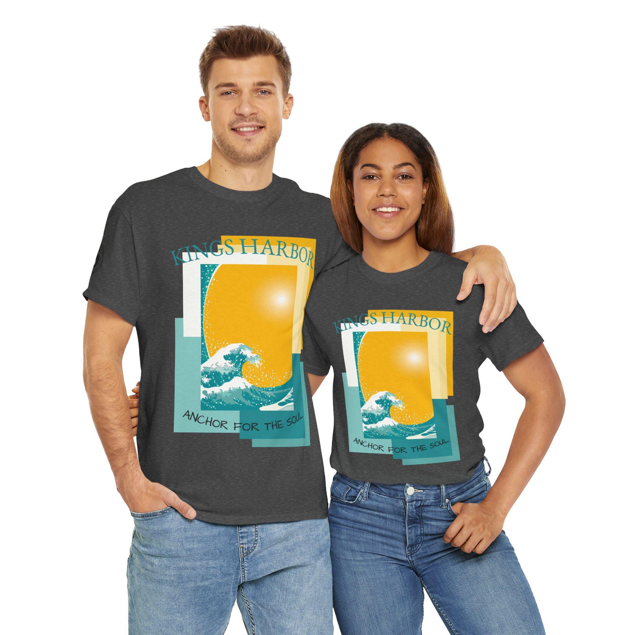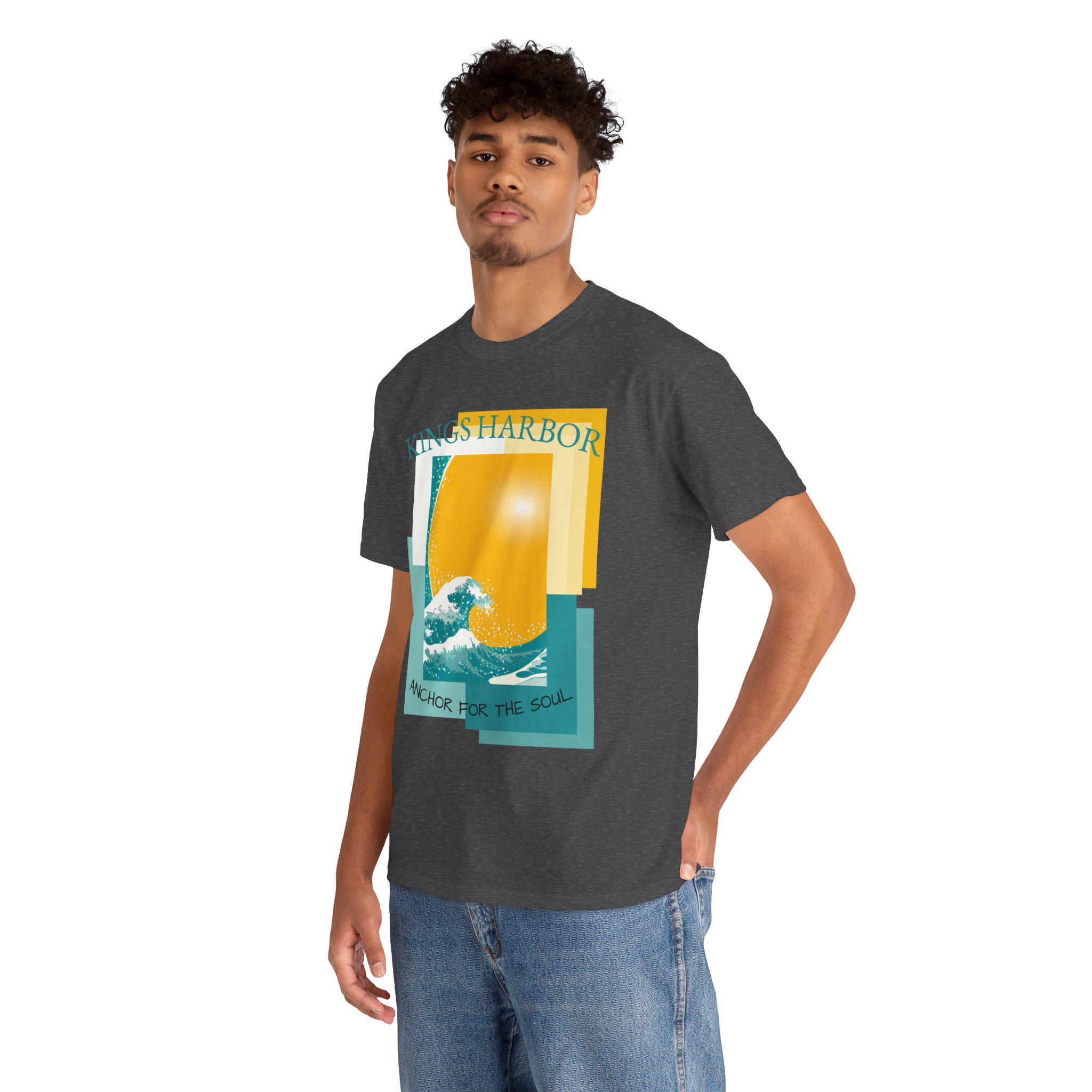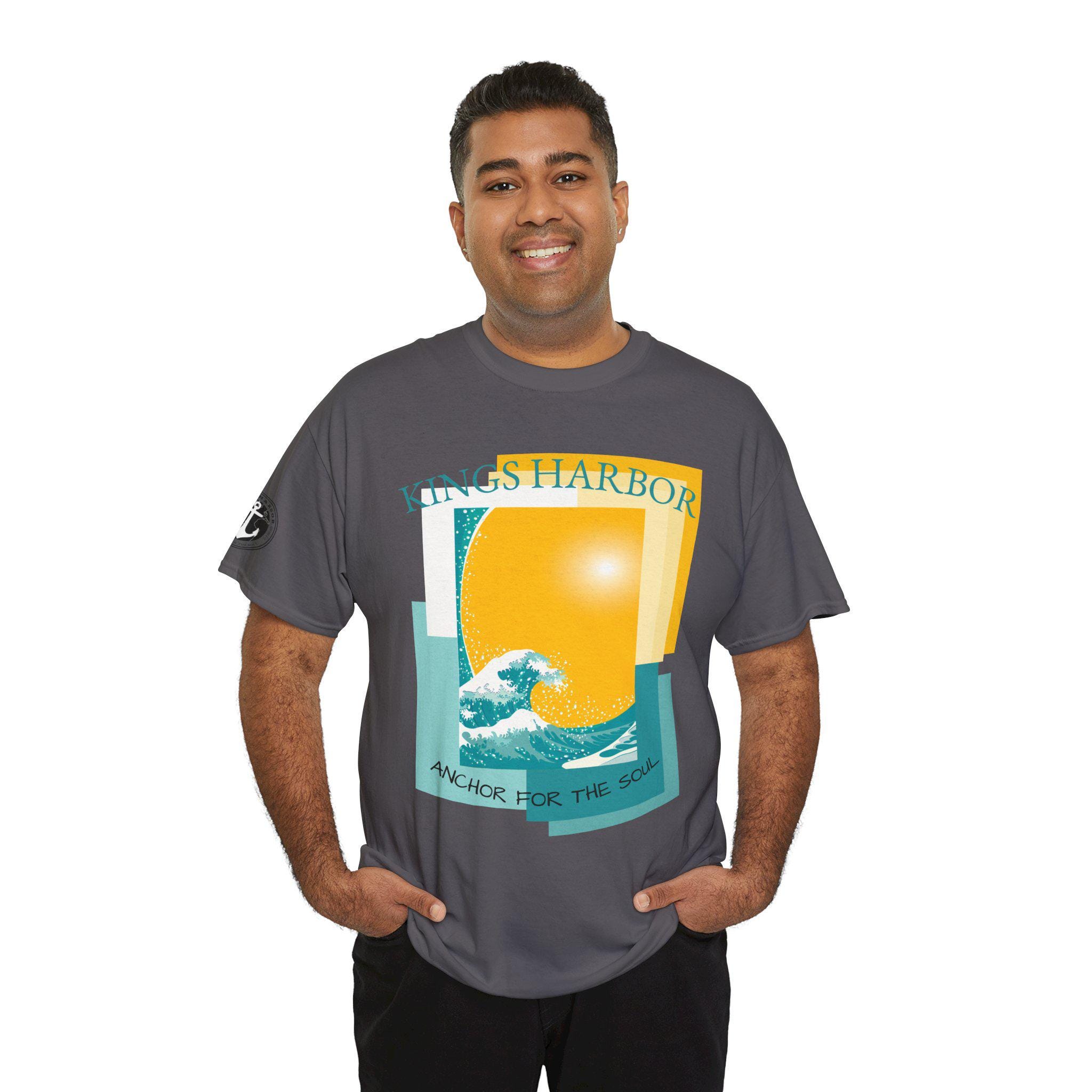 A comfortable unisex heavy cotton tee featuring a calming design of an ocean wave in the sunset. This tee is perfect for those who seek peace and relaxation in their daily lives. Ideal for beach lovers, nature enthusiasts, and anyone looking for a serene vibe. Great for summer days, vacations, and casual outings.