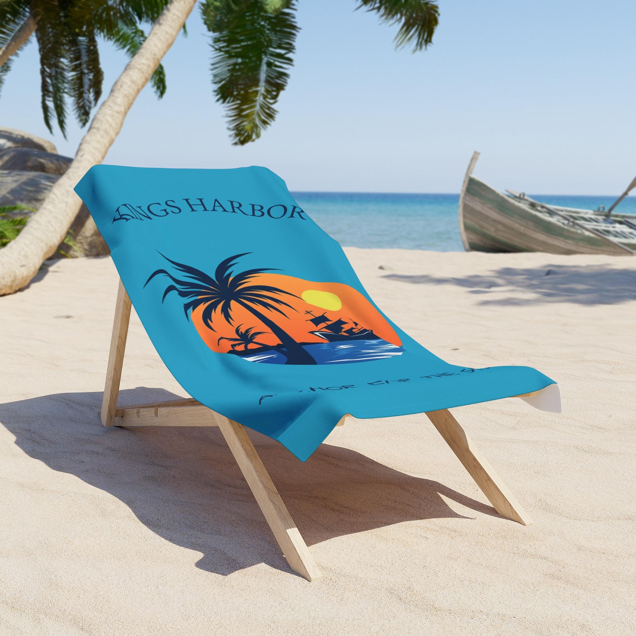 Escape to a tropical paradise with this turquoise beach towel featuring palm trees, sun, and fun colors. Perfect for beach days, pool parties, and summer vacations. Ideal for adults looking to add a touch of summer to their relaxation time.