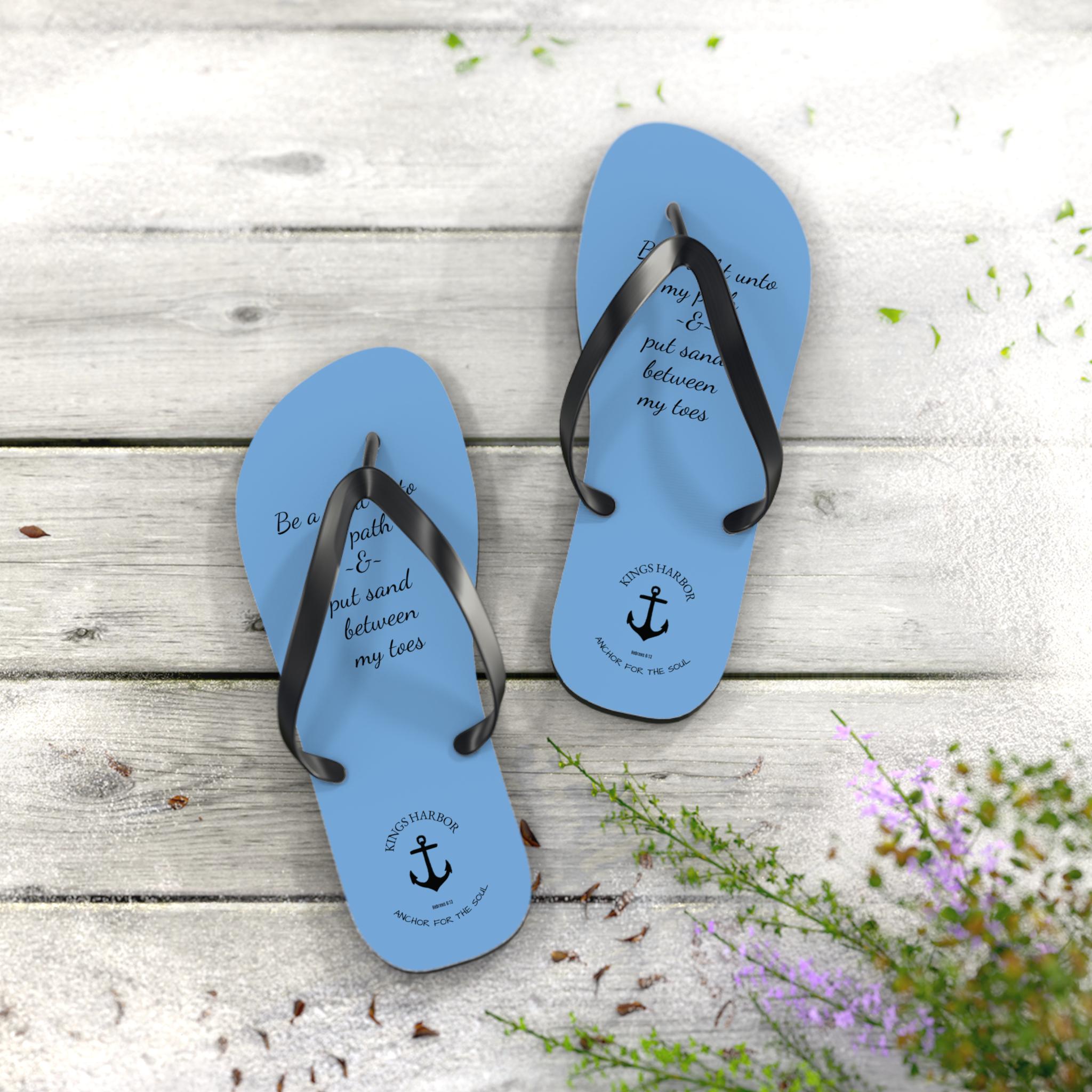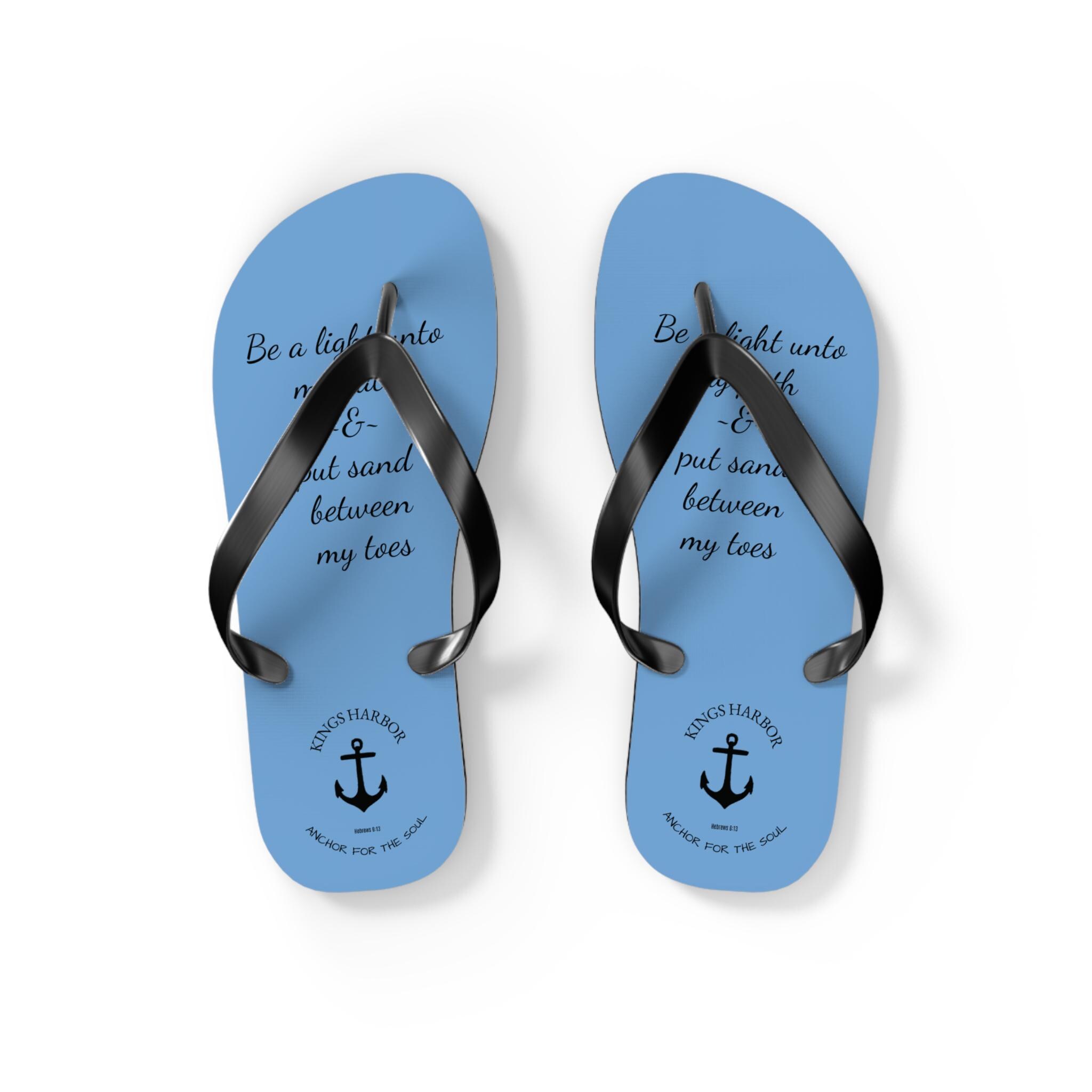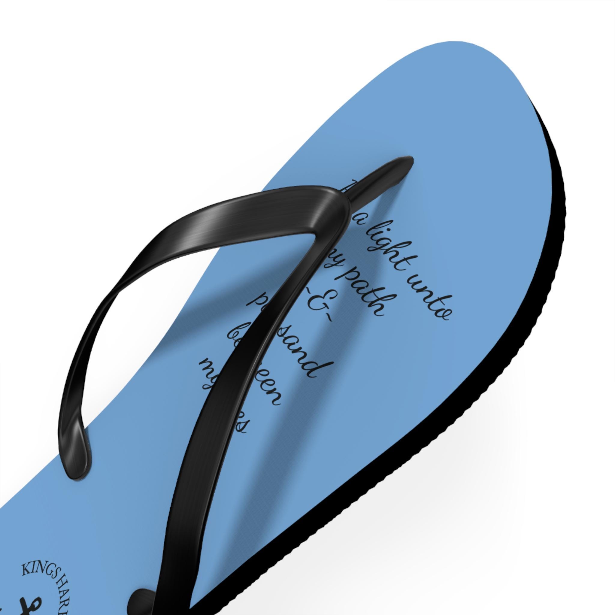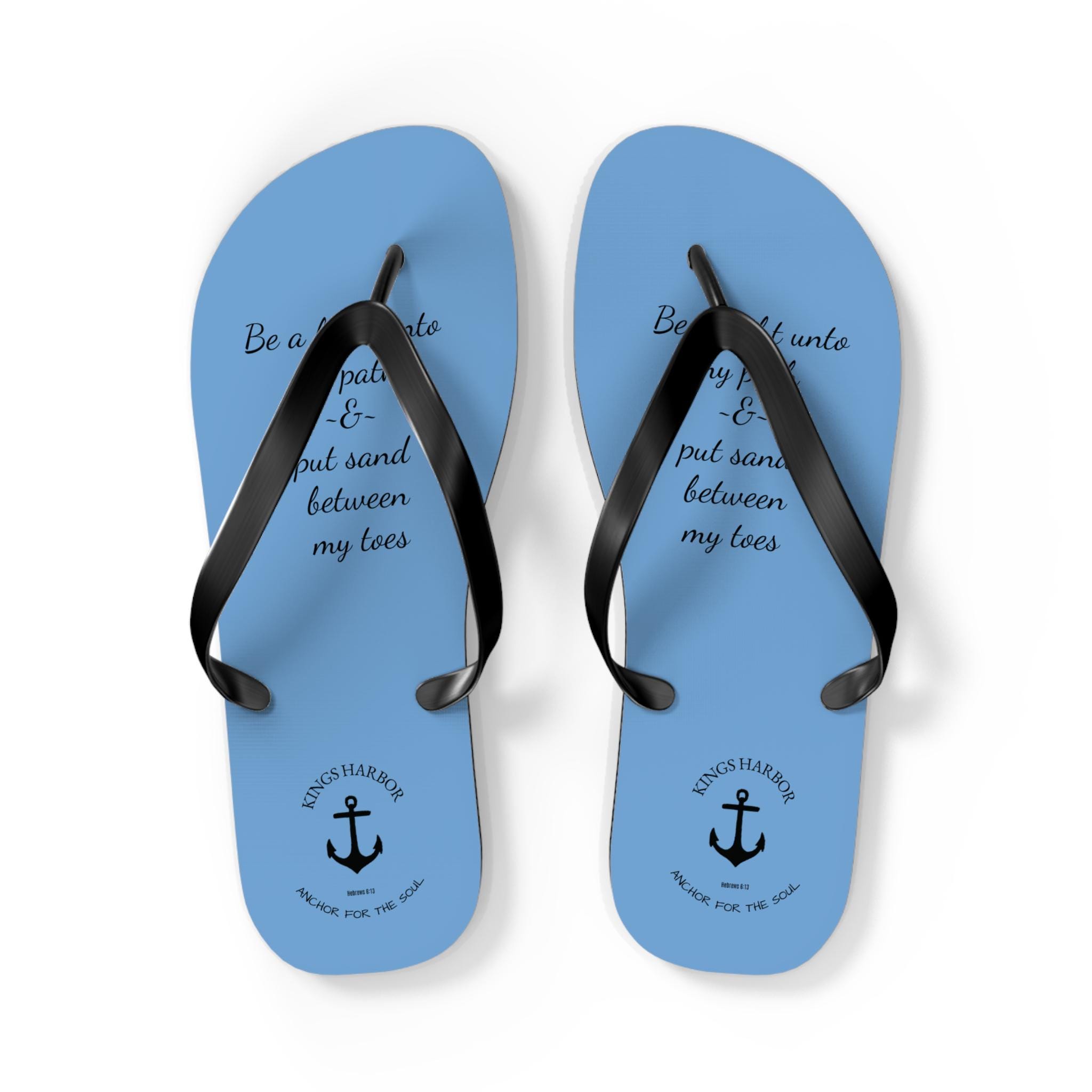 Step into comfort and style with our vibrant Light Blue Flip Flops! Perfect for sunny days at the beach or casual outings, these flip flops bring a fun, cheerful vibe to your summer wardrobe. The saying says, "Be a light unto my path & put sand between my toes." The soft polyester suede provides a cozy fit, while the slip-resistant EVA sole ensures stability on wet surfaces. Ideal for beach lovers, vacationers, and anyone who enjoys laid-back days, these flip flops make a fantastic gift for birthdays, summer celebrations, and special occasions like beach weddings and pool parties. Enjoy the colorful designs that reflect your personality and make every step a joyful experience!