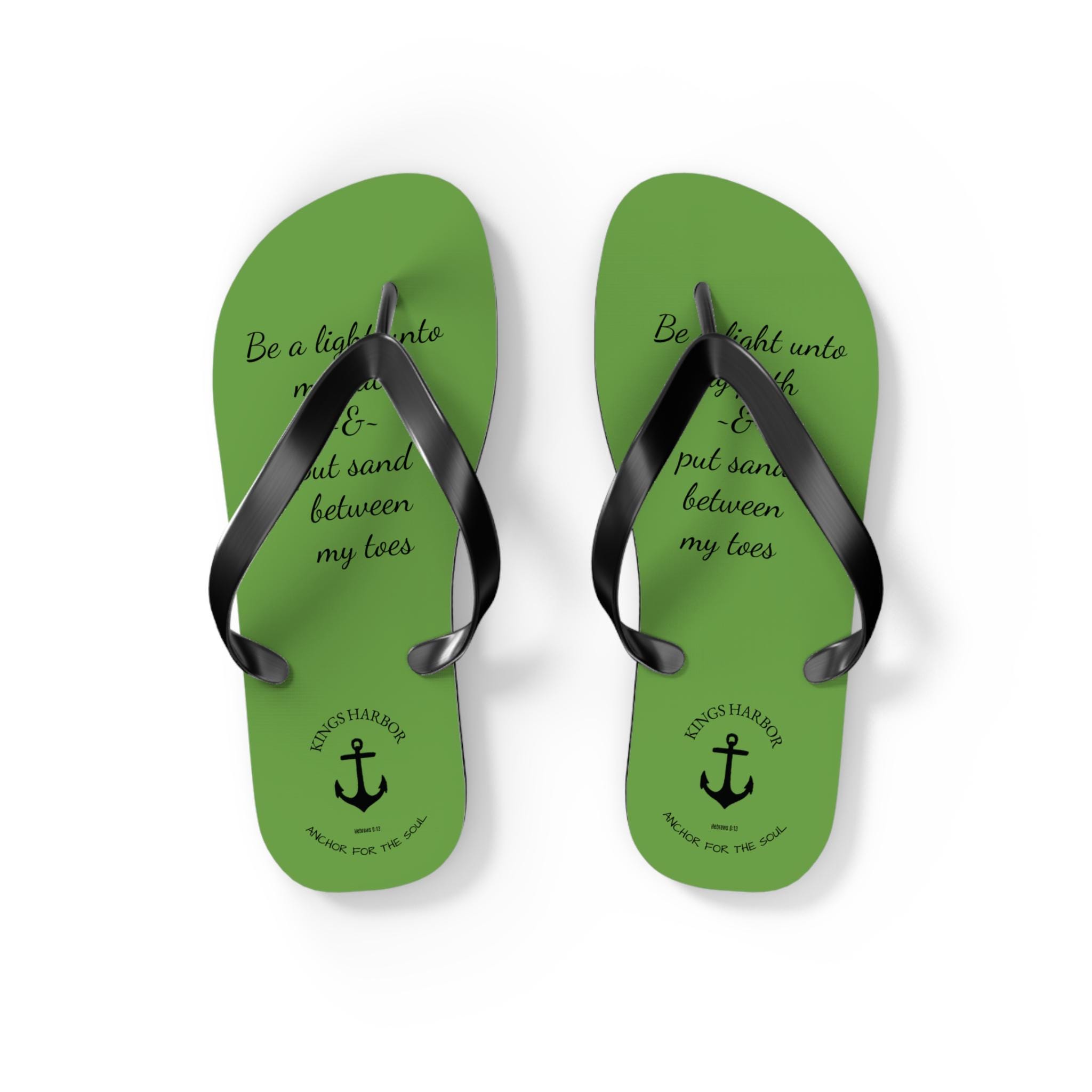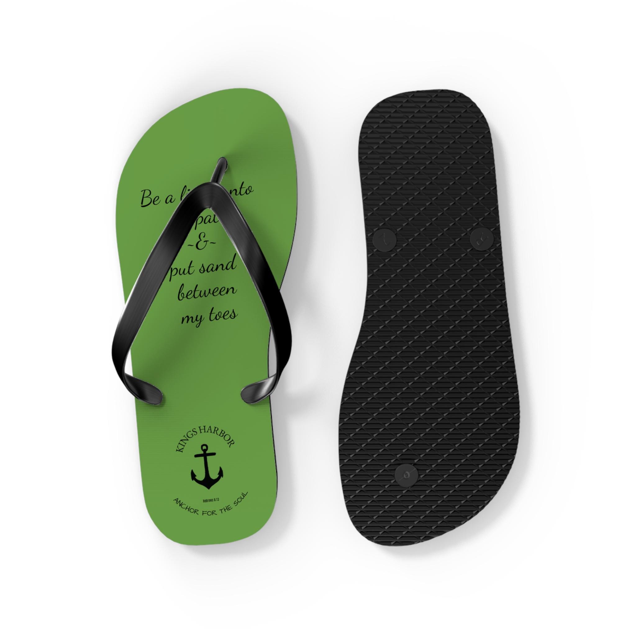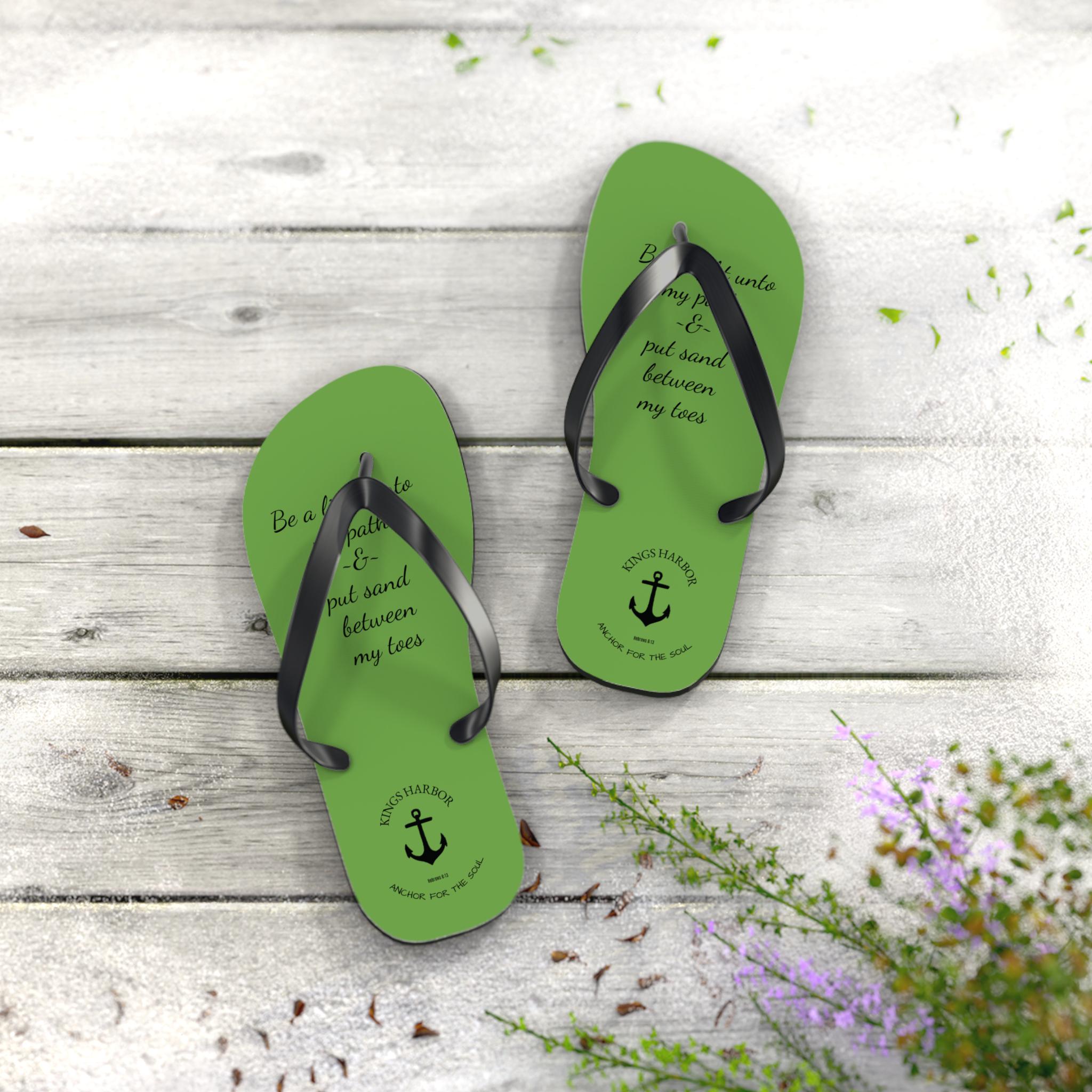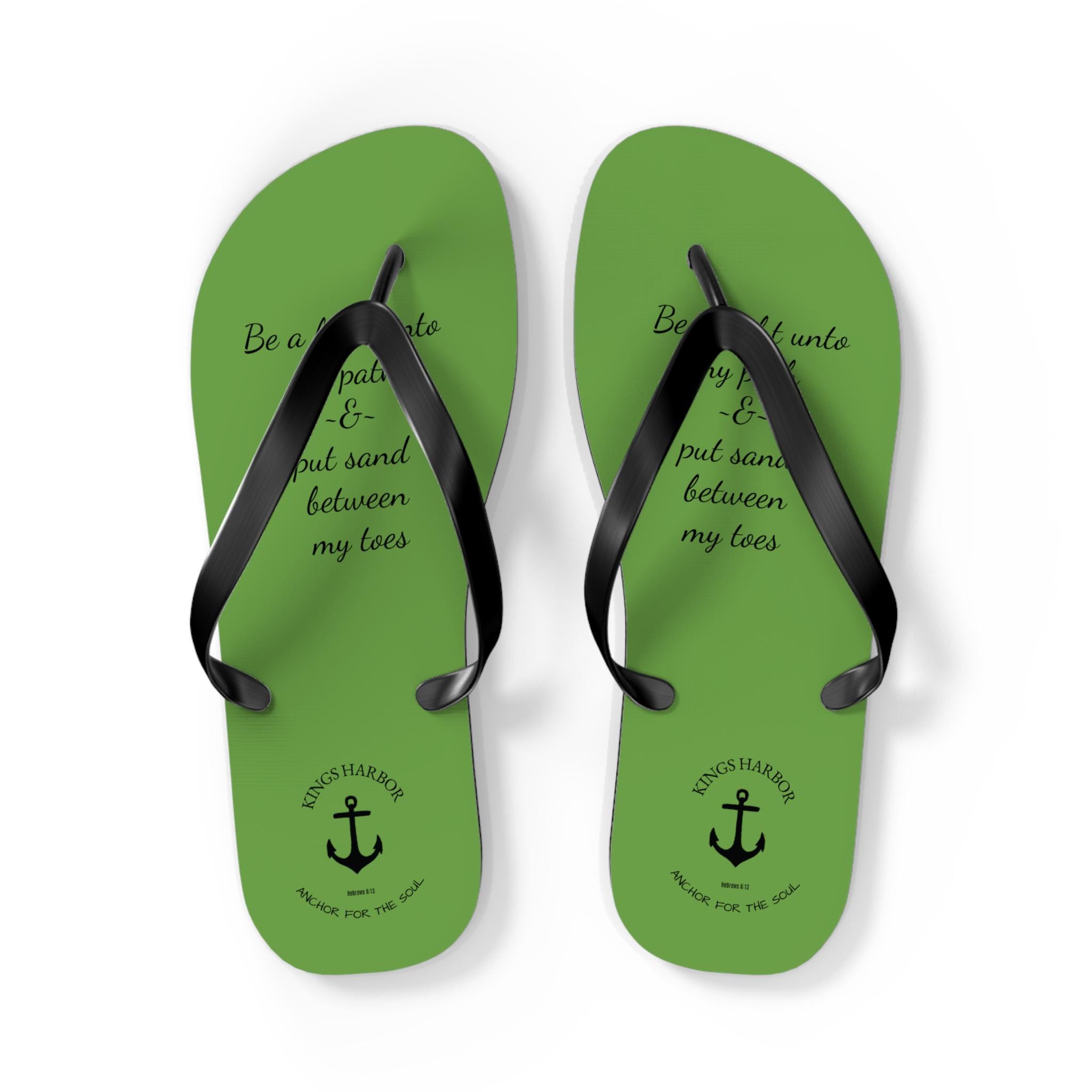 Step into comfort and style with our vibrant Green Flip Flops! Perfect for sunny days at the beach or casual outings, these flip flops bring a fun, cheerful vibe to your summer wardrobe. The saying says, "Be a light unto my path & put sand between my toes." The soft polyester suede provides a cozy fit, while the slip-resistant EVA sole ensures stability on wet surfaces. Ideal for beach lovers, vacationers, and anyone who enjoys laid-back days, these flip flops make a fantastic gift for birthdays, summer celebrations, and special occasions like beach weddings and pool parties. Enjoy the colorful designs that reflect your personality and make every step a joyful experience!