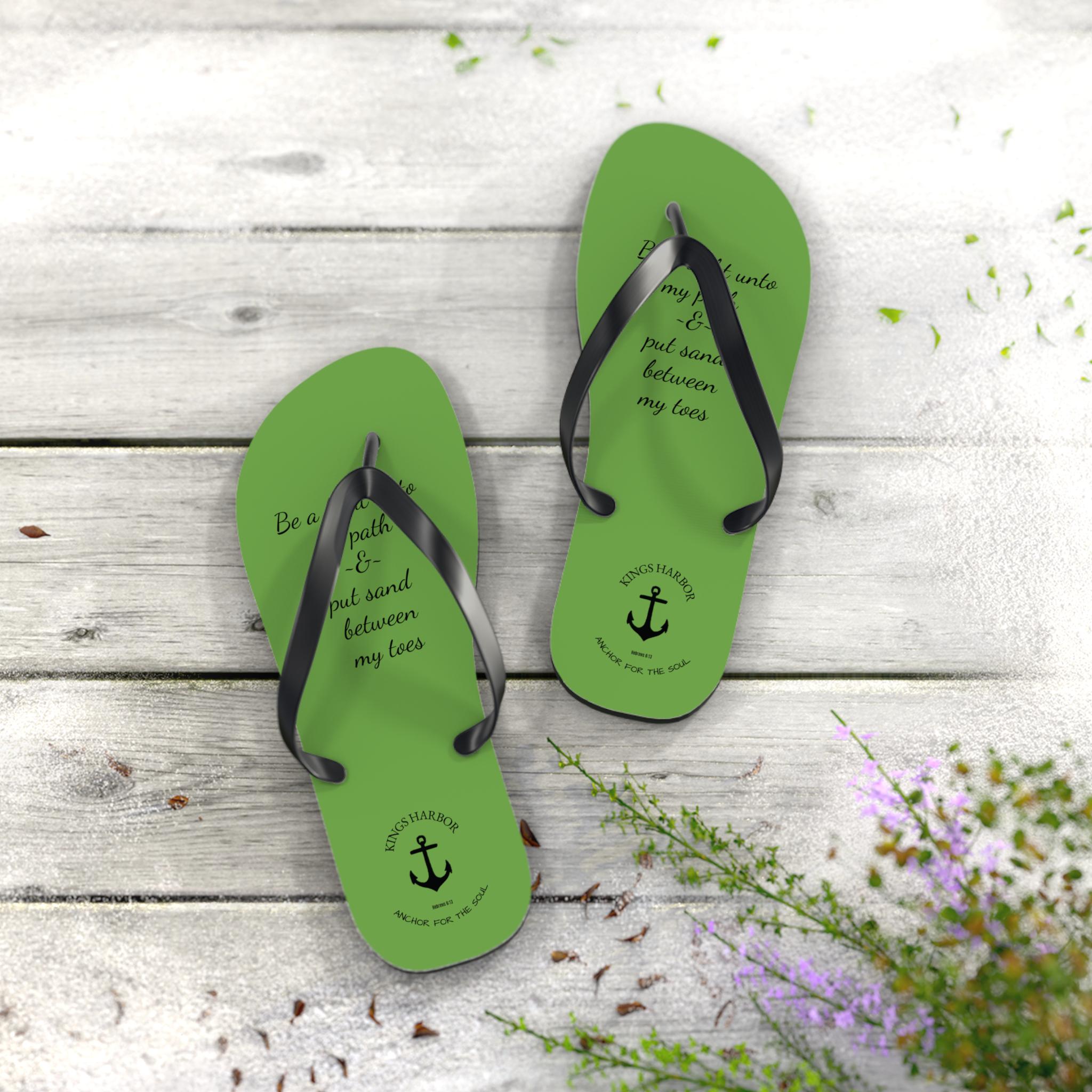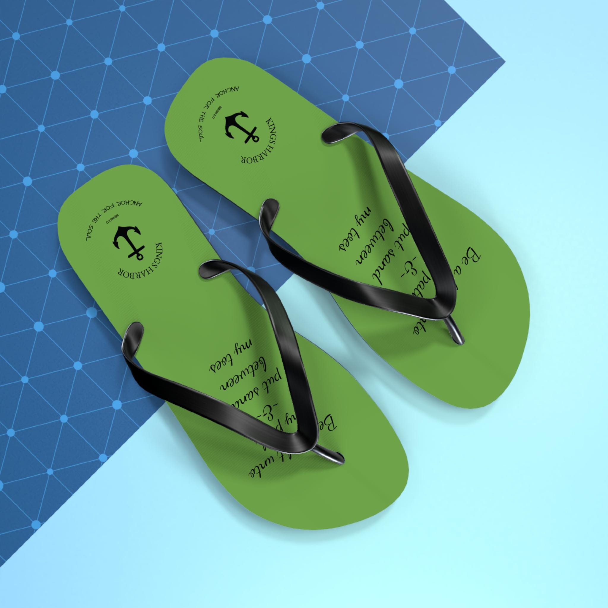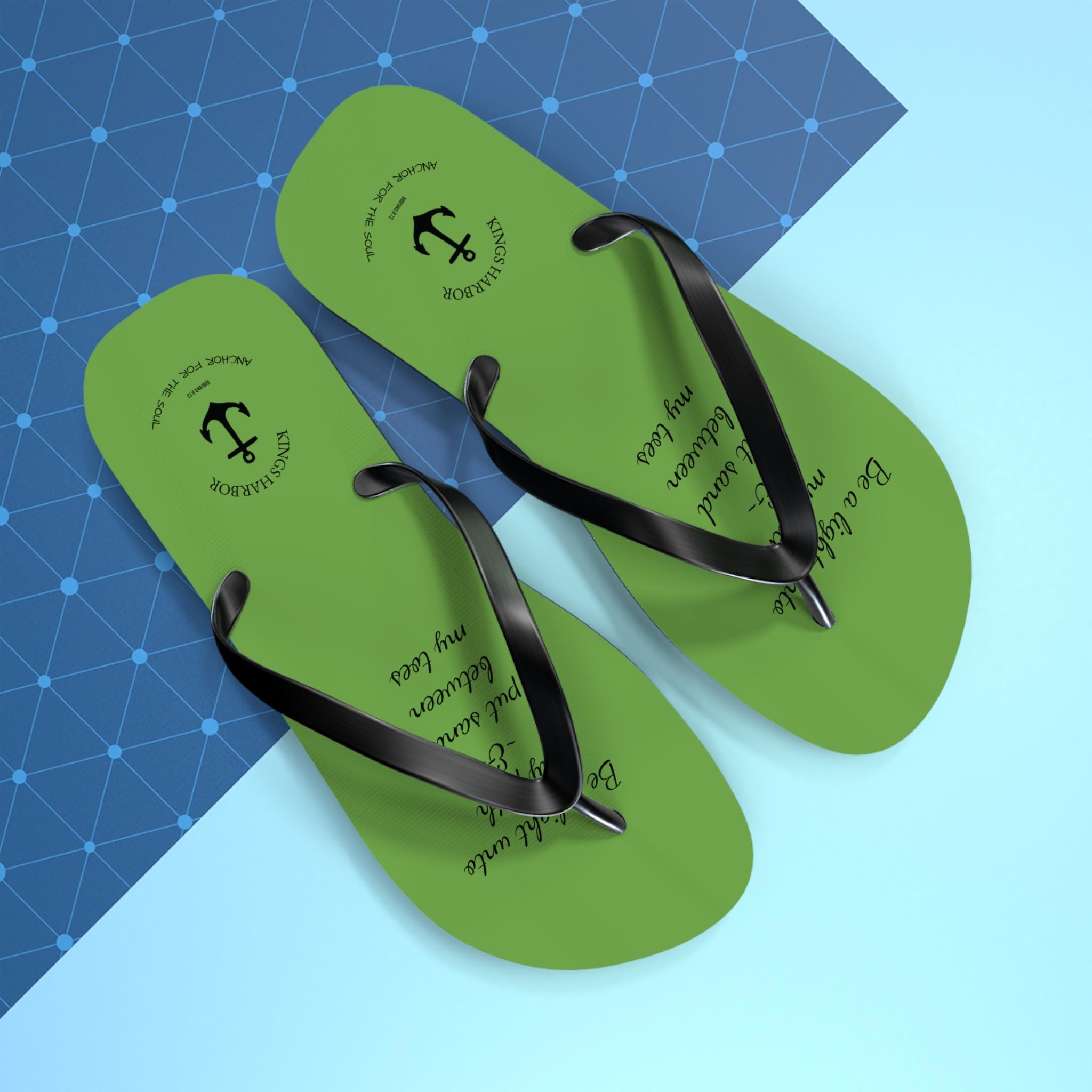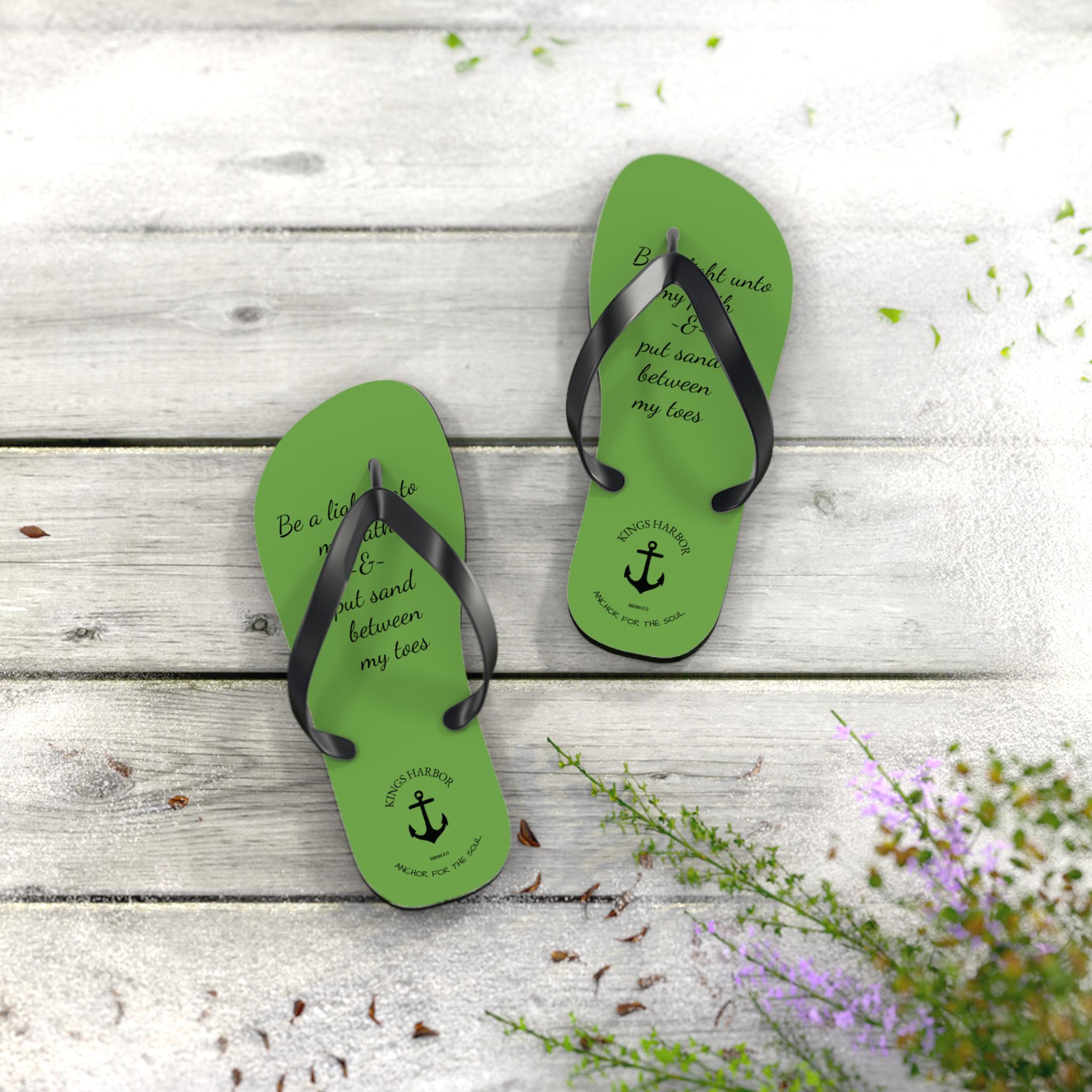 Step into comfort and style with our vibrant Green Flip Flops! Perfect for sunny days at the beach or casual outings, these flip flops bring a fun, cheerful vibe to your summer wardrobe. The saying says, "Be a light unto my path & put sand between my toes." The soft polyester suede provides a cozy fit, while the slip-resistant EVA sole ensures stability on wet surfaces. Ideal for beach lovers, vacationers, and anyone who enjoys laid-back days, these flip flops make a fantastic gift for birthdays, summer celebrations, and special occasions like beach weddings and pool parties. Enjoy the colorful designs that reflect your personality and make every step a joyful experience!