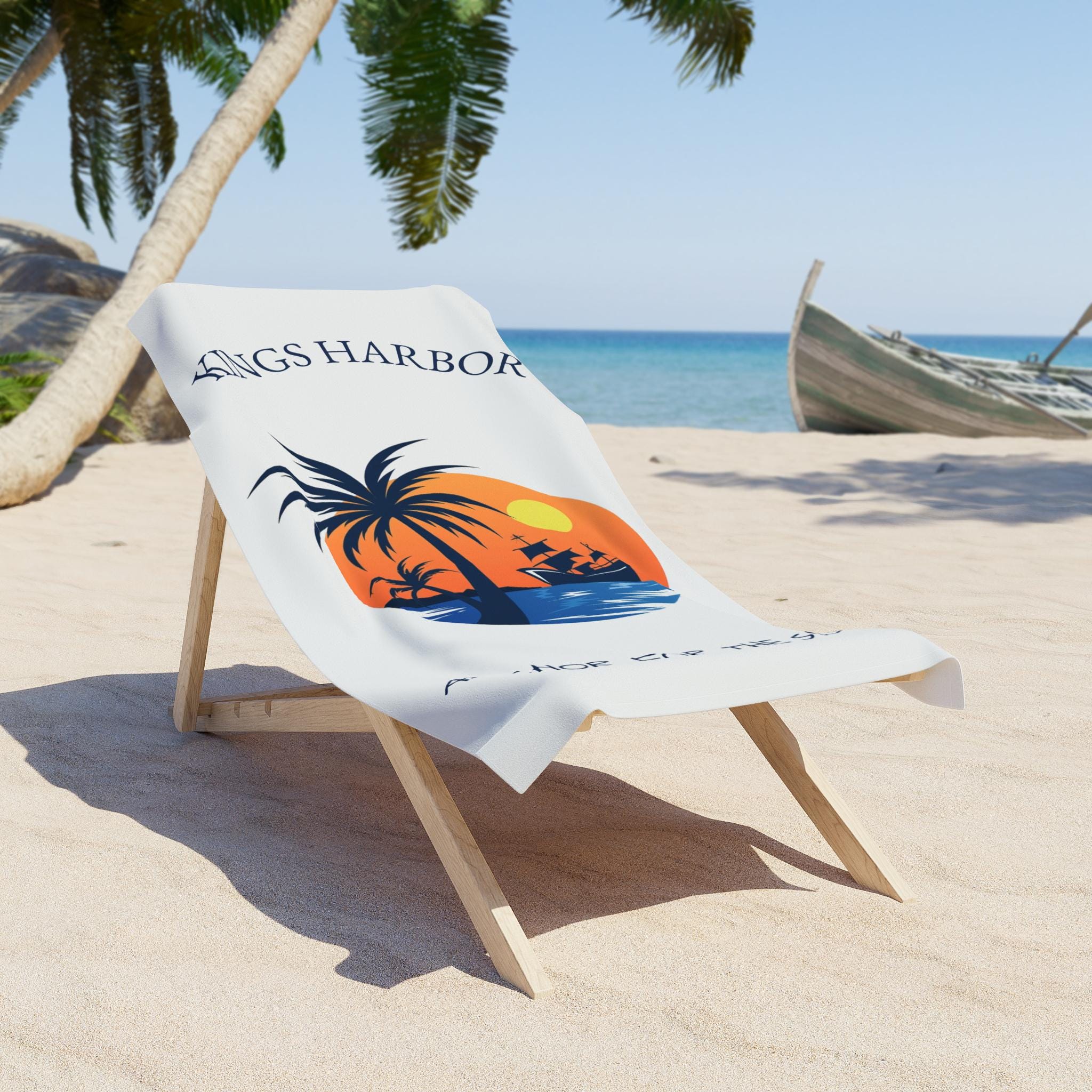 Escape to a tropical paradise with this white beach towel featuring palm trees, sun, and fun colors. Perfect for beach days, pool parties, and summer vacations. Ideal for adults looking to add a touch of summer to their relaxation time.