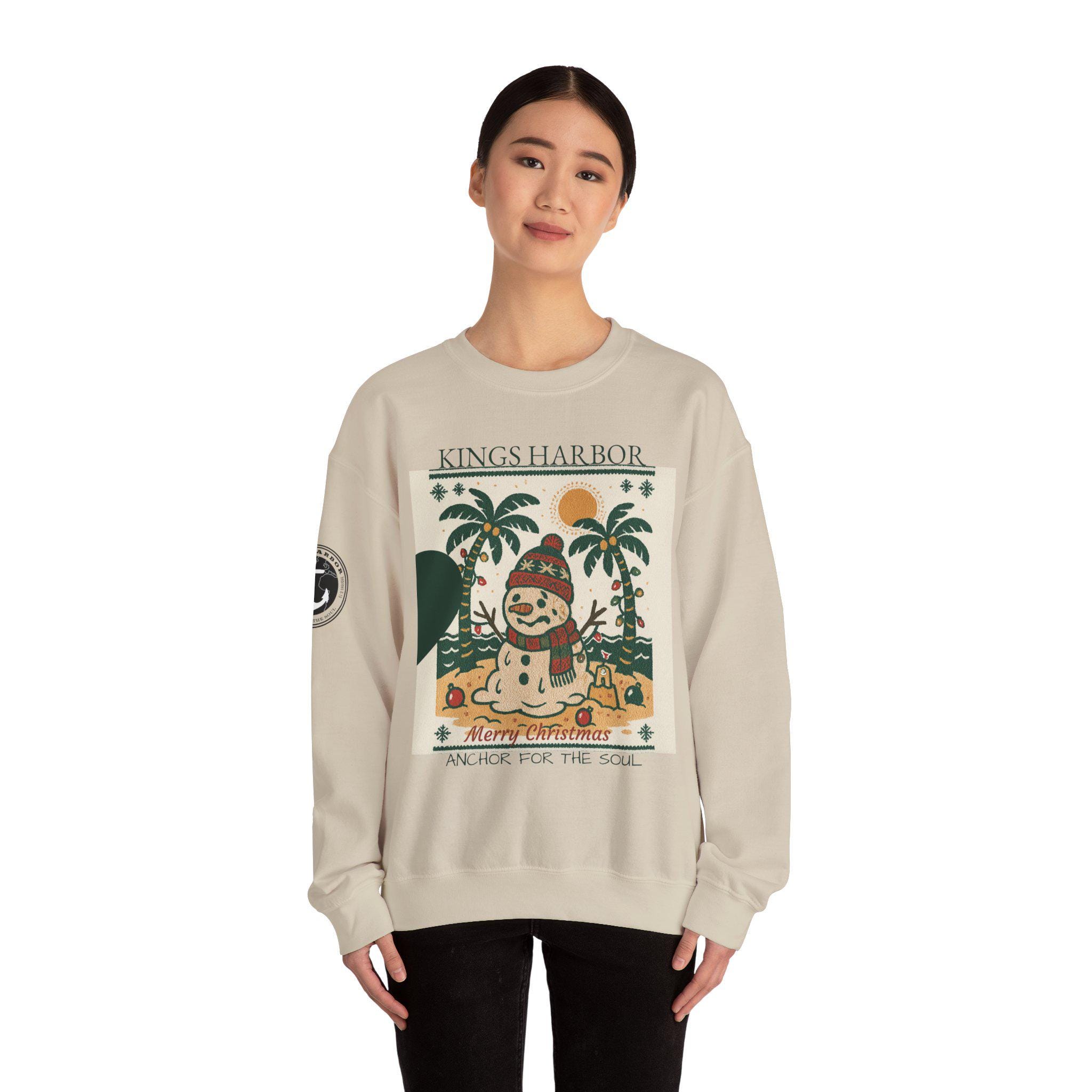 This Tropical Christmas Ugly Sweater with a melting snowman design is perfect for fun holiday get togethers. The classic fit and cozy feel make it great for adults looking to add a touch of humor to their festive wardrobe. Suitable for Christmas parties, ugly sweater contests, and casual holiday gatherings.