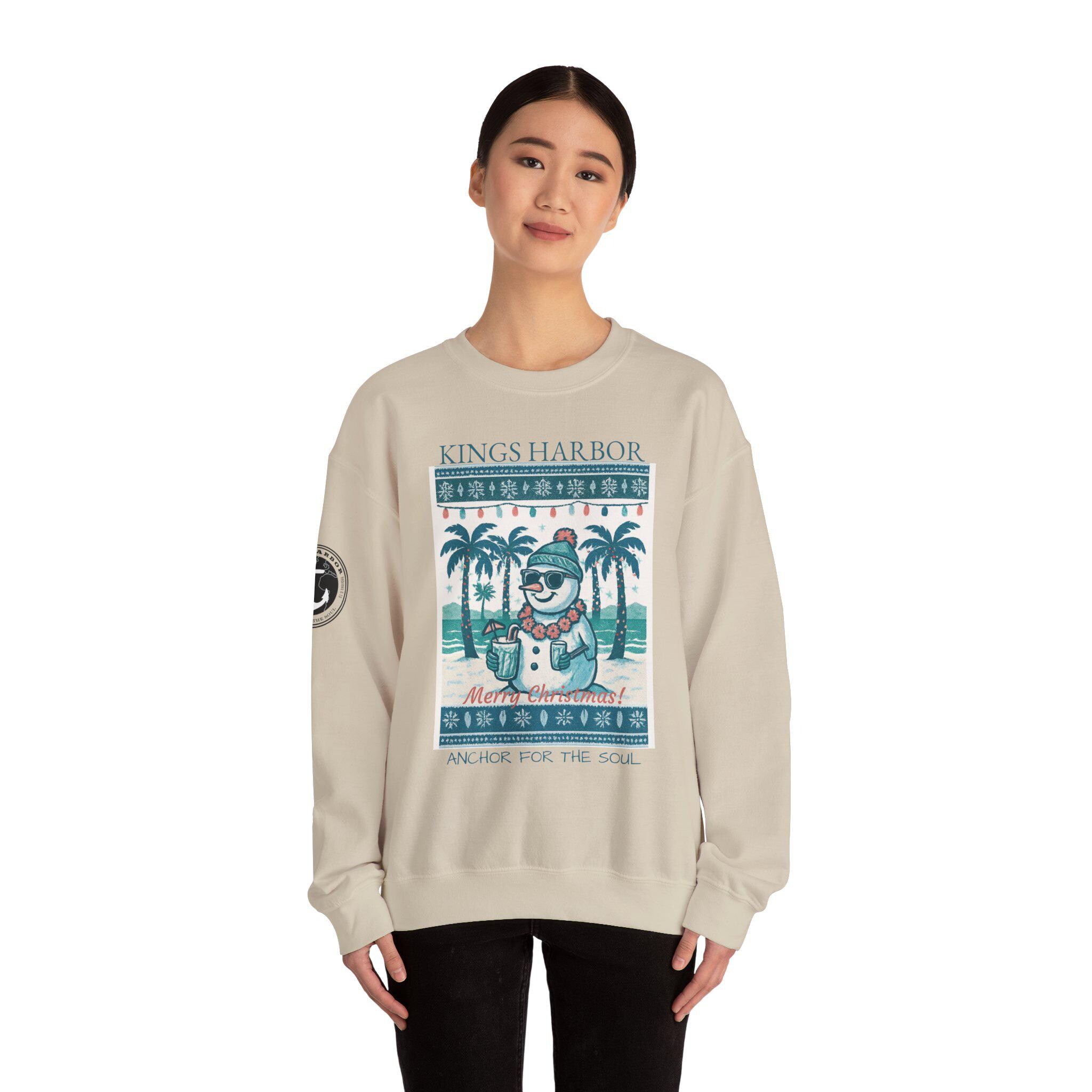 Stay cozy and festive with this Unisex Heavy Blend™ Crewneck Sweatshirt featuring a Cool Snowman in a Tropical Christmas Ugly Sweater design. Perfect for celebrating the holidays with a fun and lighthearted vibe. This sweatshirt is for adults looking for comfort, durability, and holiday spirit. Ideal for Christmas celebrations, holiday parties, and winter gatherings.