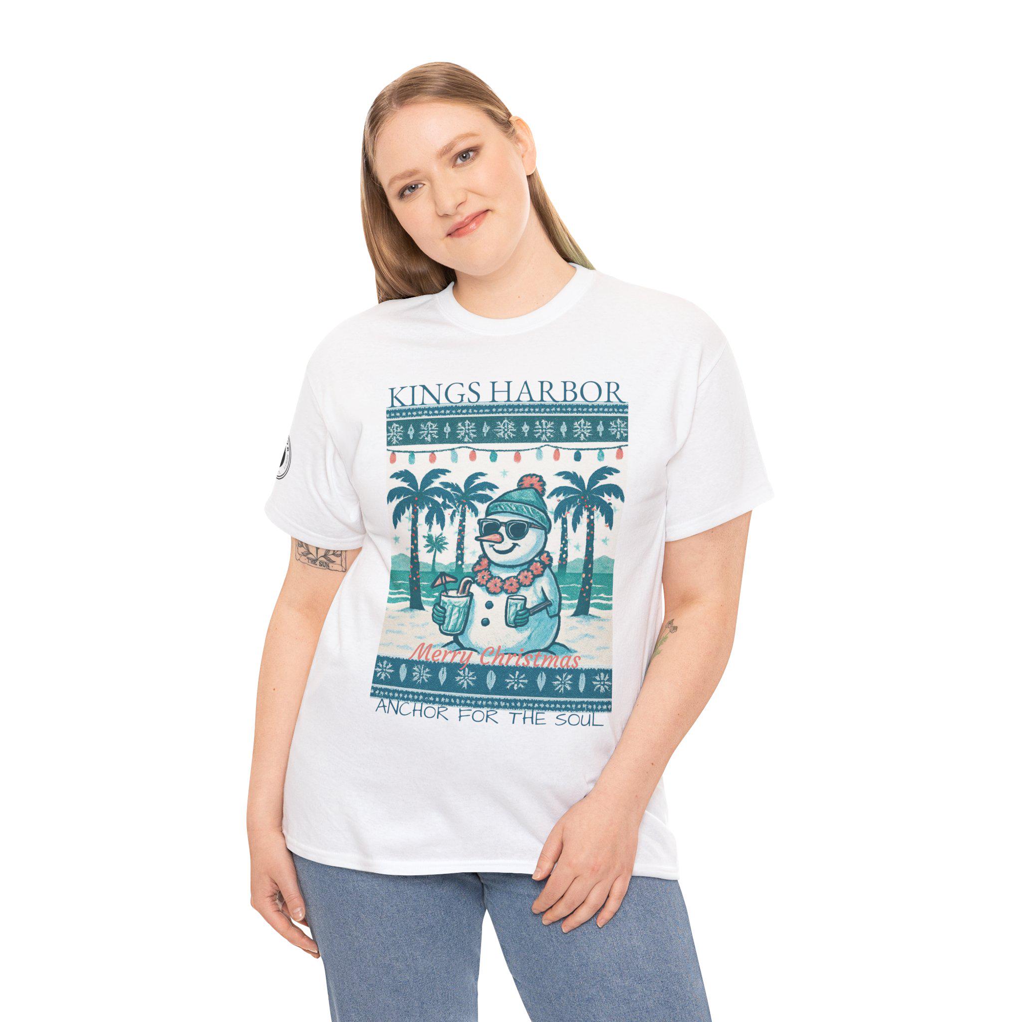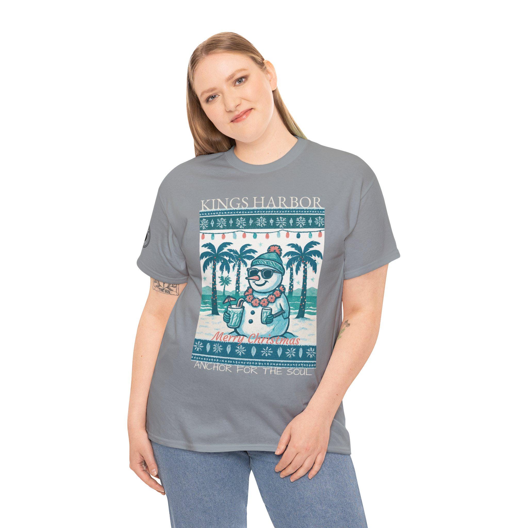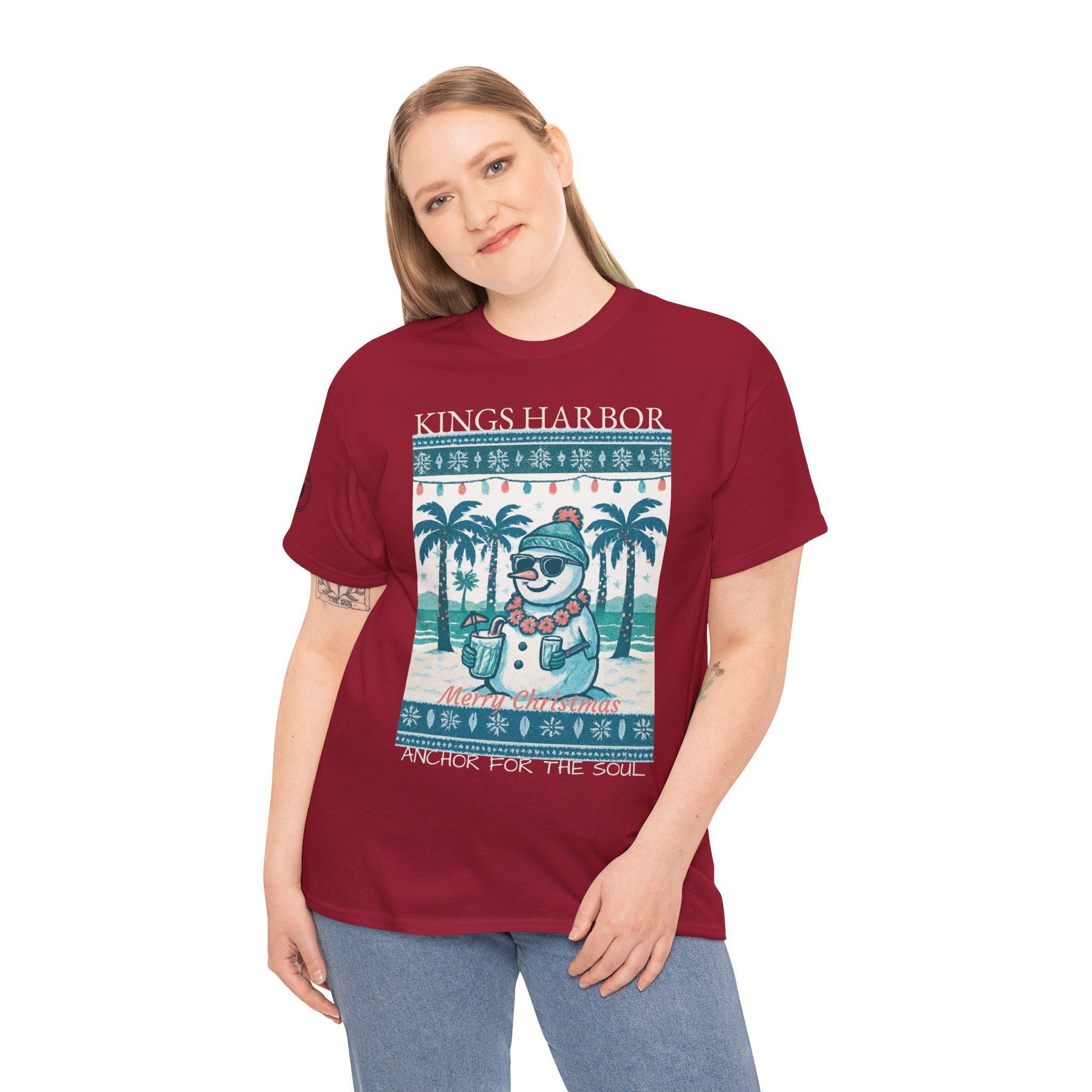 This 'Ugly Sweater' T-Shirt with a Snowman with sunglasses in a Tropical Christmas theme is a great way to celebrate the holidays. It gives off a fun and festive vibe, perfect for those who love unique holiday apparel. Ideal for adults looking to add a touch of humor to their holiday wardrobe, this T-Shirt is relevant for Christmas celebrations and festive gatherings.