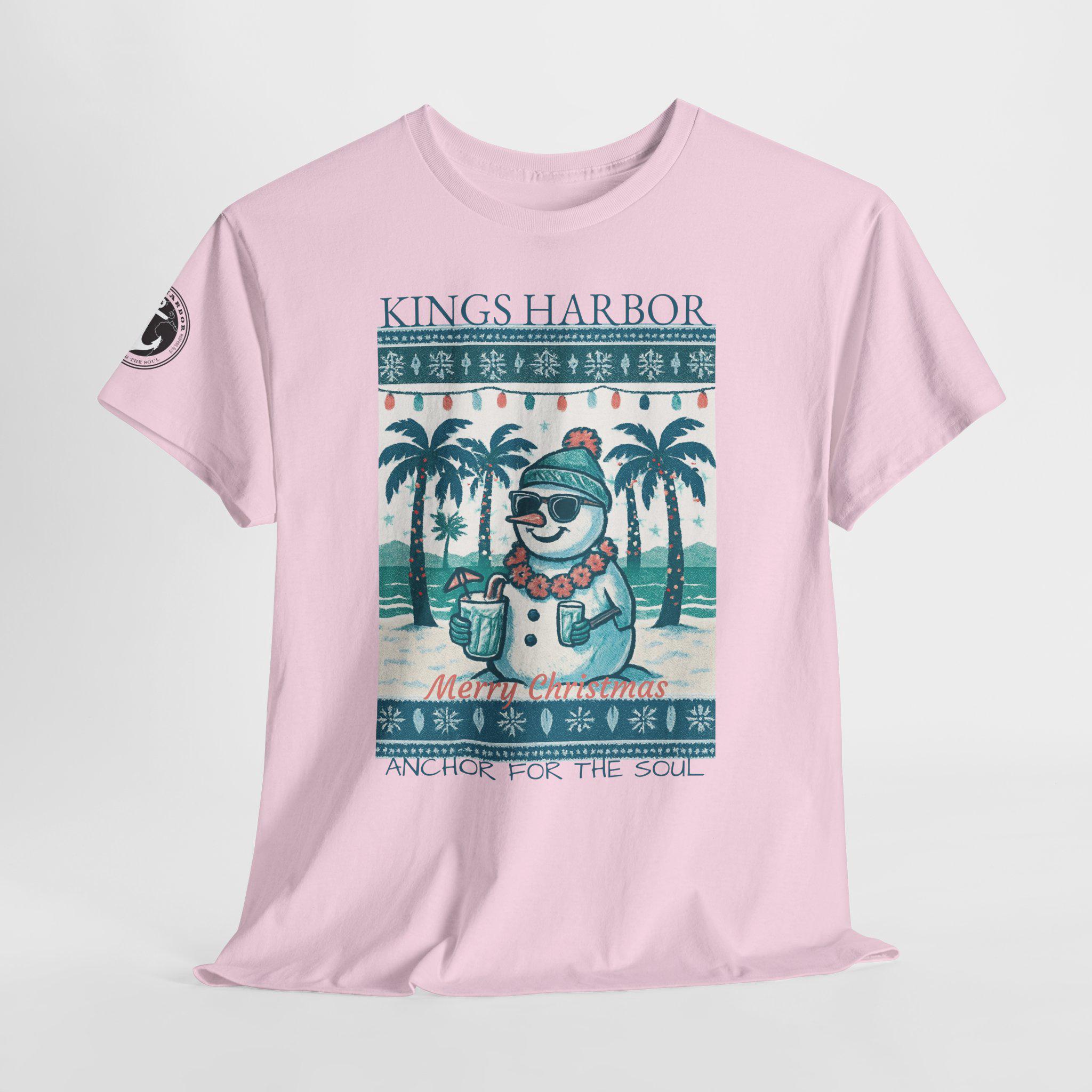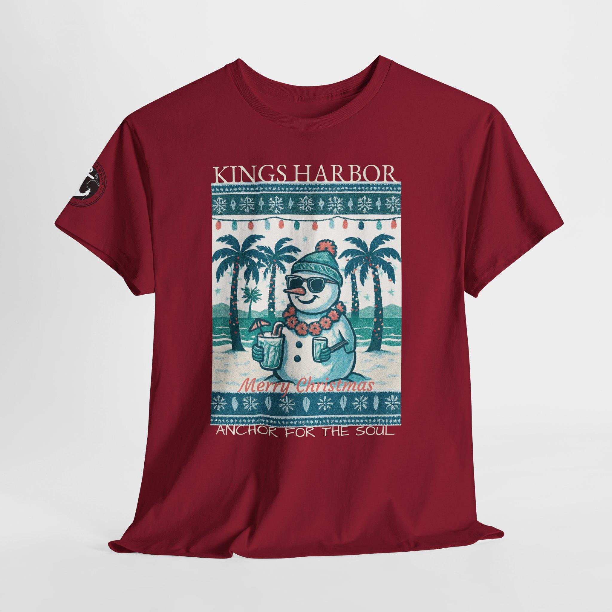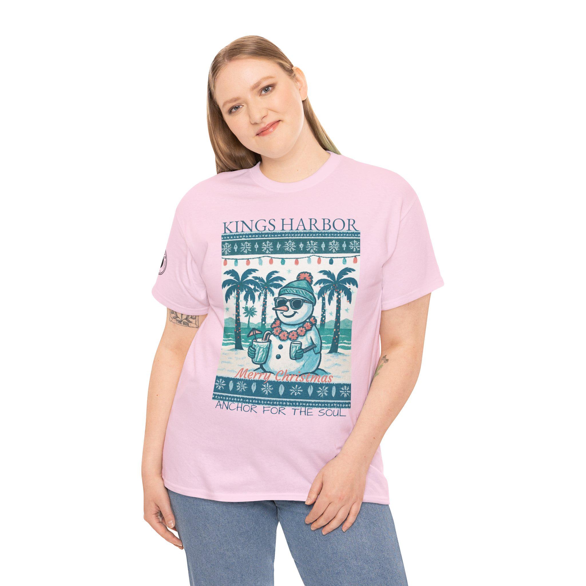 This 'Ugly Sweater' T-Shirt with a Snowman with sunglasses in a Tropical Christmas theme is a great way to celebrate the holidays. It gives off a fun and festive vibe, perfect for those who love unique holiday apparel. Ideal for adults looking to add a touch of humor to their holiday wardrobe, this T-Shirt is relevant for Christmas celebrations and festive gatherings.