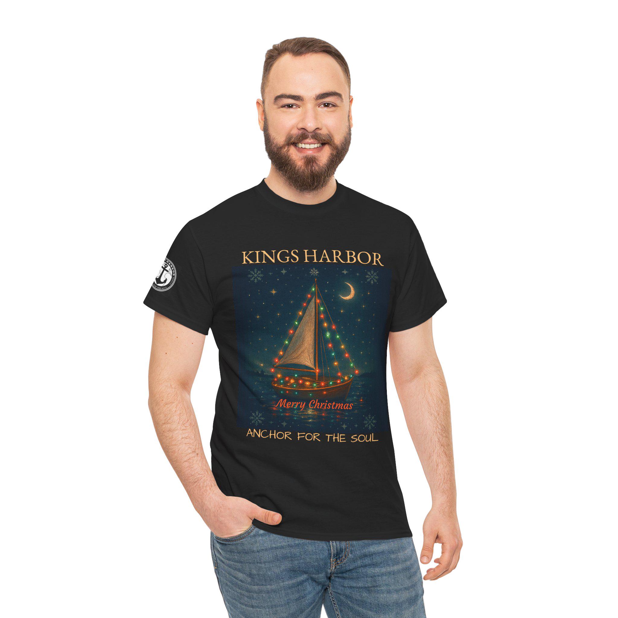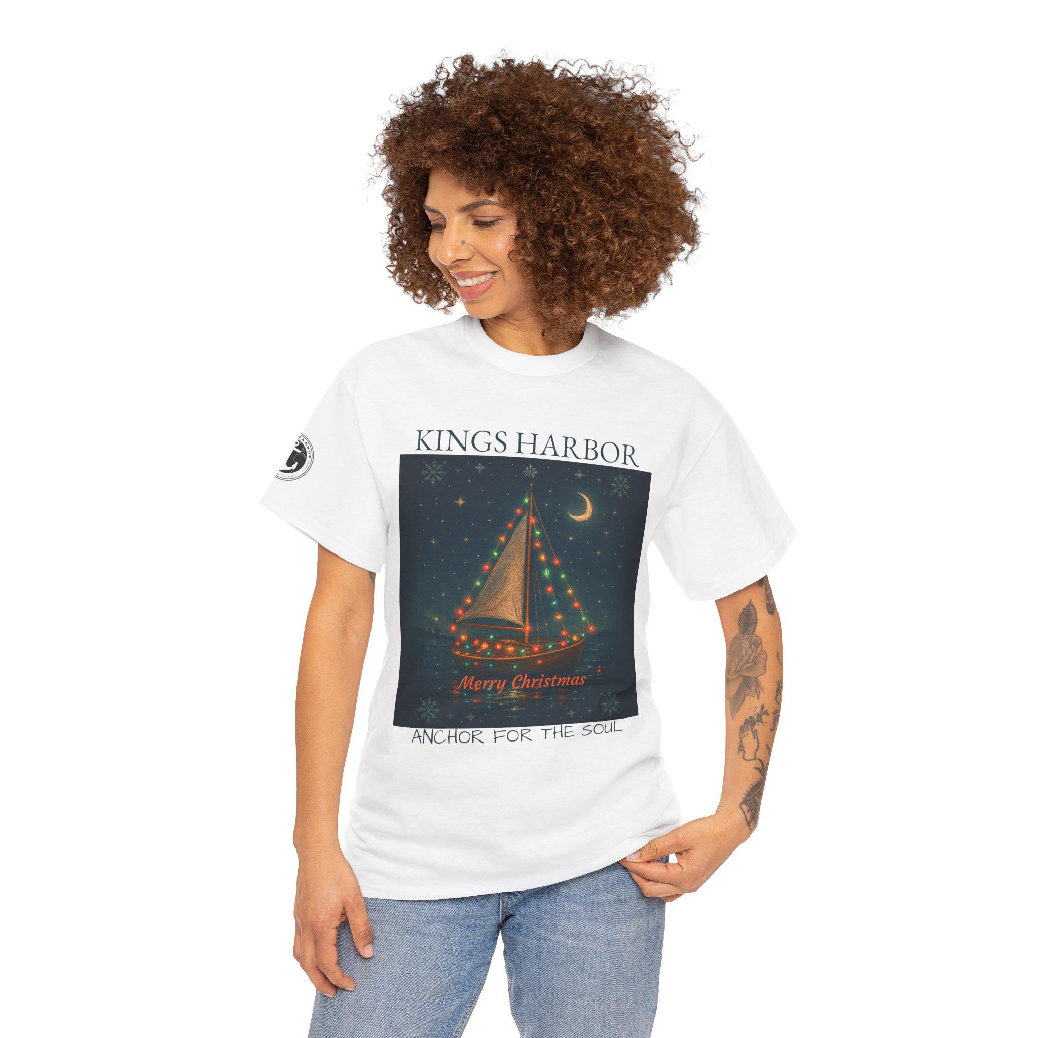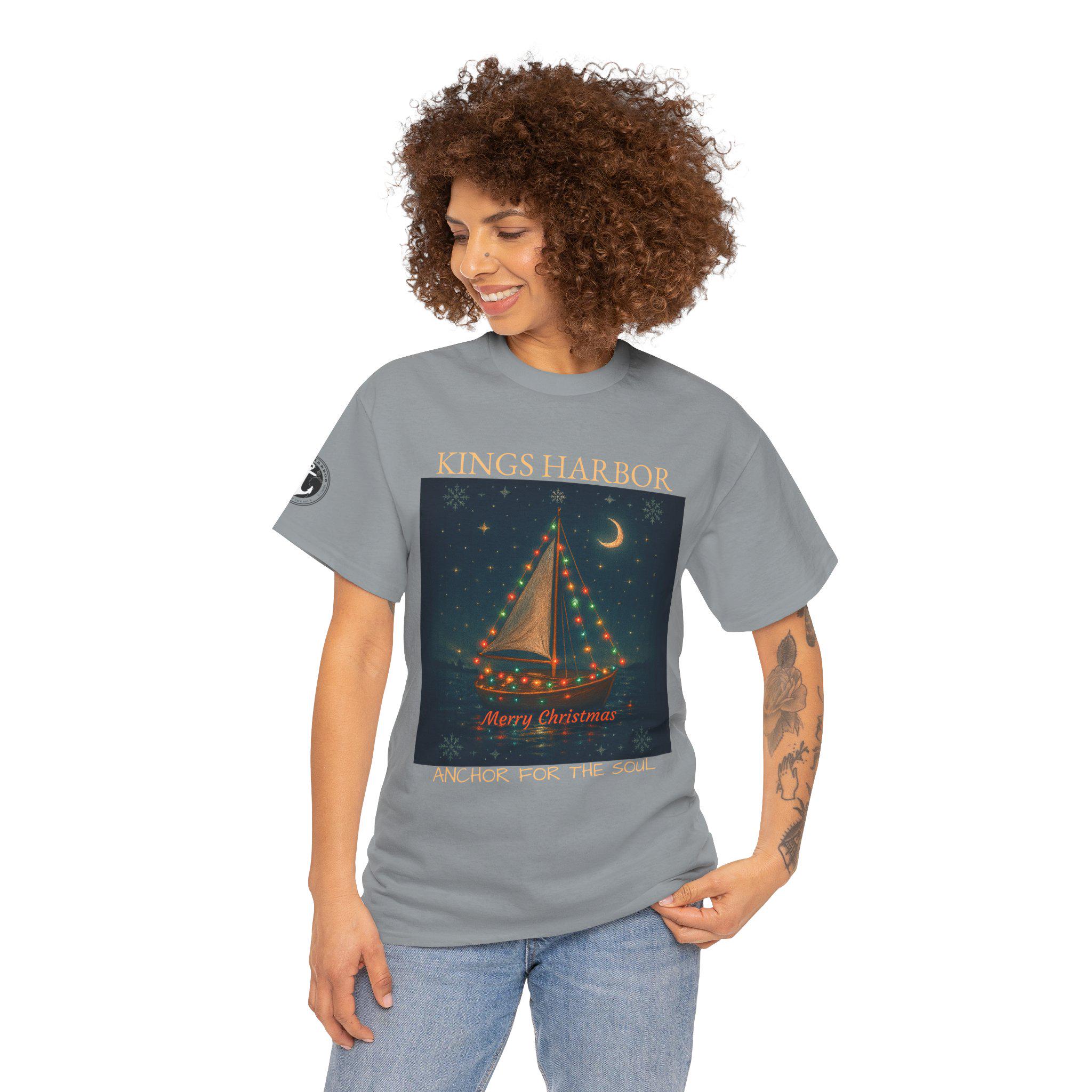 This 'Ugly Sweater' T-Shirt with a Sailboat on the ocean with a Tropical Christmas theme is a great way to celebrate the holidays. It exudes a festive and fun vibe, perfect for those who love unique holiday apparel. Ideal for anyone looking to add a touch of holiday cheer to their wardrobe or for themed Christmas parties and gatherings.