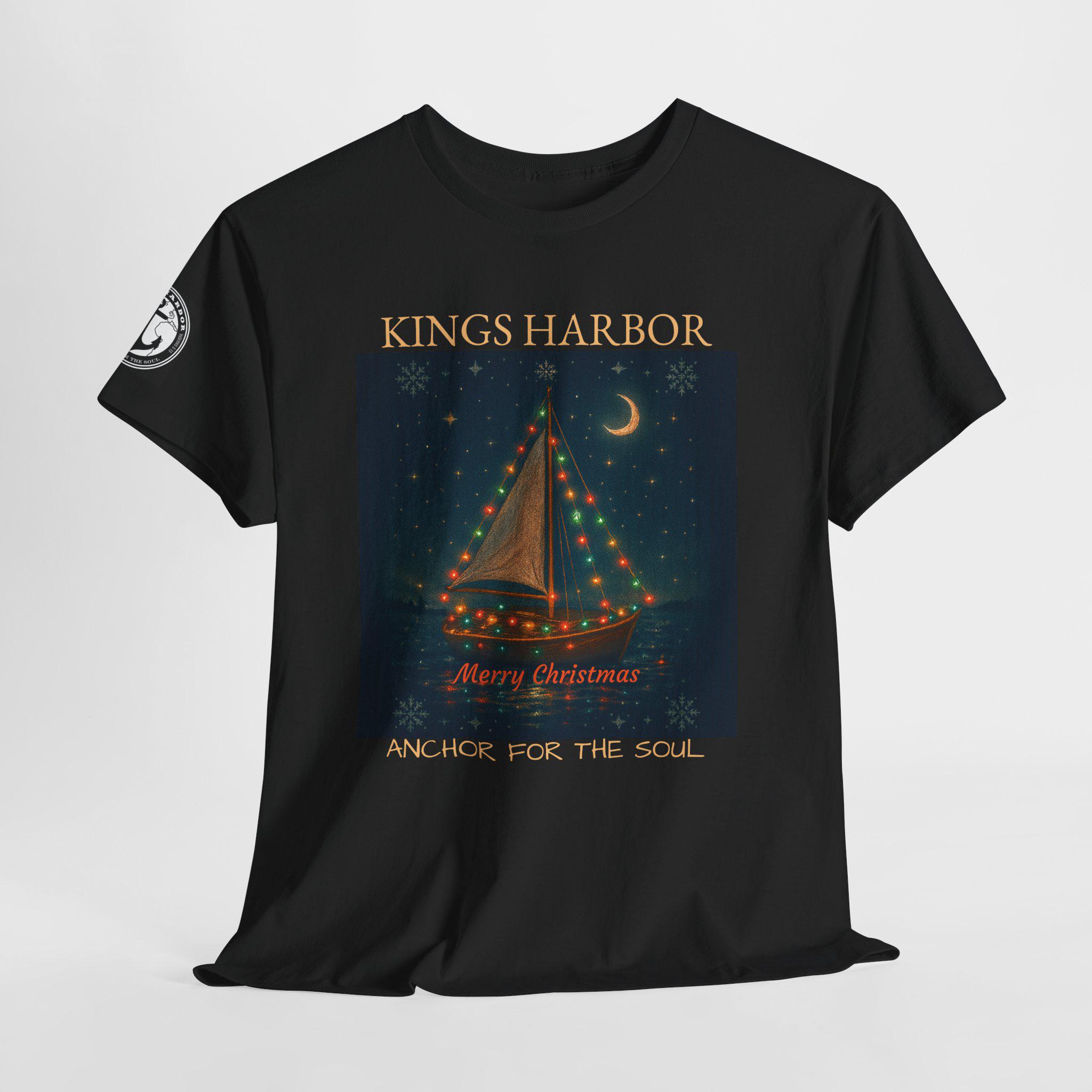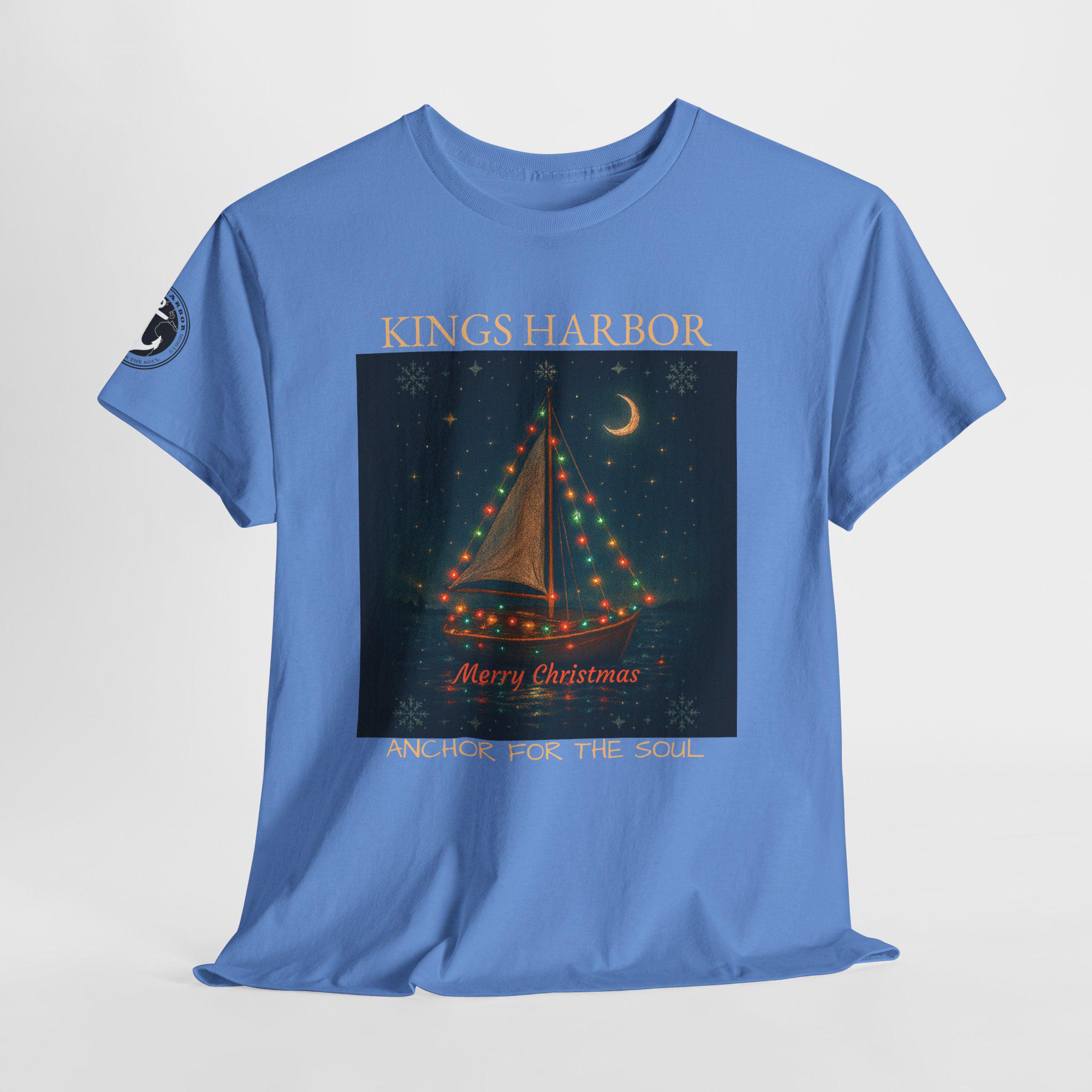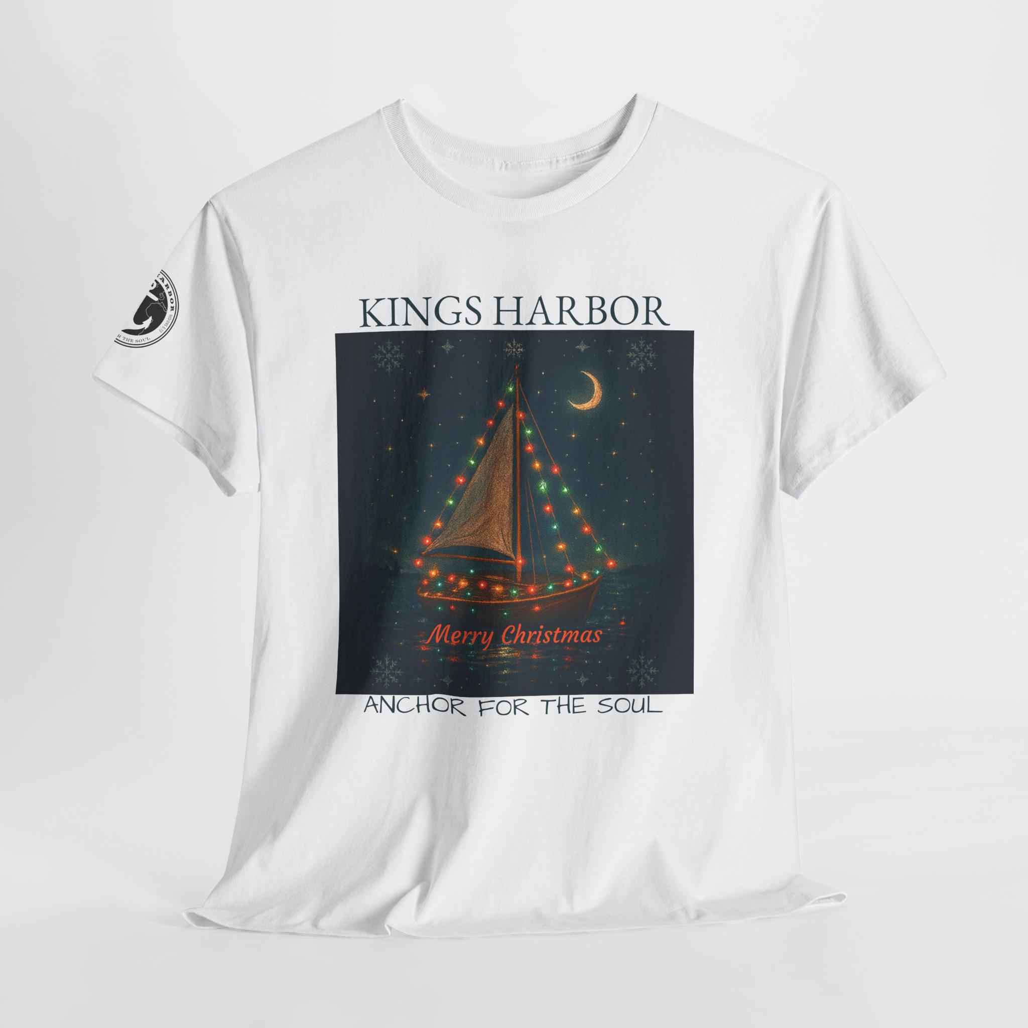 This 'Ugly Sweater' T-Shirt with a Sailboat on the ocean with a Tropical Christmas theme is a great way to celebrate the holidays. It exudes a festive and fun vibe, perfect for those who love unique holiday apparel. Ideal for anyone looking to add a touch of holiday cheer to their wardrobe or for themed Christmas parties and gatherings.
