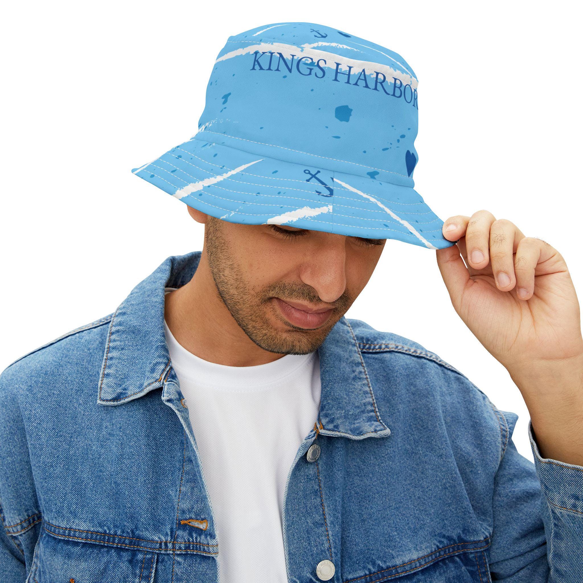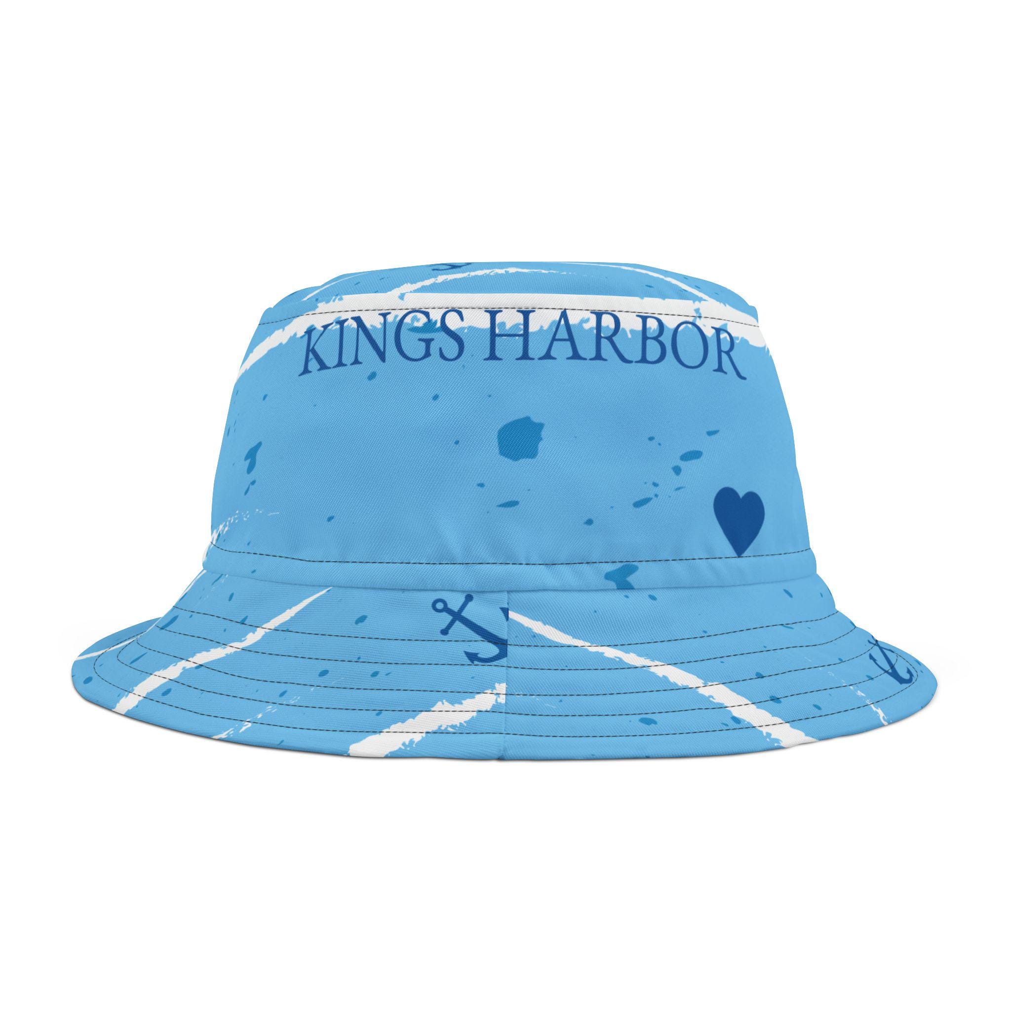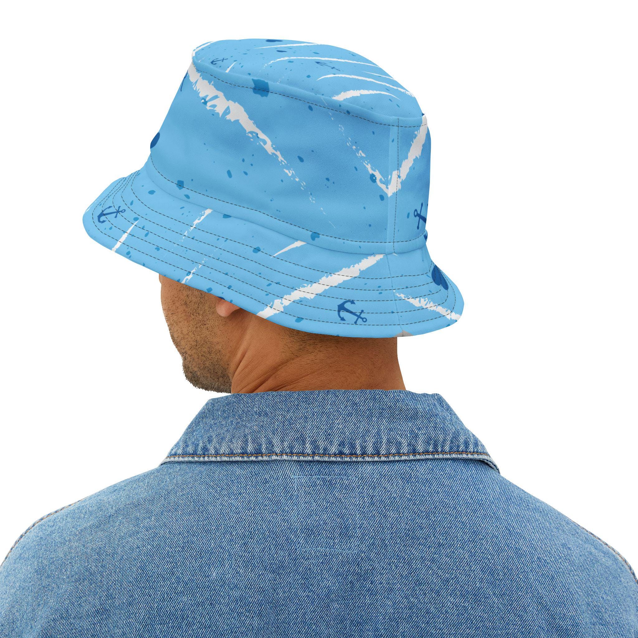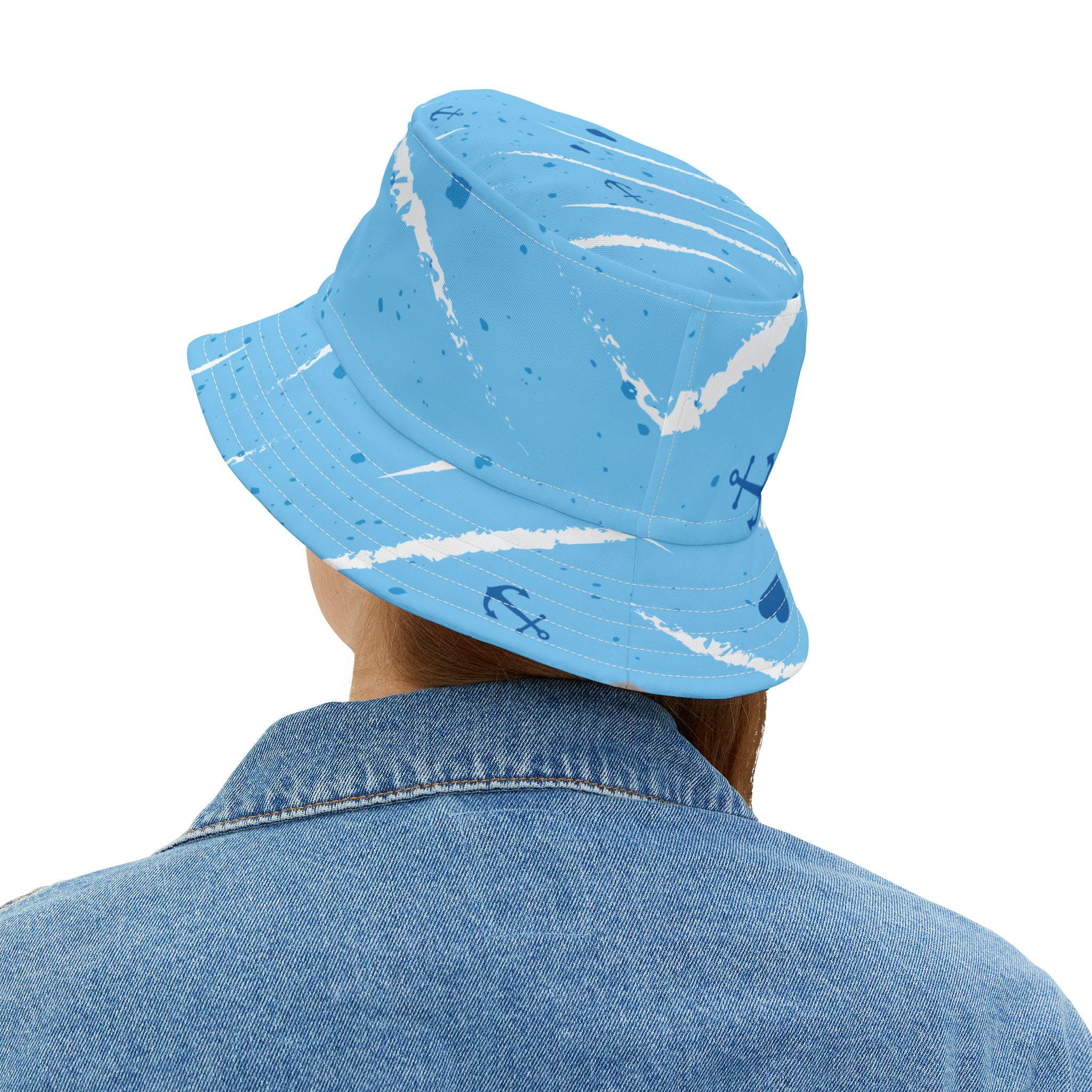Stay stylish and protected from the sun with this Beachy Bucket Hat featuring an Anchor and Heart design in light blue. Perfect for a summer vacation or a fun festival, this hat is made of 100% polyester, with multiple size options available. The stitching color can be customized, adding a personal touch to your accessory collection. Made in the USA.