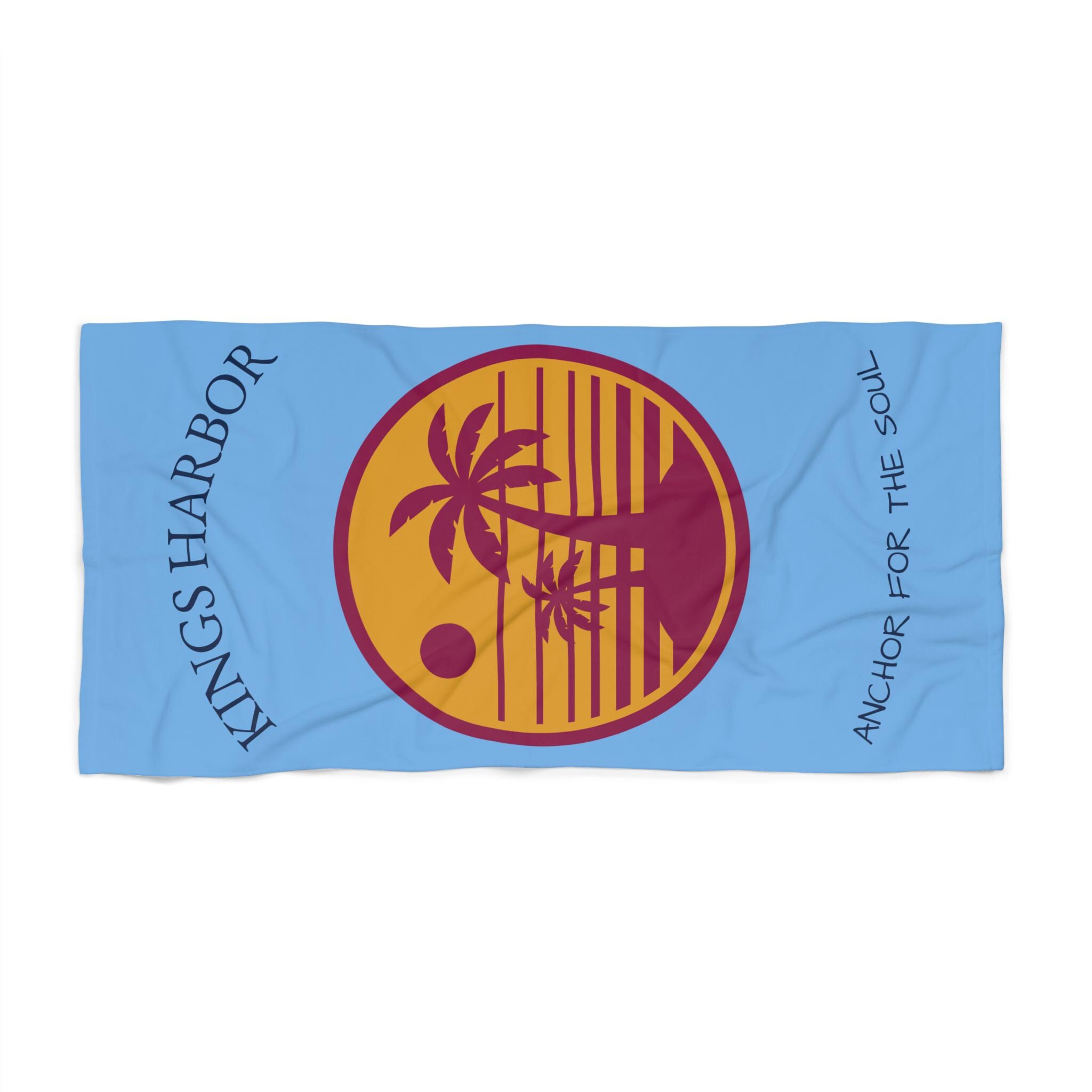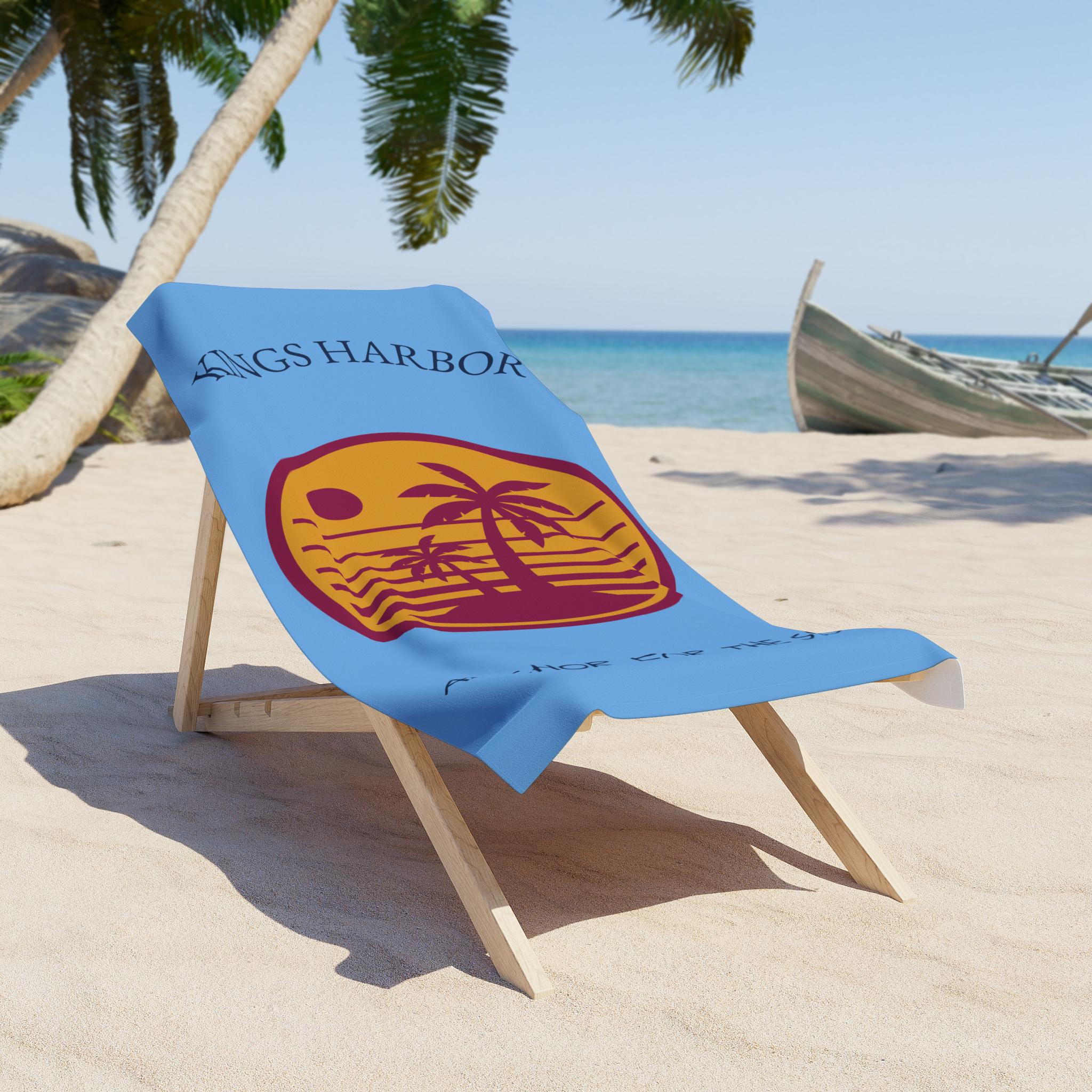 Relax in style with this retro Palm Tree scene beach towel in a light blue color, perfect for lounging at the beach or by the pool. Ideal for adults looking to add a touch of nostalgia to their beach accessories. Great for summer vacations, beach trips, and pool parties.