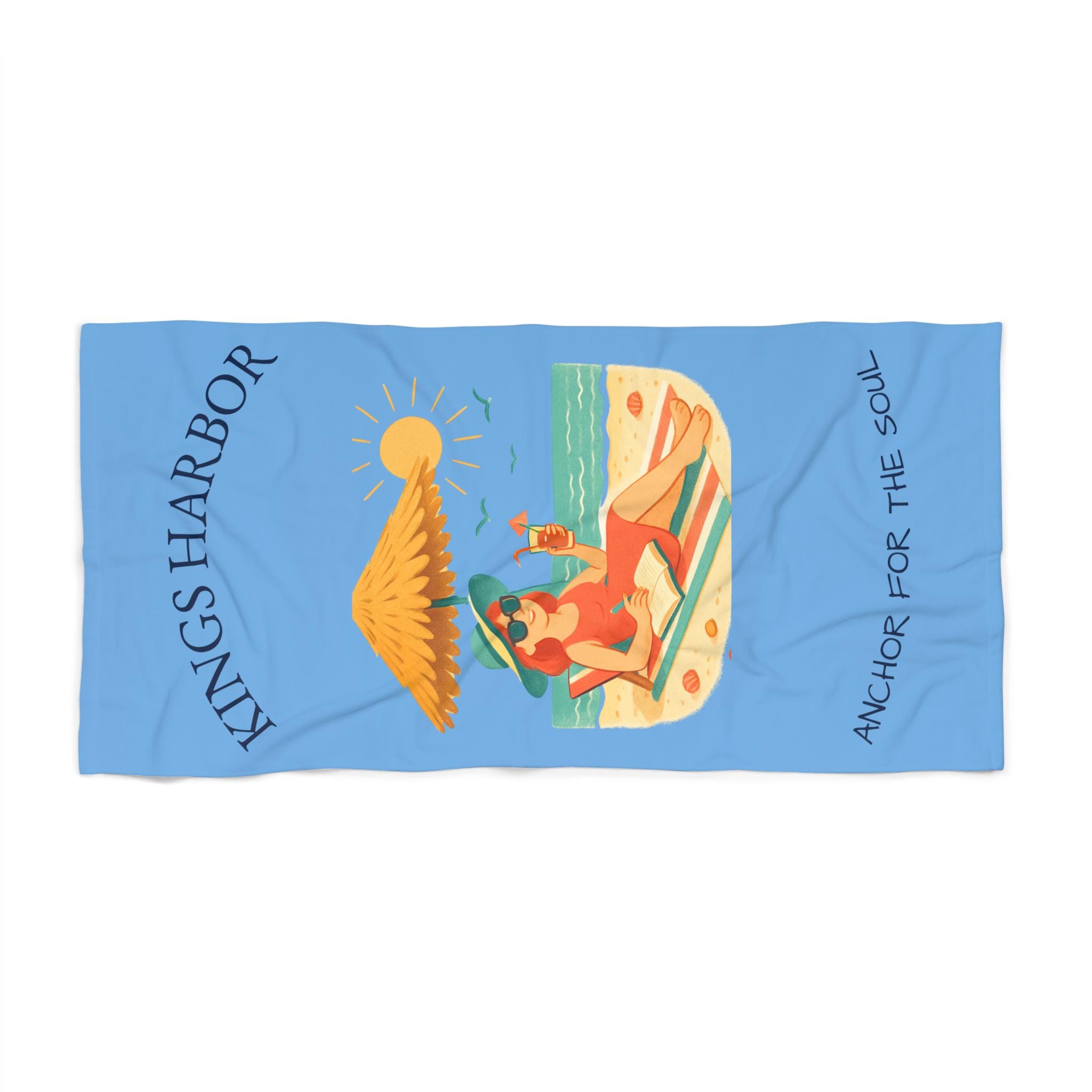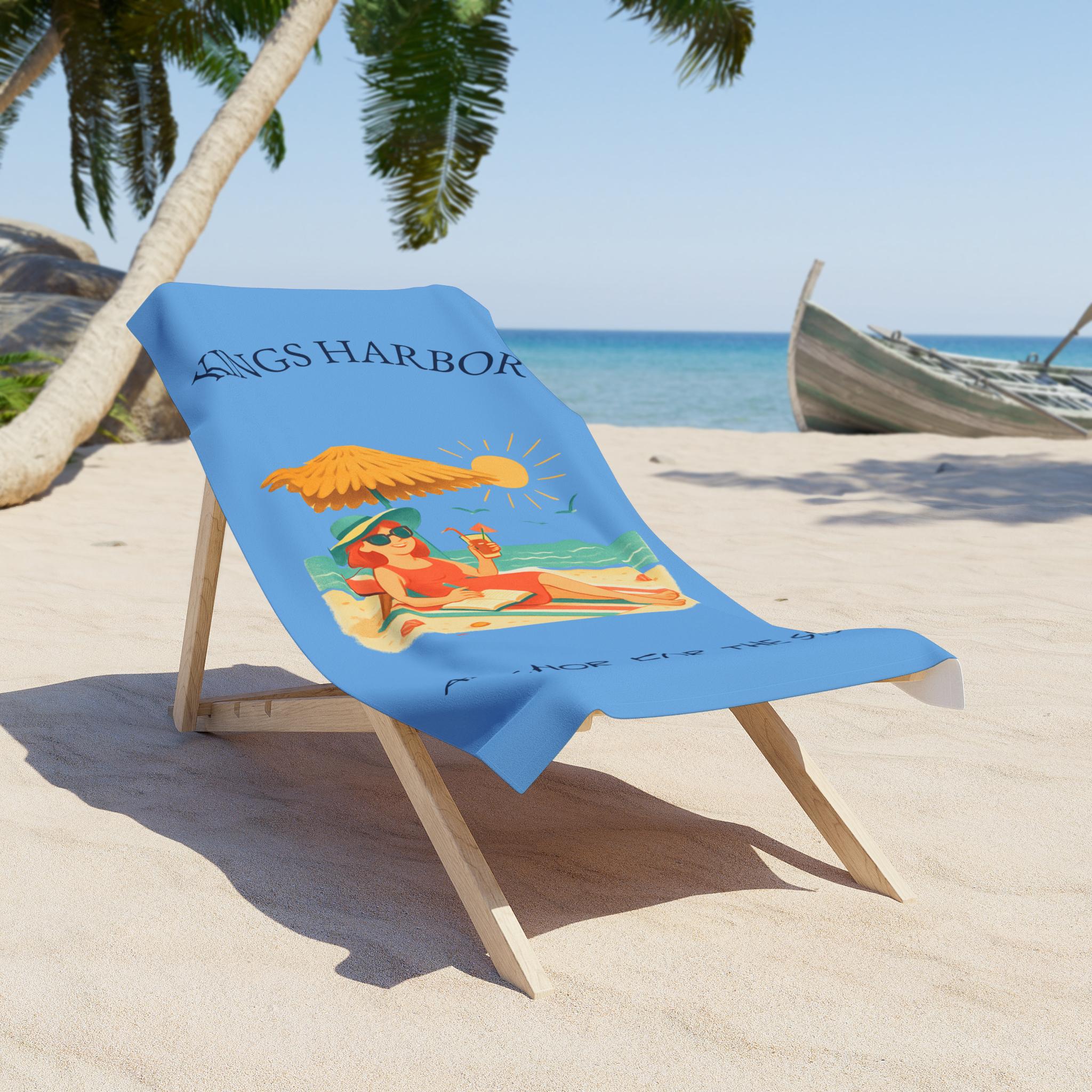 Stay relaxed and stylish at the beach with this Light Blue Beach Towel featuring a design of a Beach Mom enjoying a drink and a book. Perfect for beach lovers and moms looking to unwind by the shore. Ideal for summer vacations, Mother's Day gifts, and beach-themed occasions.