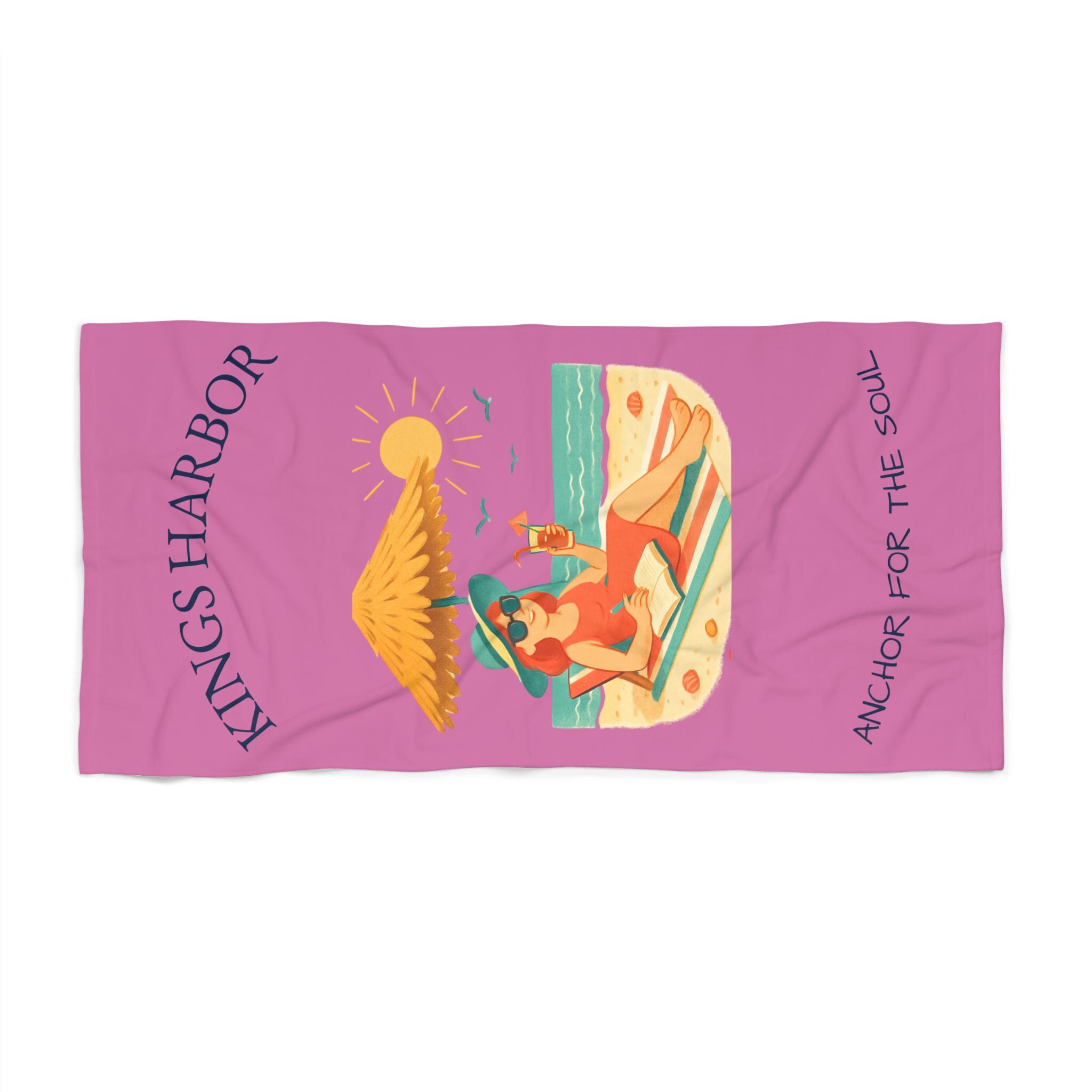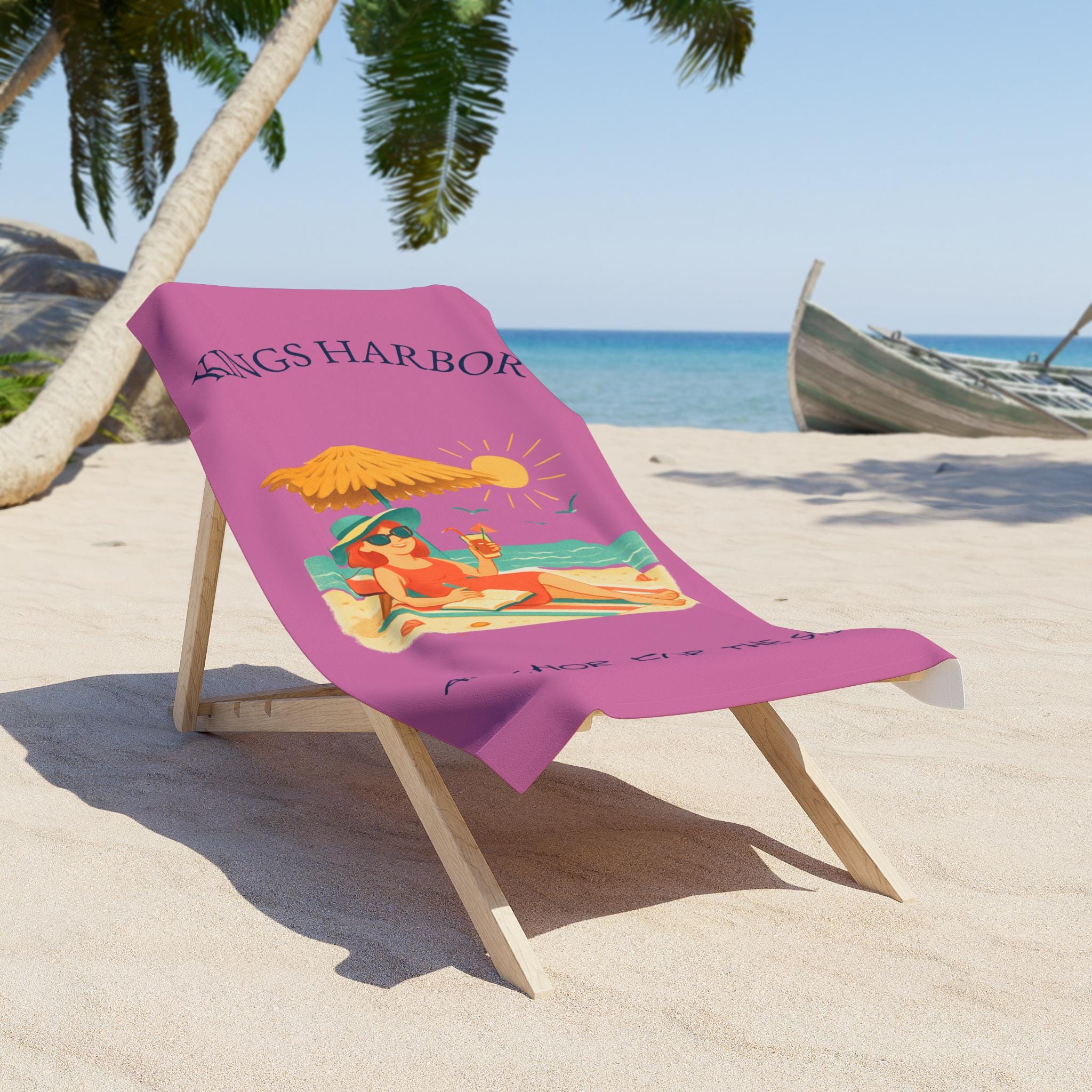Stay relaxed and stylish at the beach with this Light Pink Beach Towel featuring a design of a Beach Mom enjoying a drink and a book. Perfect for beach lovers and moms looking to unwind by the shore. Ideal for summer vacations, Mother's Day gifts, and beach-themed occasions.