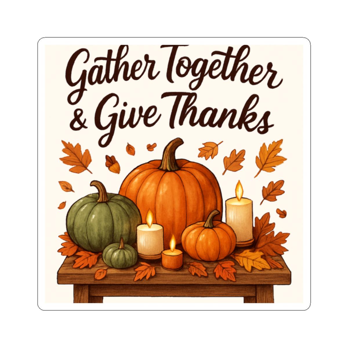 Get Together and Give Thanks Stickers are perfect for any fall festivity and Thanksgiving with friends and family. Add a festive touch to your decorations and create a warm atmosphere of gratitude. Ideal for adults to use on laptops, journals, and windows during the holiday season.