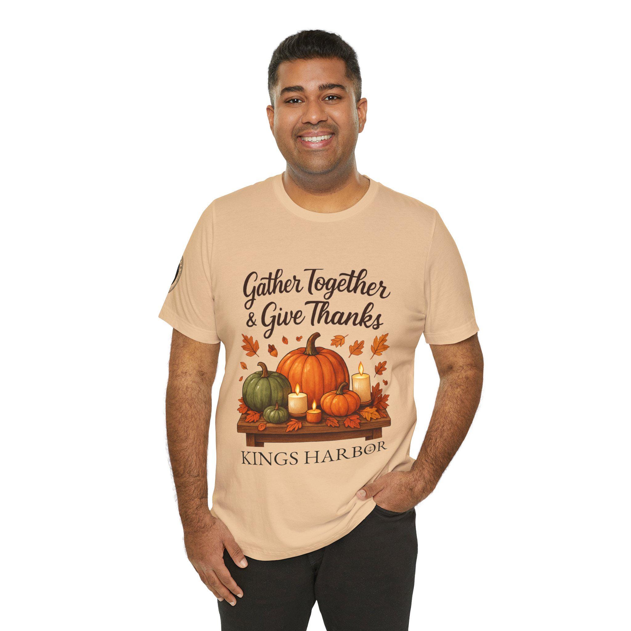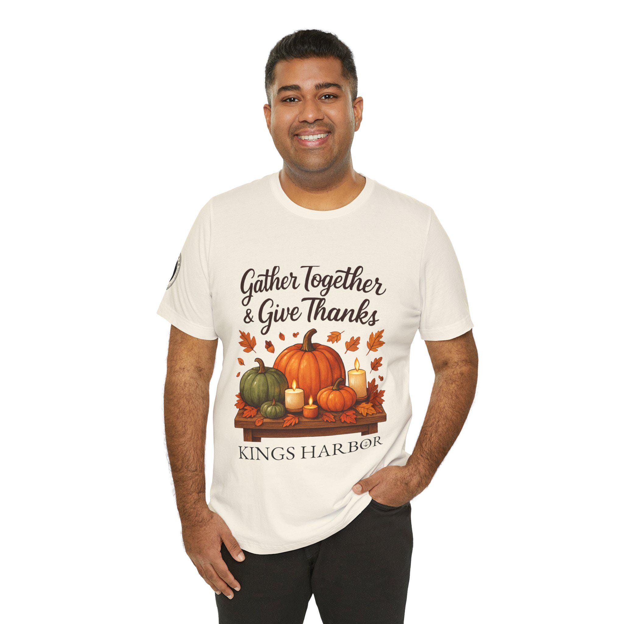 Get Together and Give Thanks T-Shirt is perfect for any fall festivity and Thanksgiving with friends and family. It exudes a warm and inviting atmosphere, making it ideal for gatherings and celebrations during the autumn season. This unisex tee is relevant to adults looking for a comfortable and stylish shirt to wear to Thanksgiving dinners and other festive occasions.