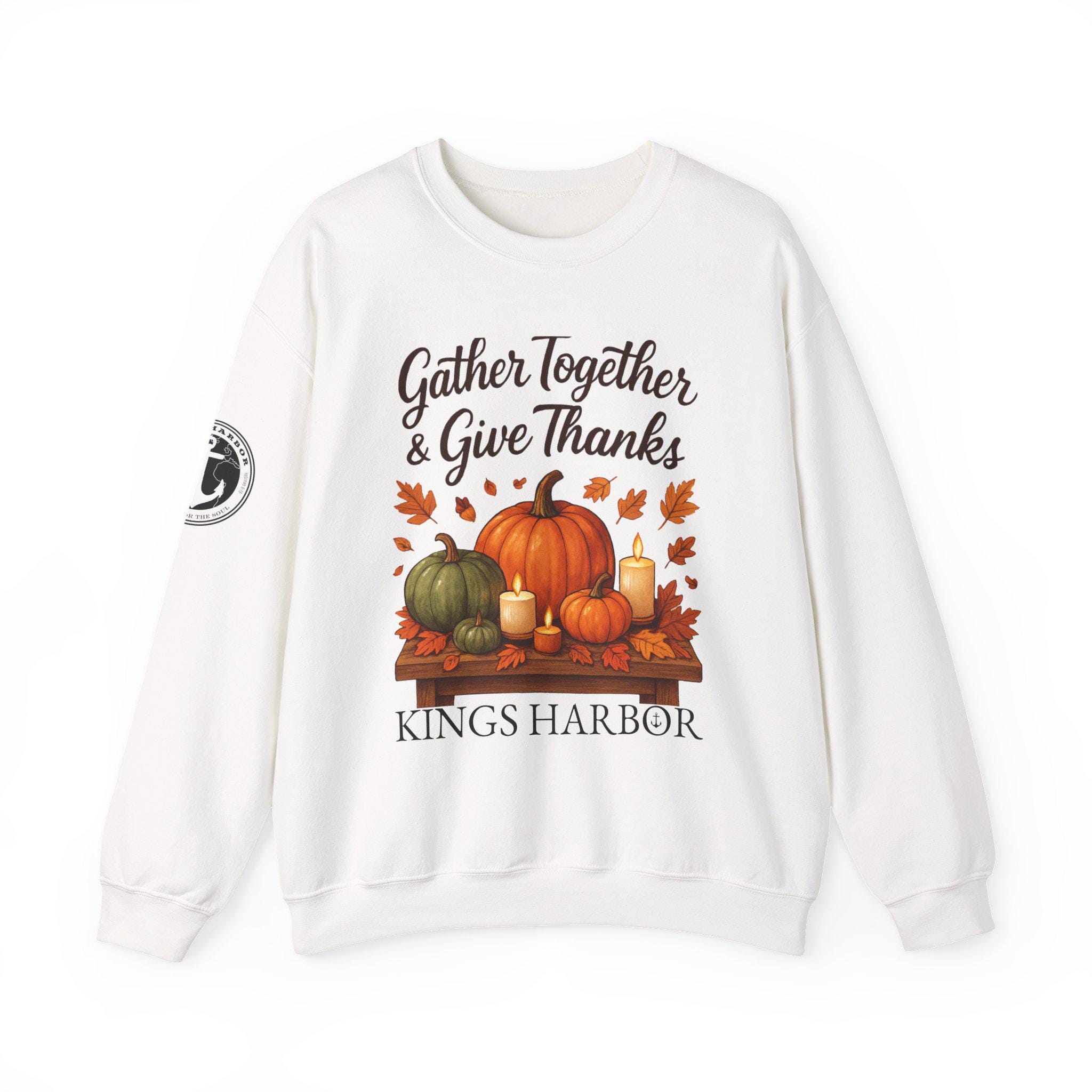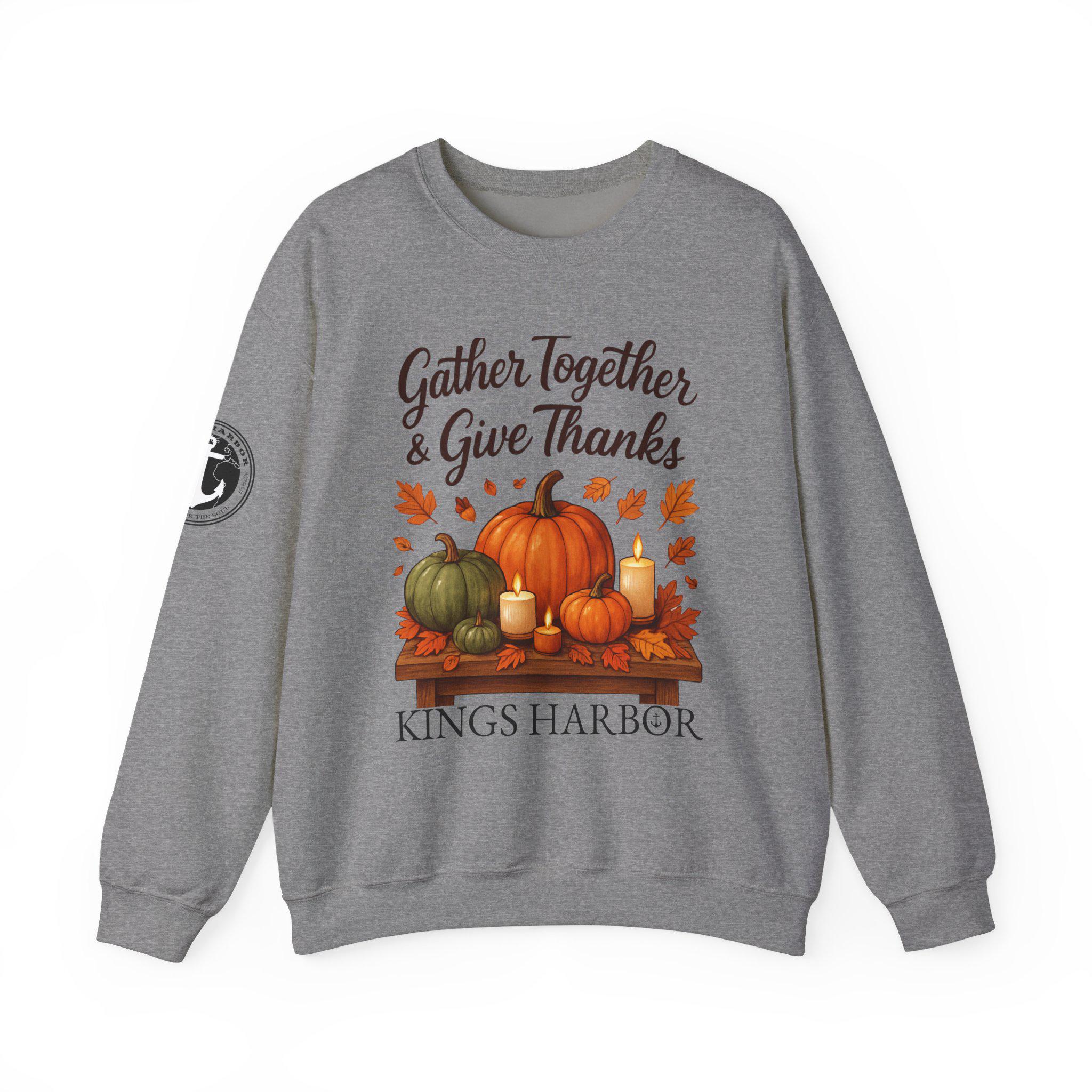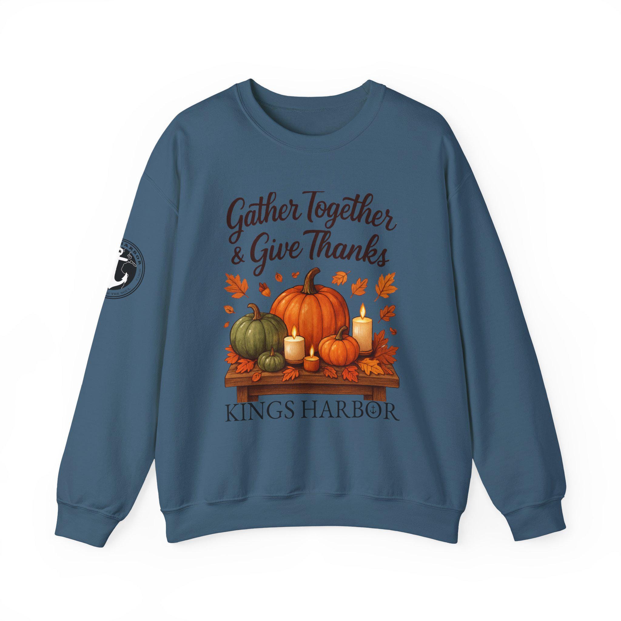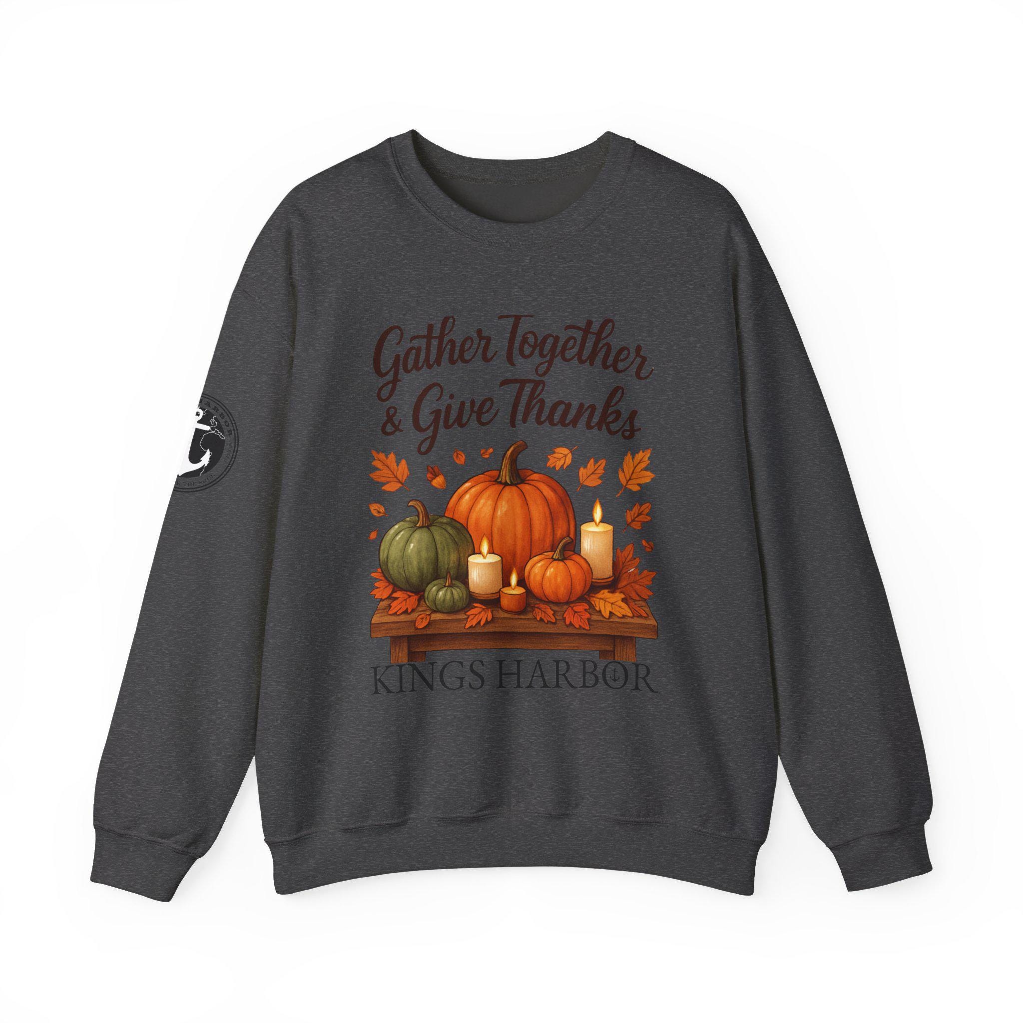 Get Together and Give Thanks is great for any fall festivity and Thanksgiving with friends and family. This cozy Unisex Heavy Blend™ Crewneck Sweatshirt provides comfort and durability, with a classic fit and clean-cut style. Perfect for adults looking for a comfortable and stylish option for fall gatherings and Thanksgiving celebrations.