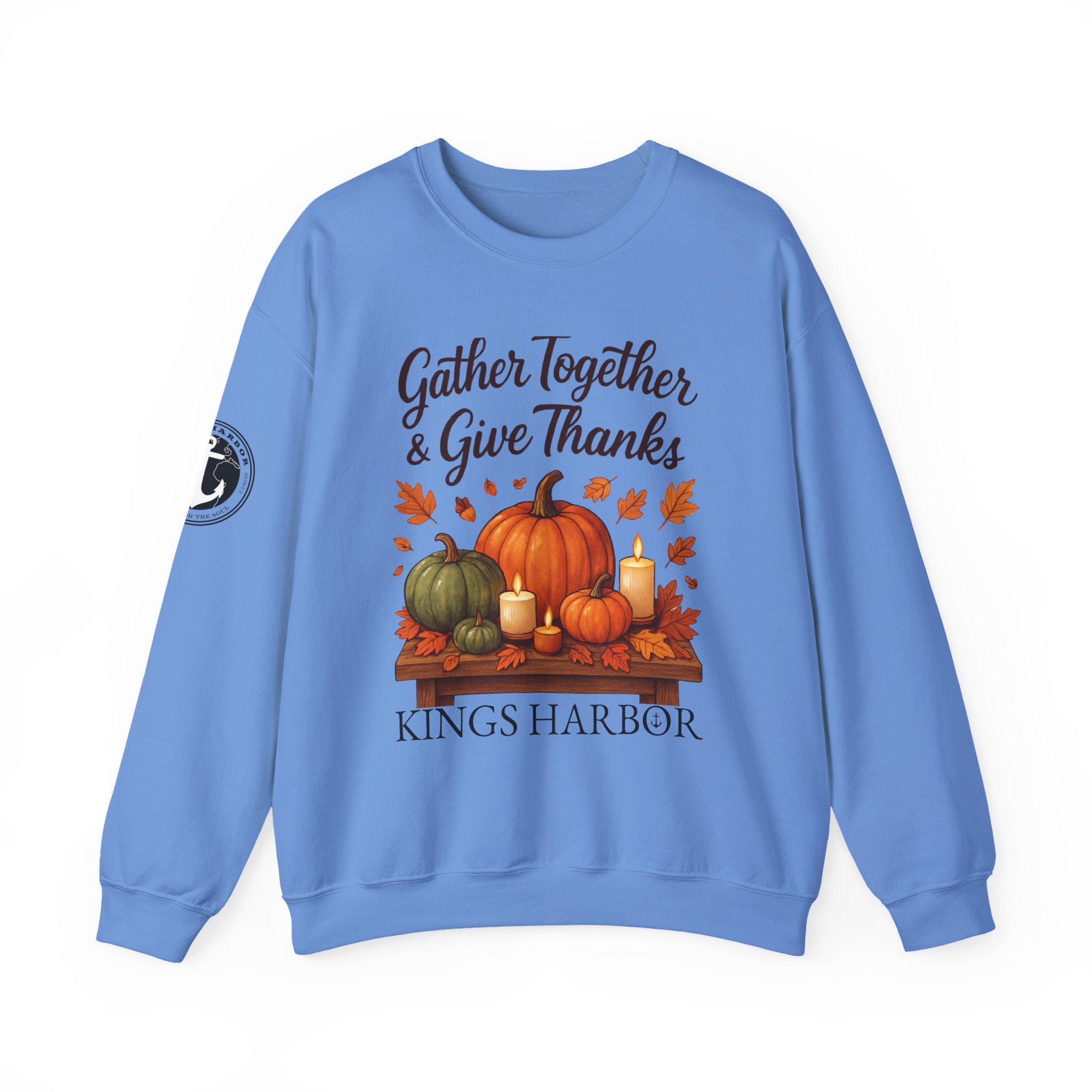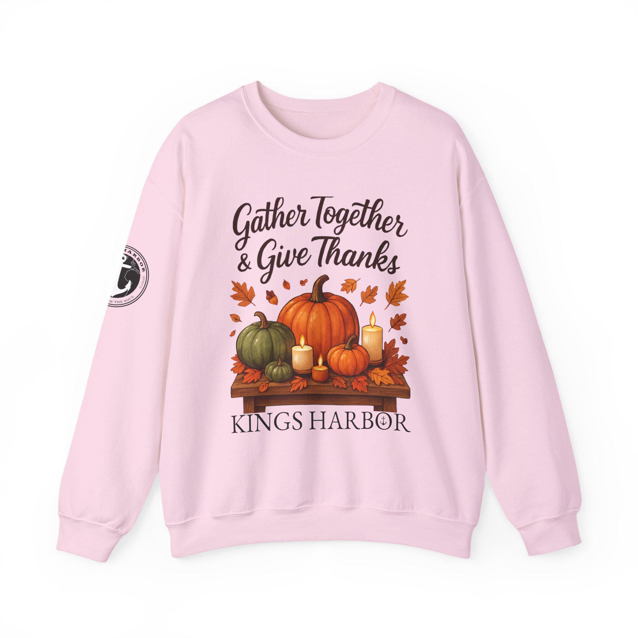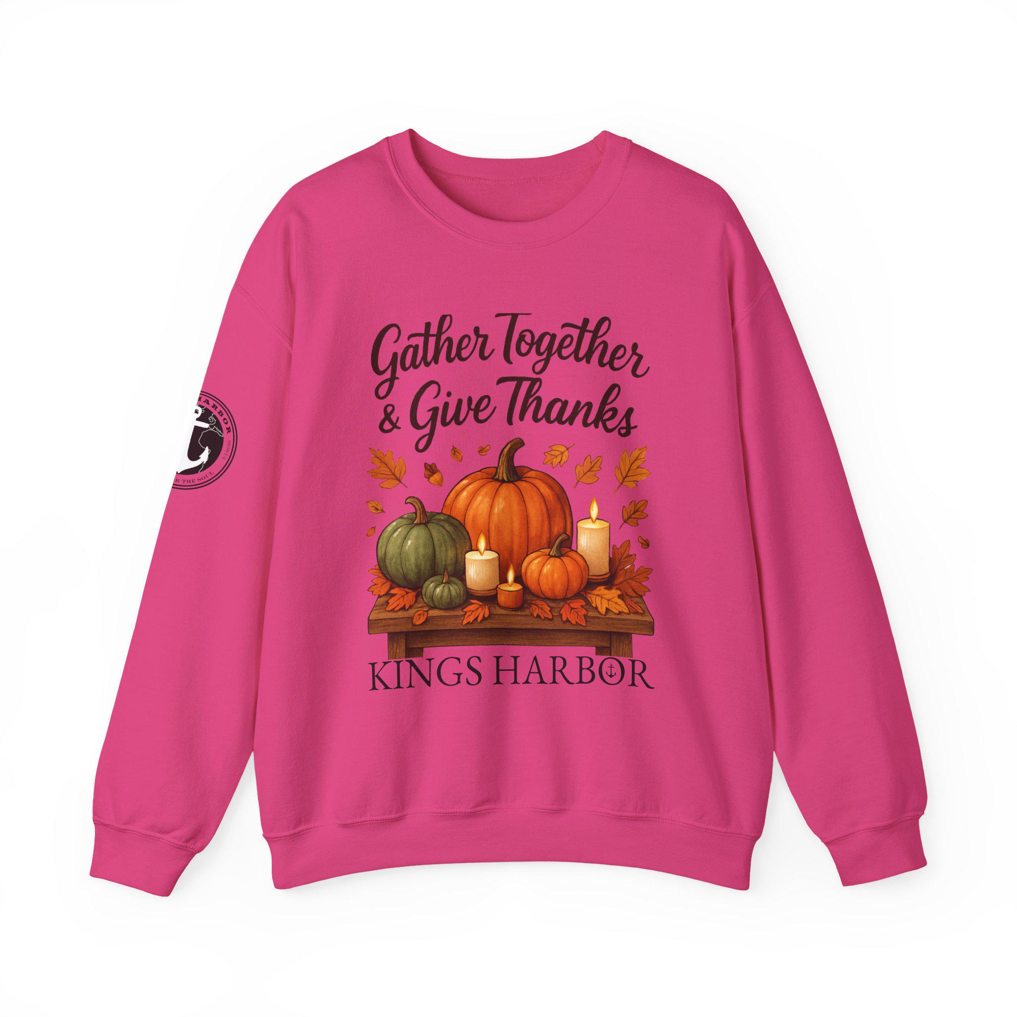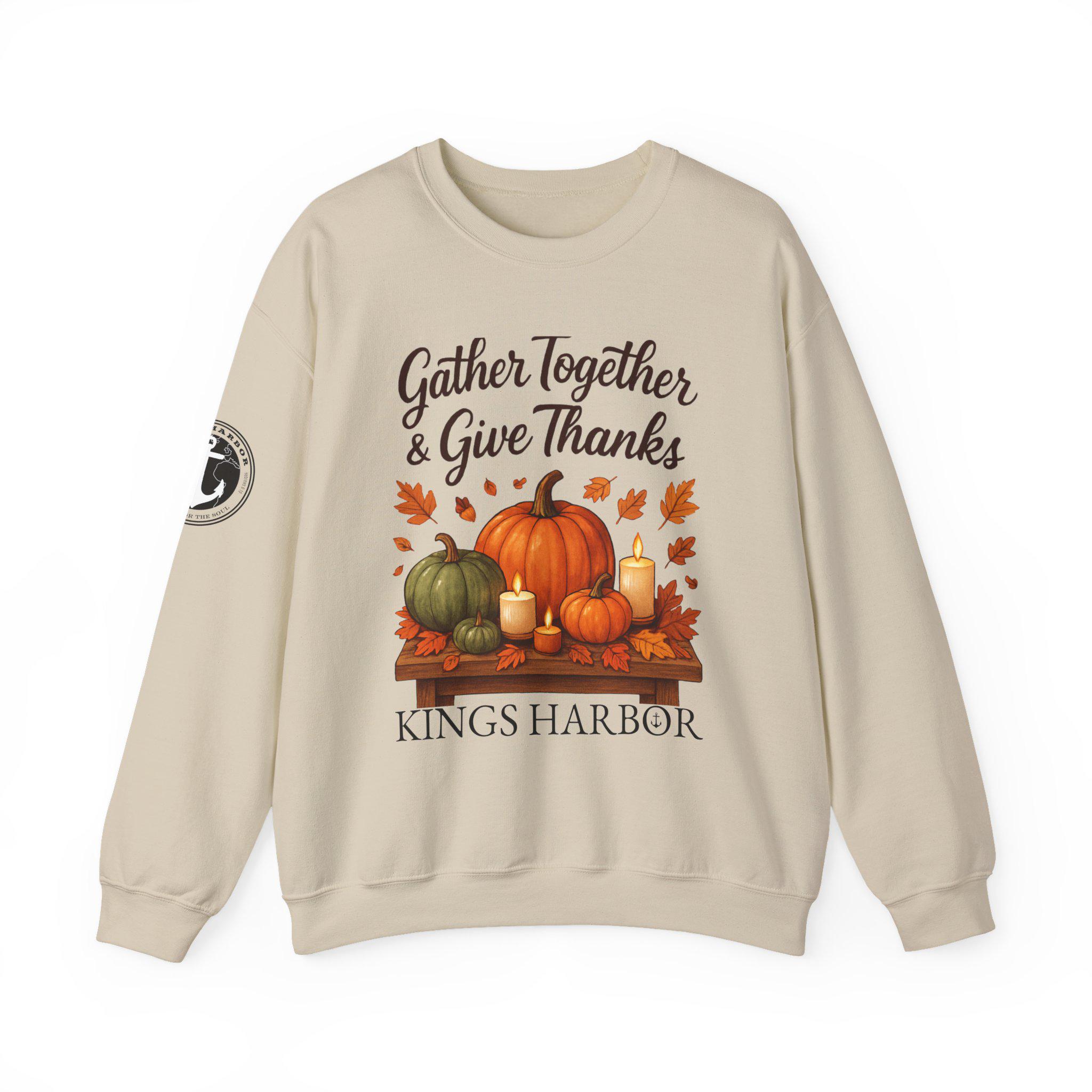 Get Together and Give Thanks is great for any fall festivity and Thanksgiving with friends and family. This cozy Unisex Heavy Blend™ Crewneck Sweatshirt provides comfort and durability, with a classic fit and clean-cut style. Perfect for adults looking for a comfortable and stylish option for fall gatherings and Thanksgiving celebrations.