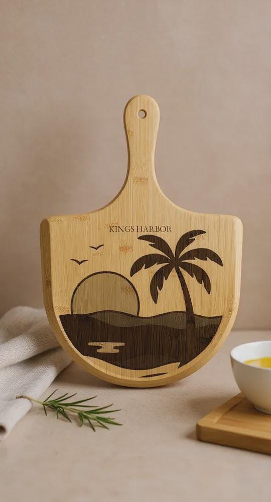 This Pizza Board with a Palm Sunset scene engraving is perfect for beach lovers and makes a great gift. It gives off a warm and tropical vibe, elevating your kitchen decor. Ideal for celebrations like housewarmings, birthdays, and summer parties.