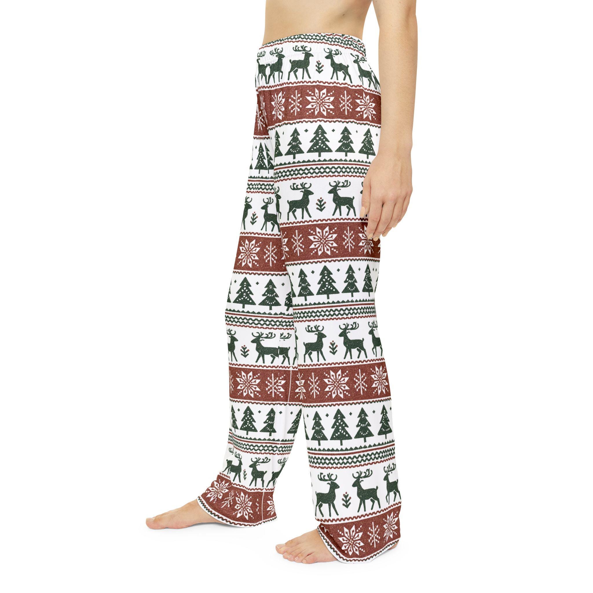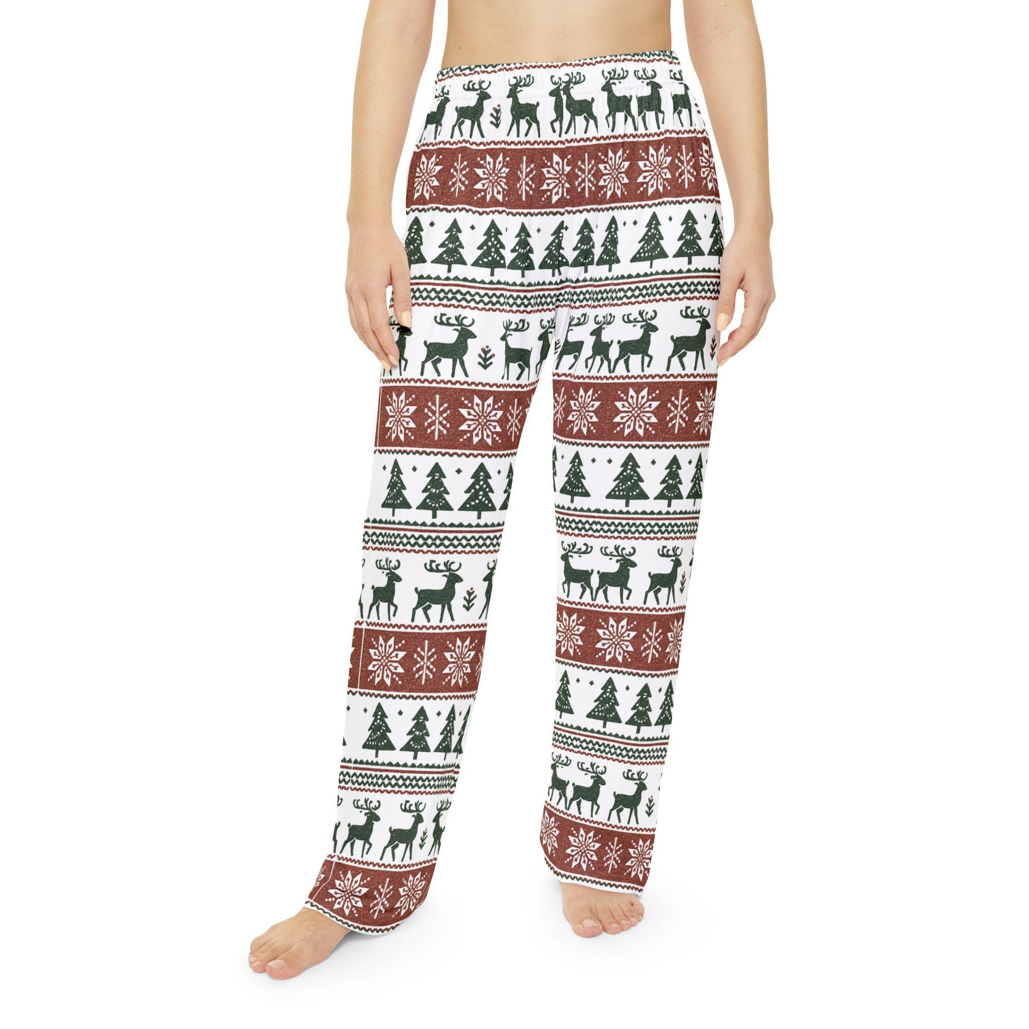 Embrace the cozy vibes with these Women's Pajama Pants, perfect for lounging at home or snuggling under a blanket during chilly nights. The festive design features playful reindeer and snowflakes, making them a charming addition to your holiday wardrobe. Crafted from 100% brushed polyester, these pants offer a soft, lightweight feel, making them ideal for comfort throughout the night. Whether you're sipping hot cocoa by the fire, attending holiday gatherings, or simply enjoying a movie marathon, these pajama pants are perfect for anyone looking to relax in style. Ideal for winter holidays, cozy nights, and family celebrations, they cater to those who cherish comfort and festive flair in their loungewear.