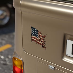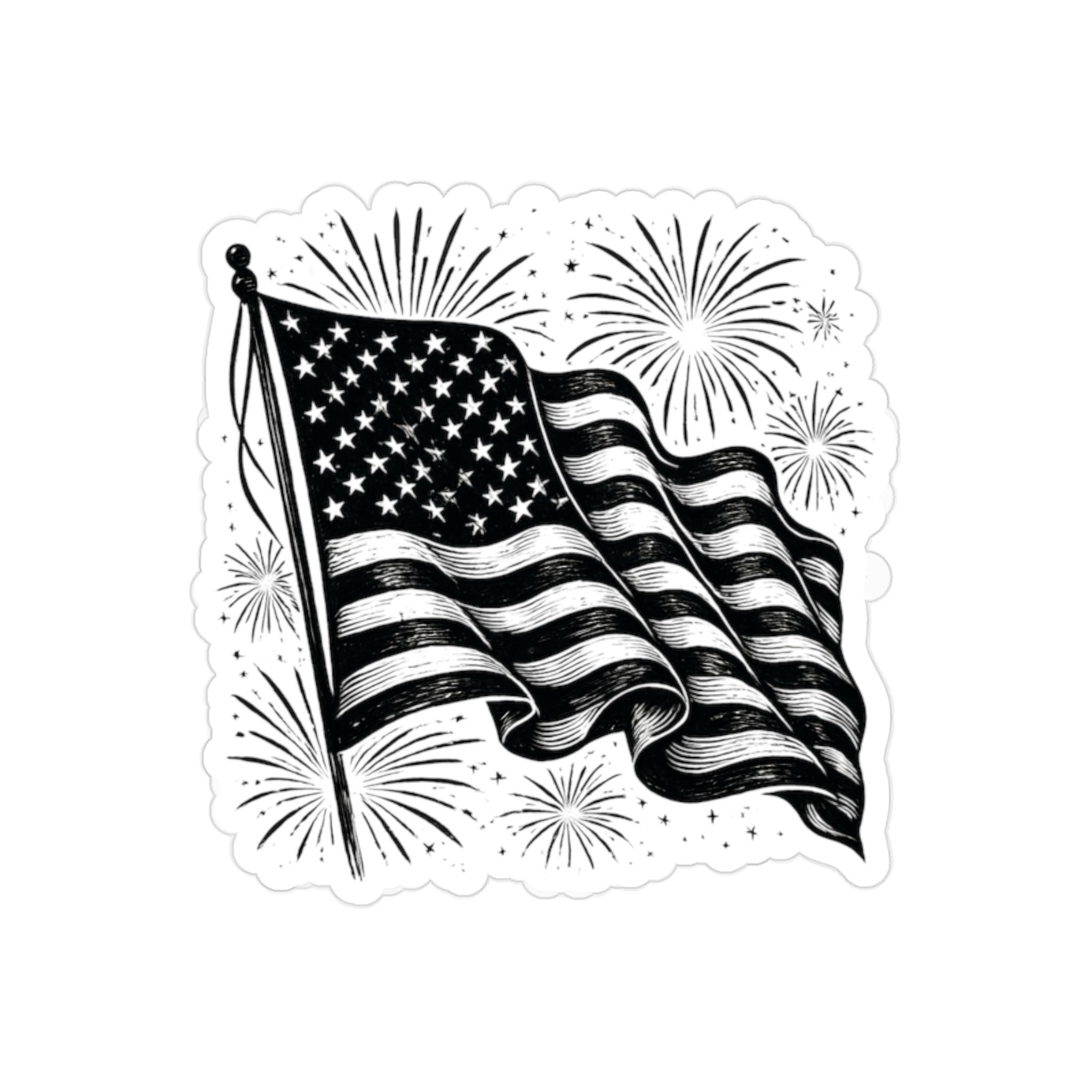 A patriotic Stickers featuring a flowing American flag with fireworks, perfect for showing your American pride. Suitable for outdoor use, these stickers are made to last over 5 years in all weather conditions. Ideal for those who love the USA and want to add a touch of patriotism to their belongings. Relevant for Fourth of July, Memorial Day, Veterans Day, and everyday American spirit.