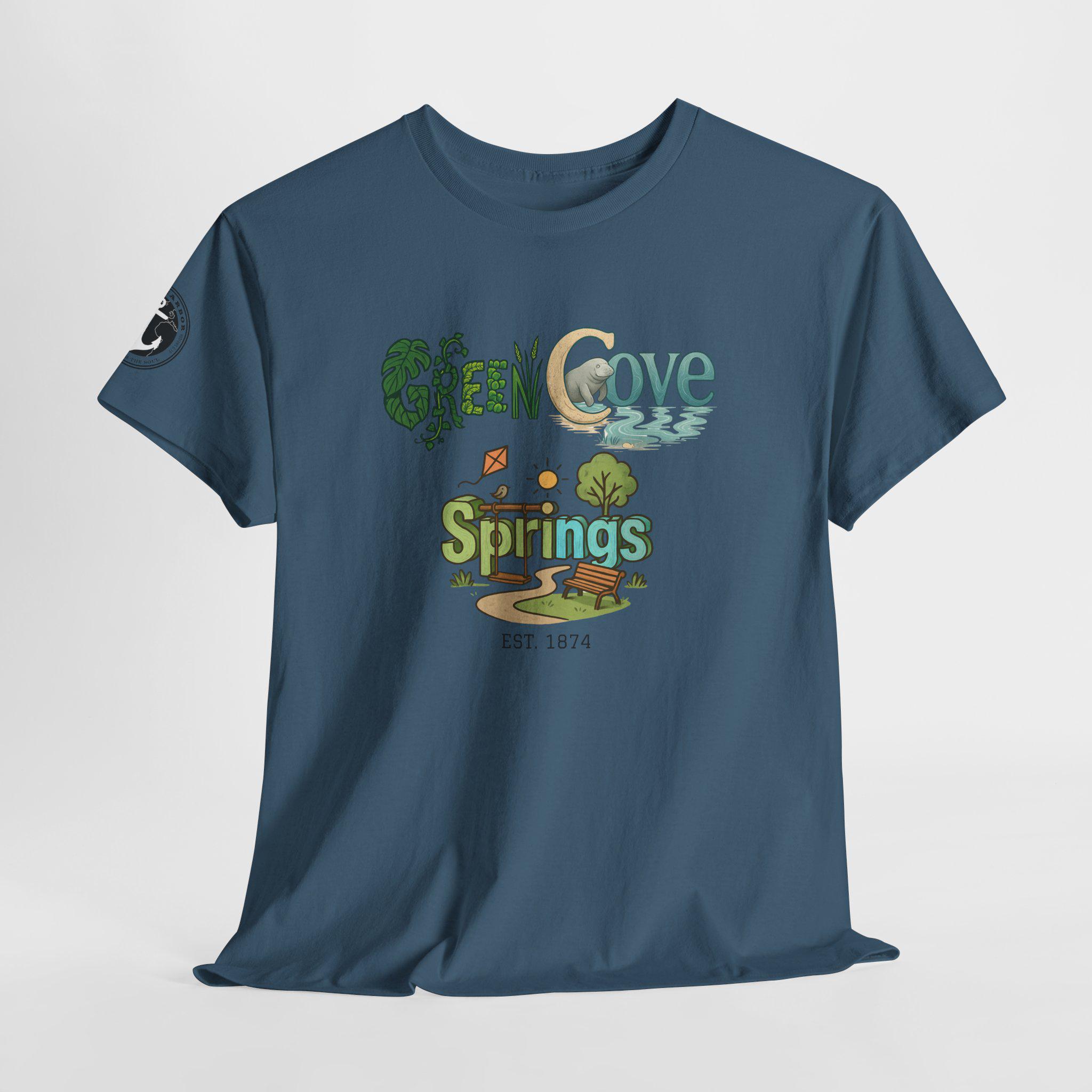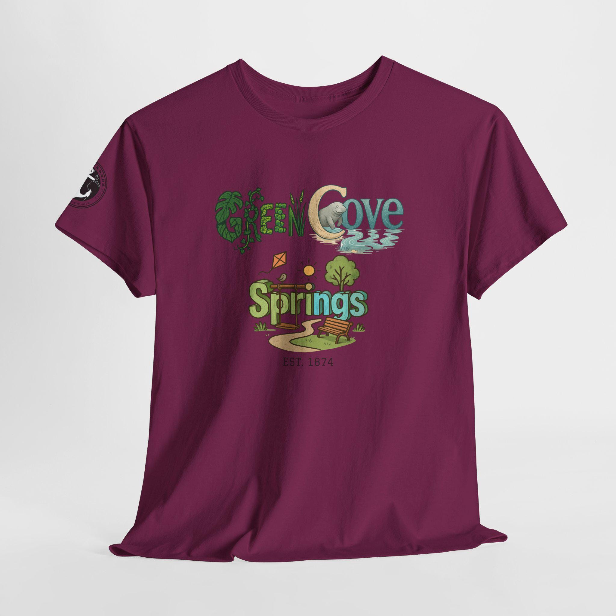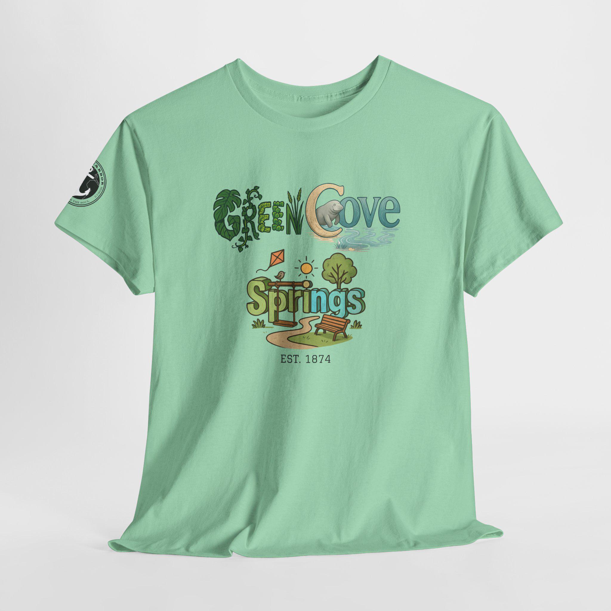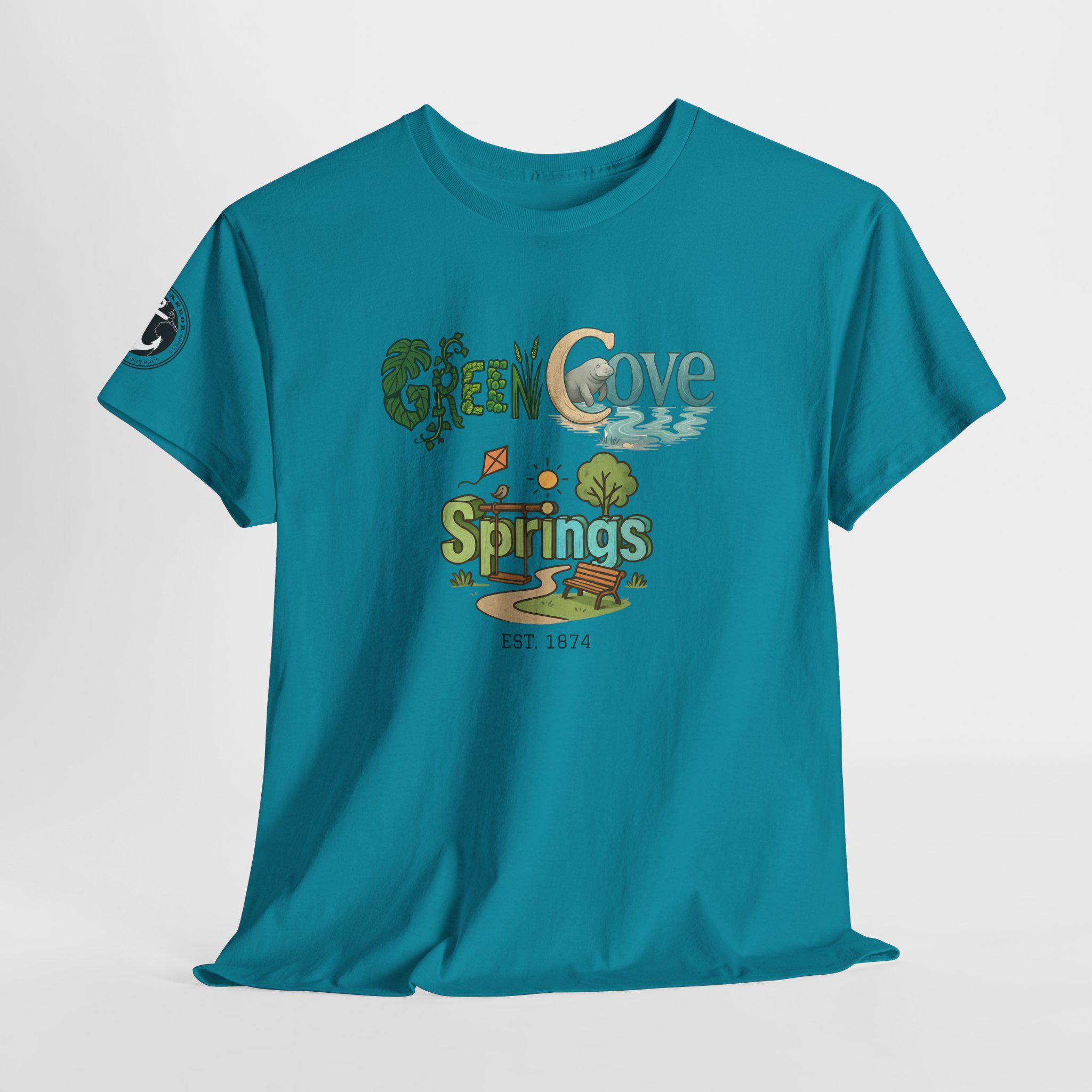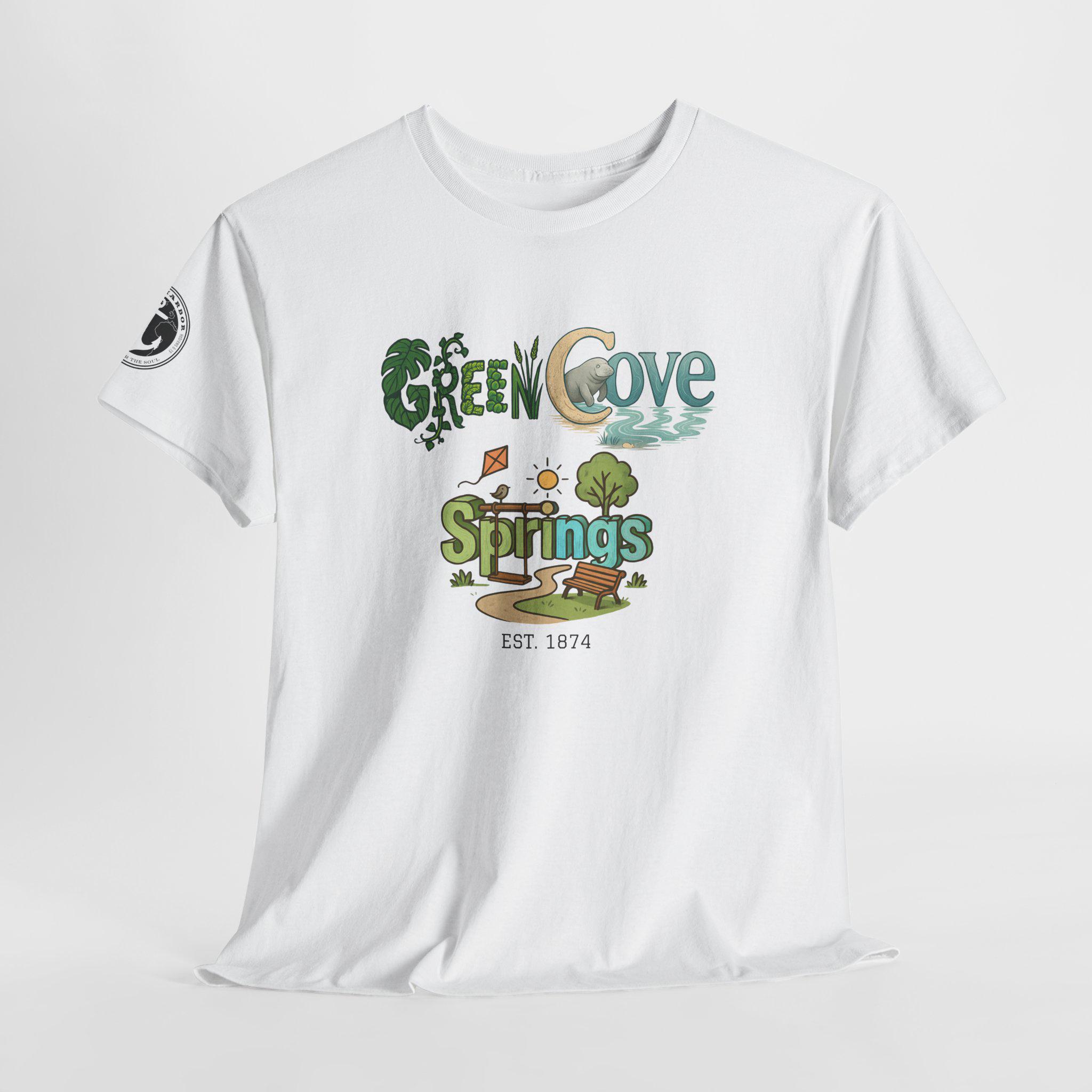 Soft, breathable, and built to last — this classic crew tee carries a cozy, outdoorsy vibe. A sunlit graphic reads “Green Cove Springs” in warm greens and sandy tones, with tiny icons of a tree, a winding path, and a river that whisper of lazy days by the water. The cut is relaxed and familiar: roomy shoulders, a ribbed collar that holds shape, and a tear-away label for itch-free wear. It layers easily under a flannel or pairs with board shorts for a weekend exploring parks, riversides, and small-town trails. Subtle sleeve printing adds a nod of authenticity without shouting for attention.