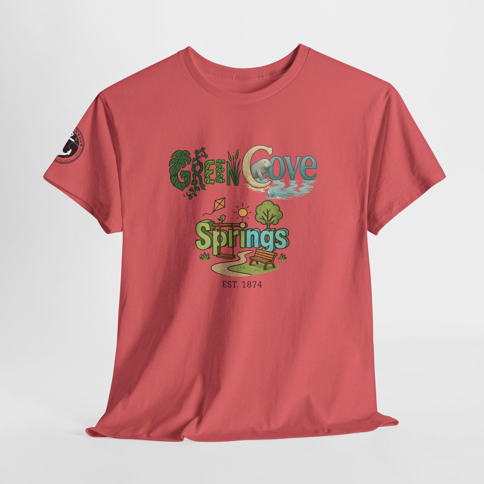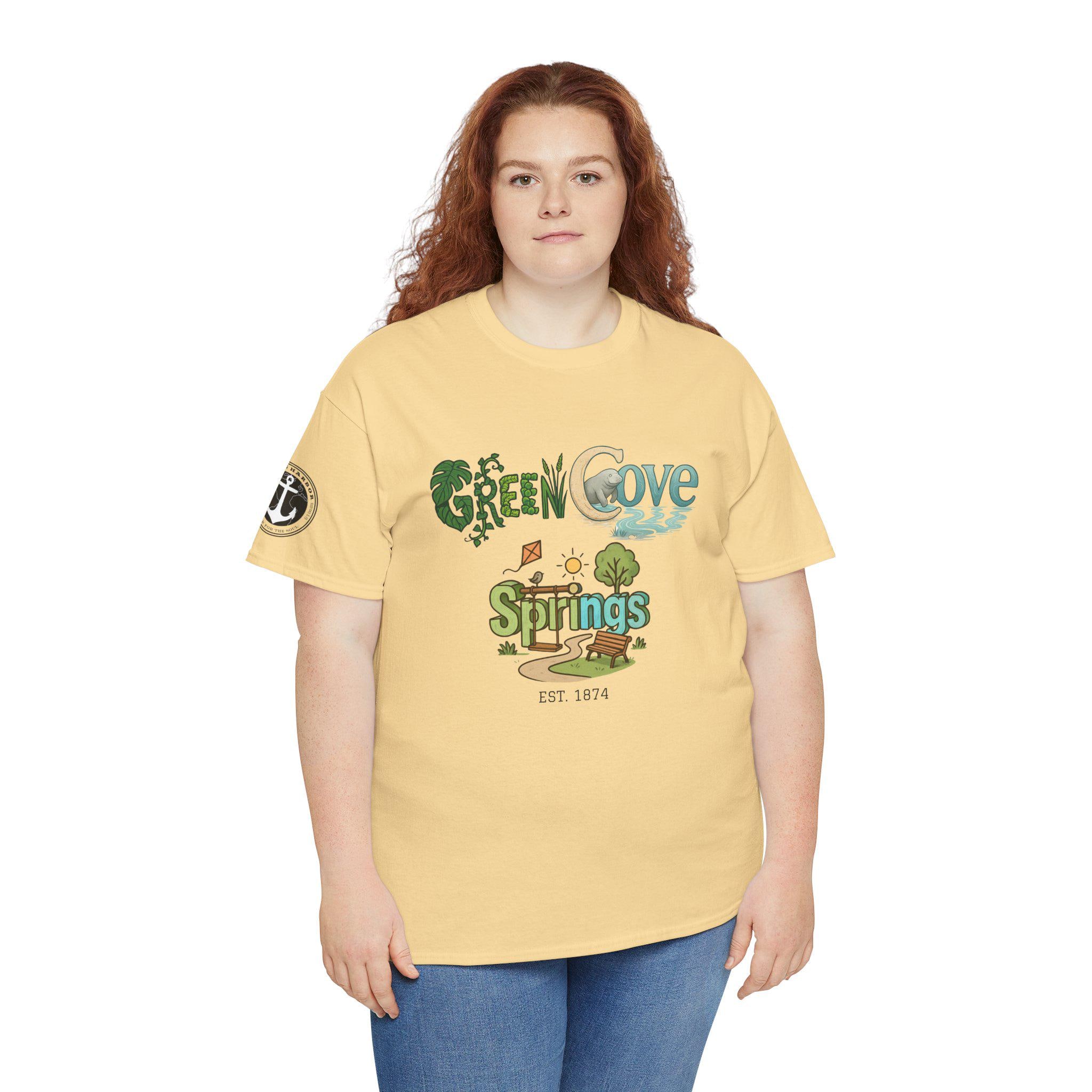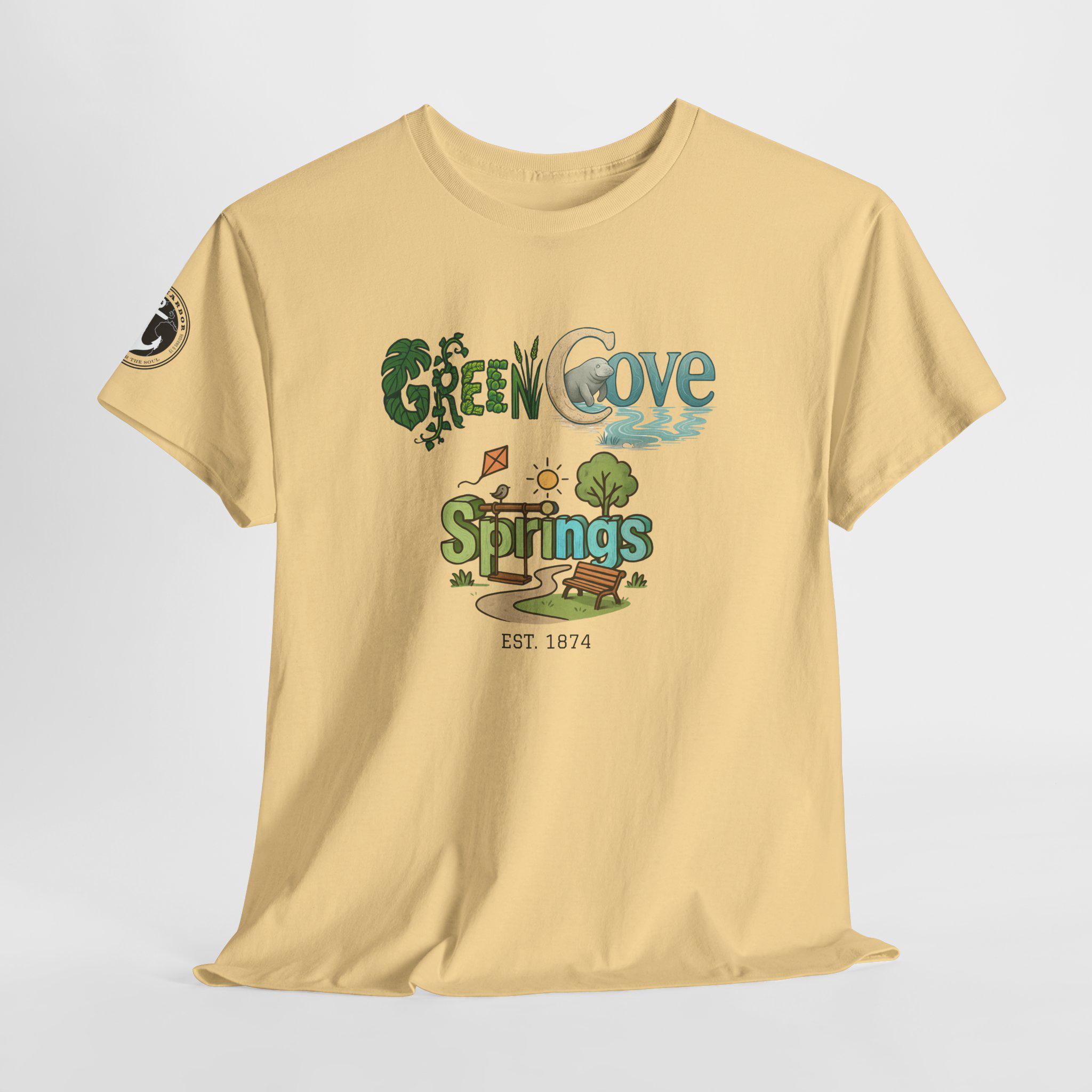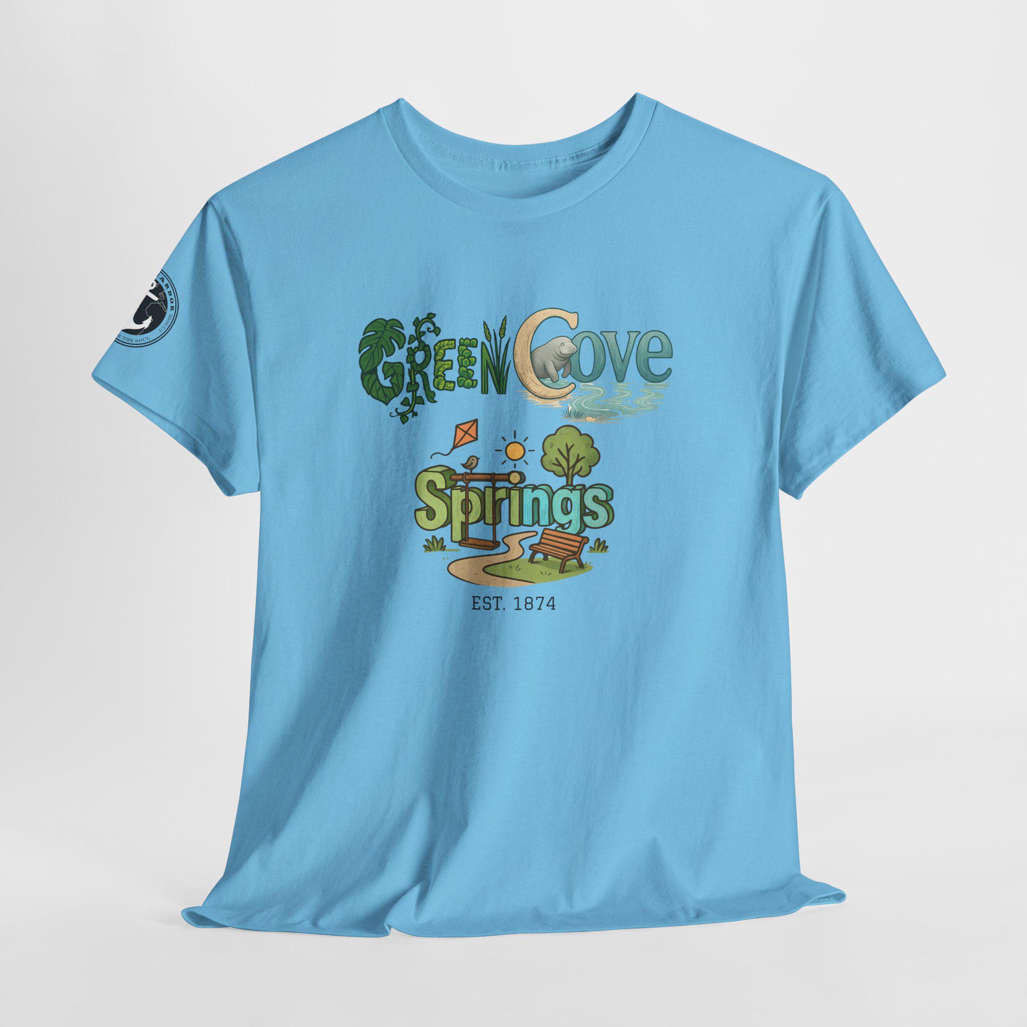 Soft, breathable, and built to last — this classic crew tee carries a cozy, outdoorsy vibe. A sunlit graphic reads “Green Cove Springs” in warm greens and sandy tones, with tiny icons of a tree, a winding path, and a river that whisper of lazy days by the water. The cut is relaxed and familiar: roomy shoulders, a ribbed collar that holds shape, and a tear-away label for itch-free wear. It layers easily under a flannel or pairs with board shorts for a weekend exploring parks, riversides, and small-town trails. Subtle sleeve printing adds a nod of authenticity without shouting for attention.
