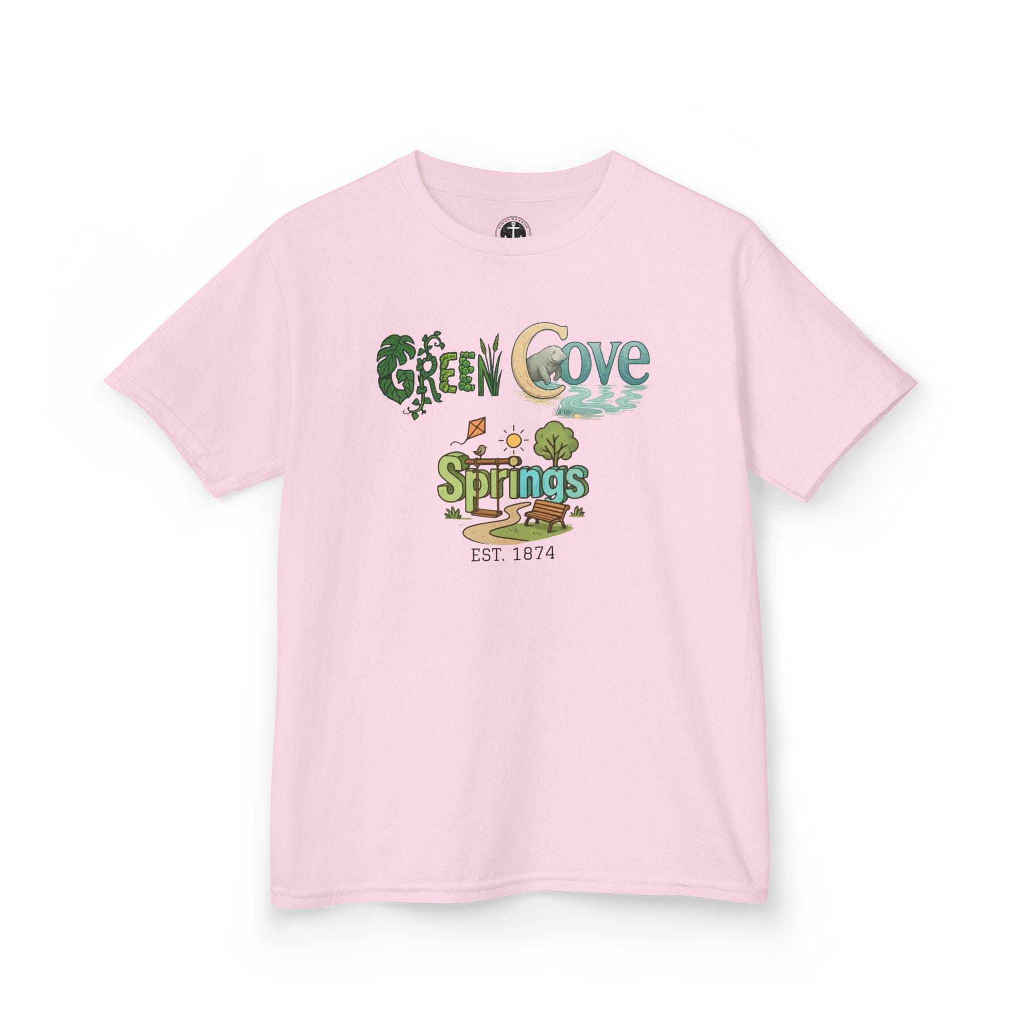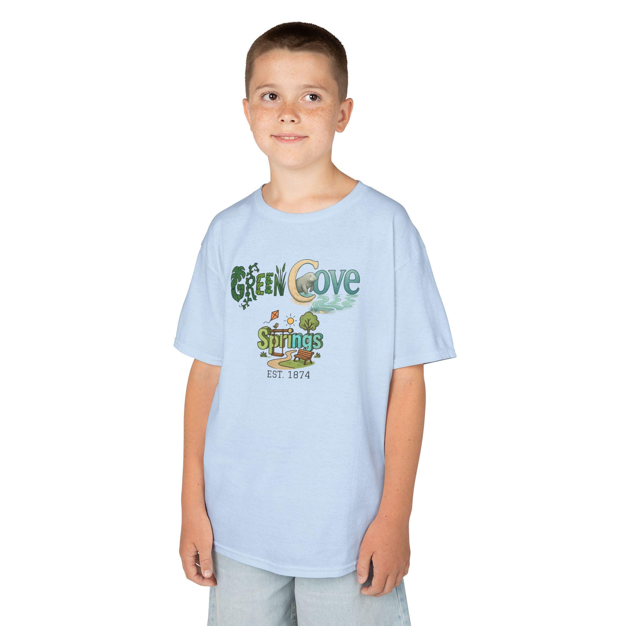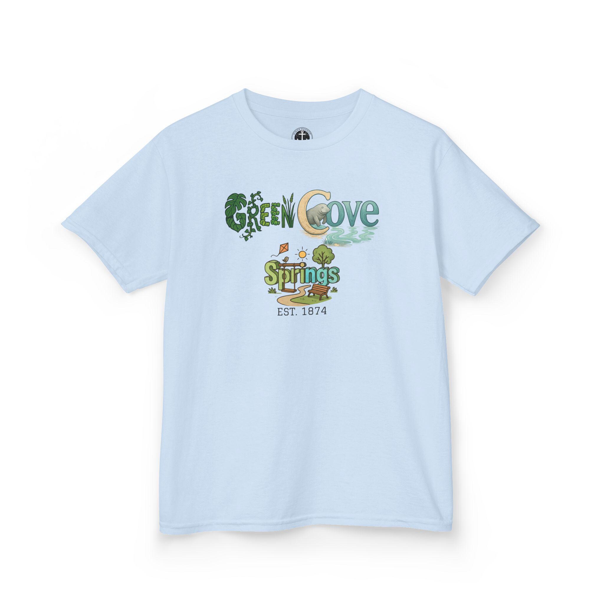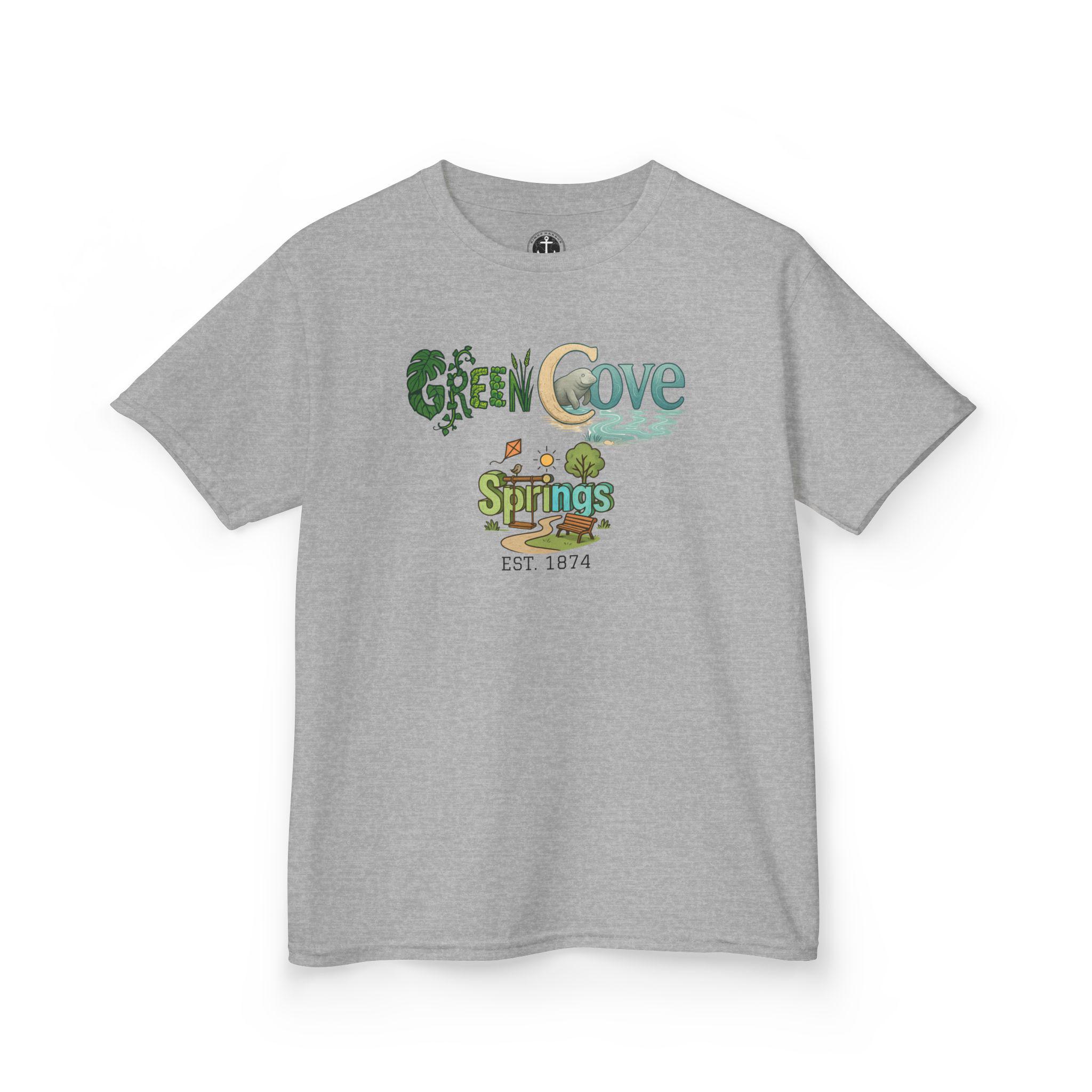 Celebrate the city of Green Cove Springs with this Kids Tee featuring artistic words and iconic images of Springs Park and Manatees. Perfect for young nature enthusiasts and locals, this tee is a great addition to a child's wardrobe for casual wear or as a souvenir during a visit to Green Cove Springs. Ideal for birthdays, vacations, and everyday wear.