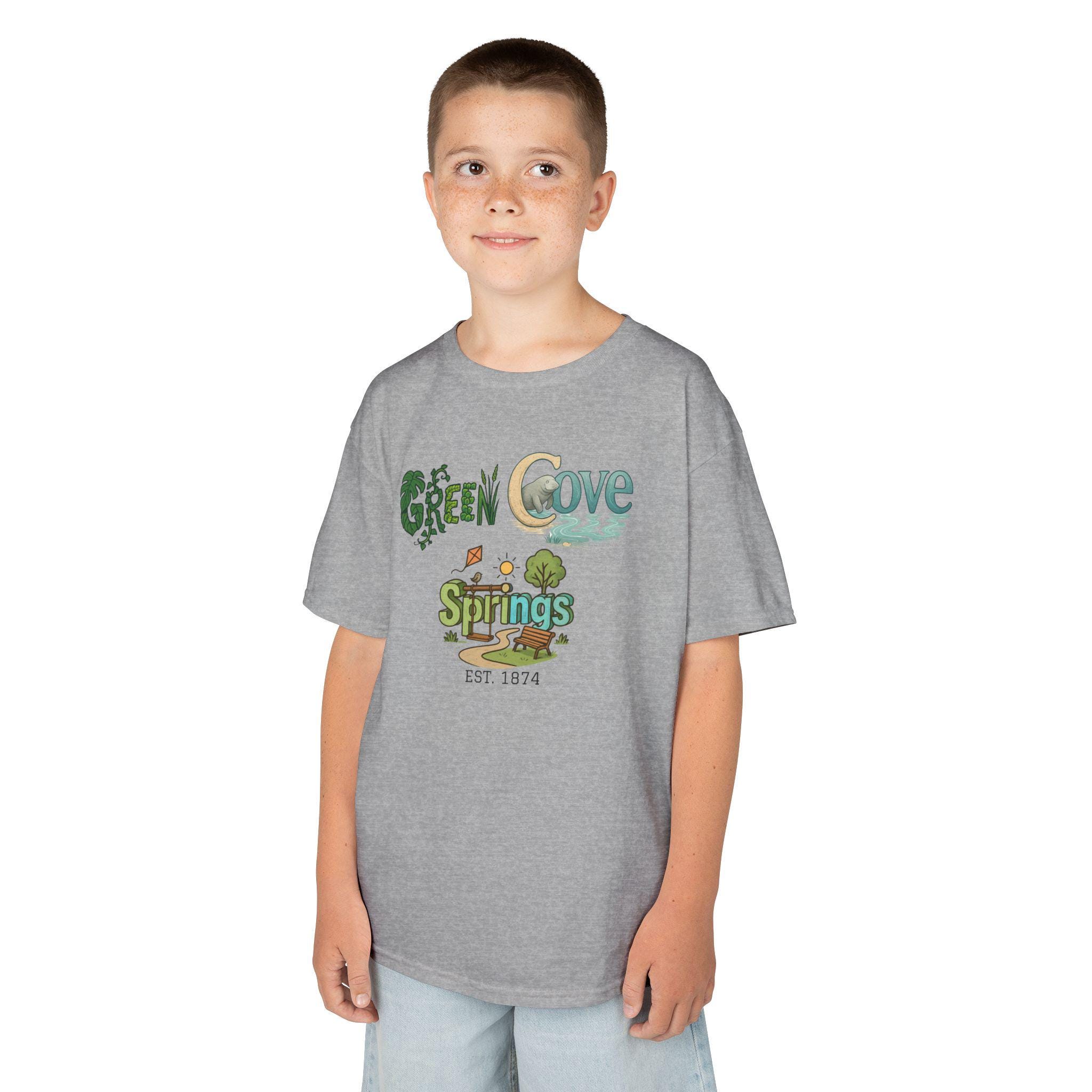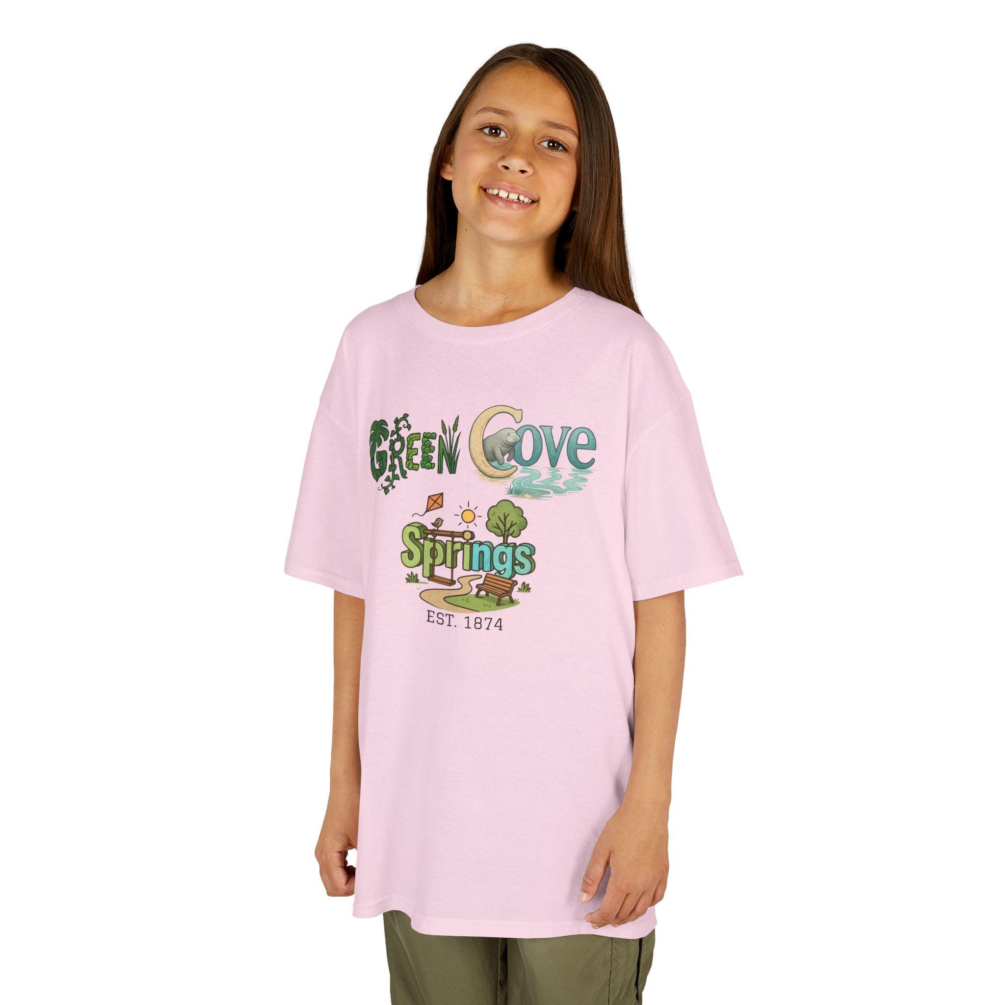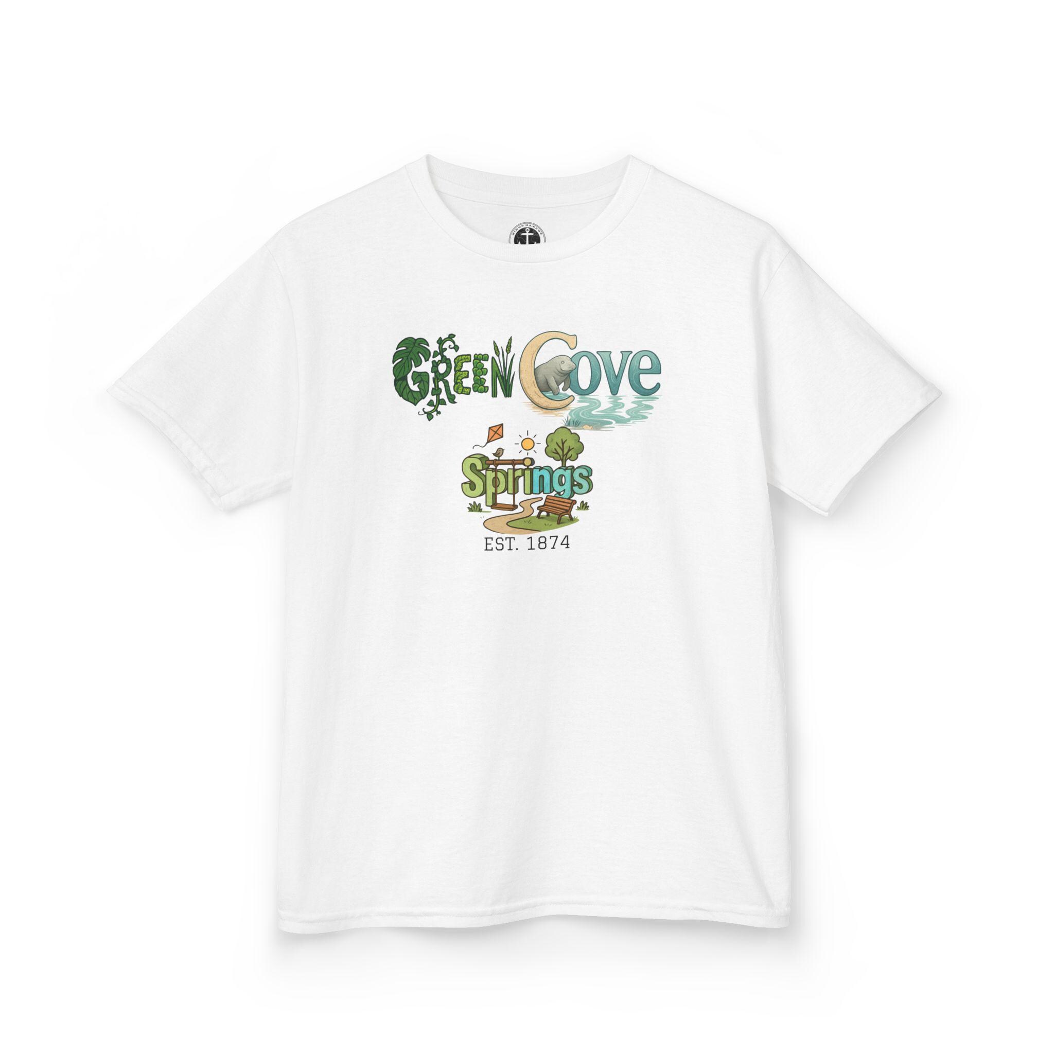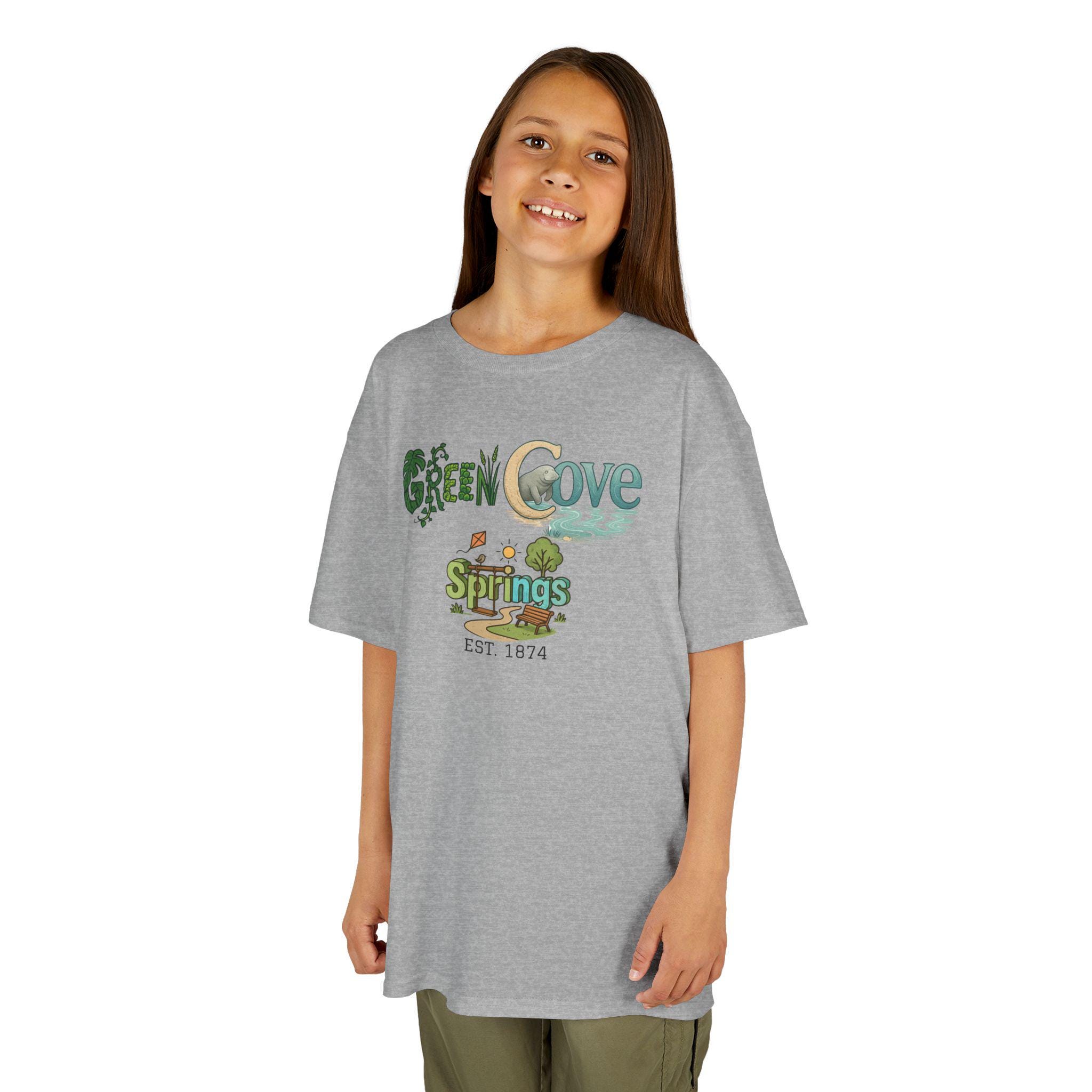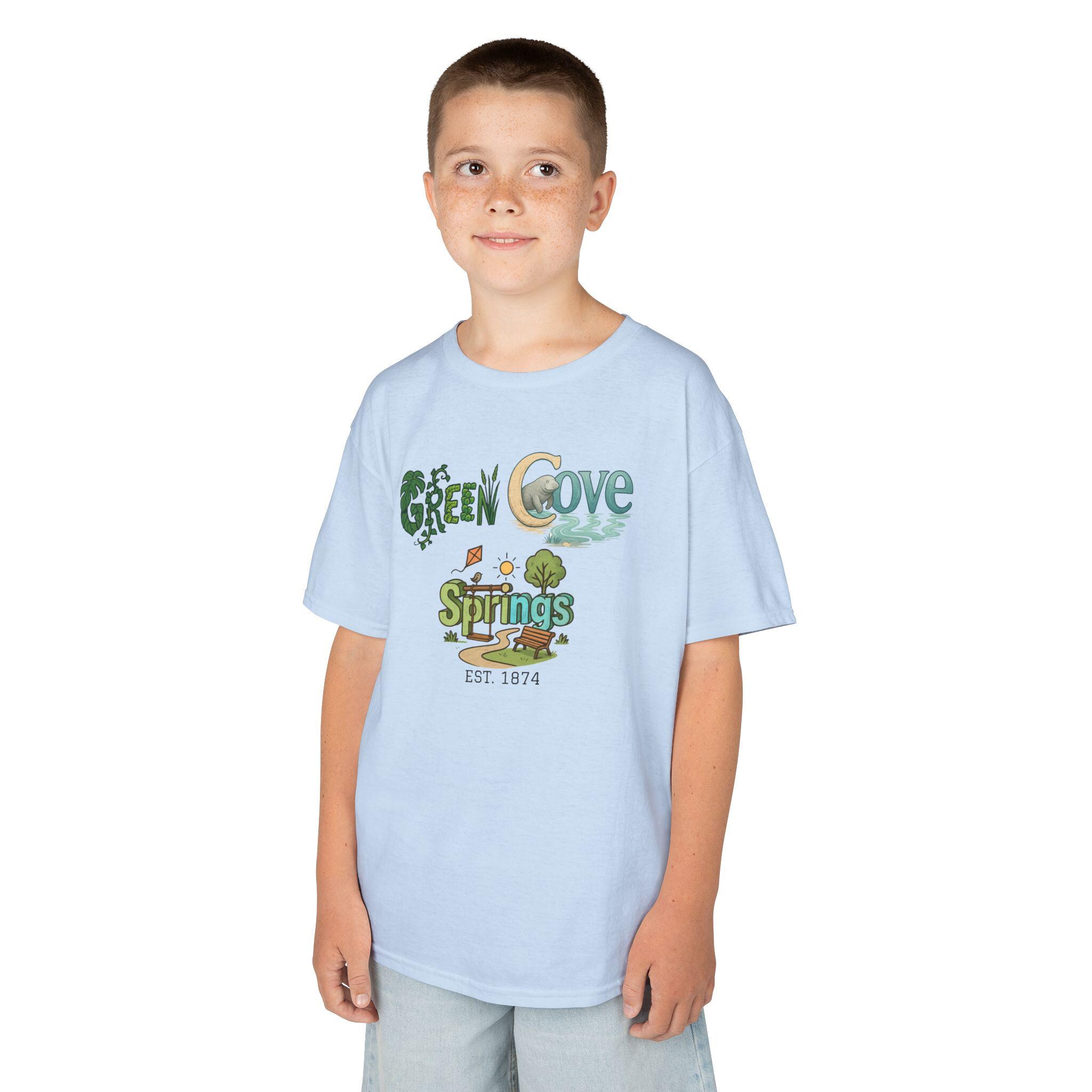 Celebrate the city of Green Cove Springs with this Kids Tee featuring artistic words and iconic images of Springs Park and Manatees. Perfect for young nature enthusiasts and locals, this tee is a great addition to a child's wardrobe for casual wear or as a souvenir during a visit to Green Cove Springs. Ideal for birthdays, vacations, and everyday wear.