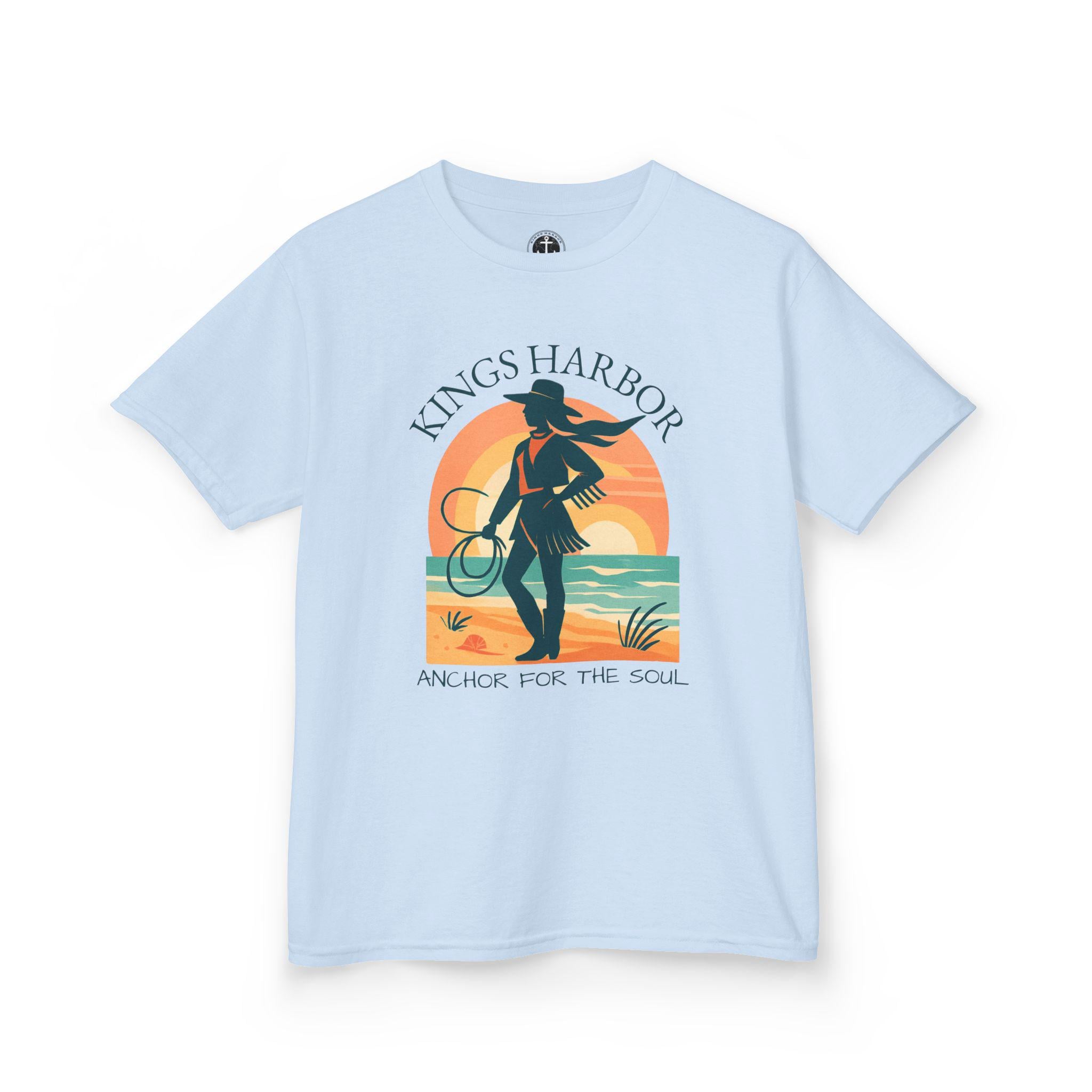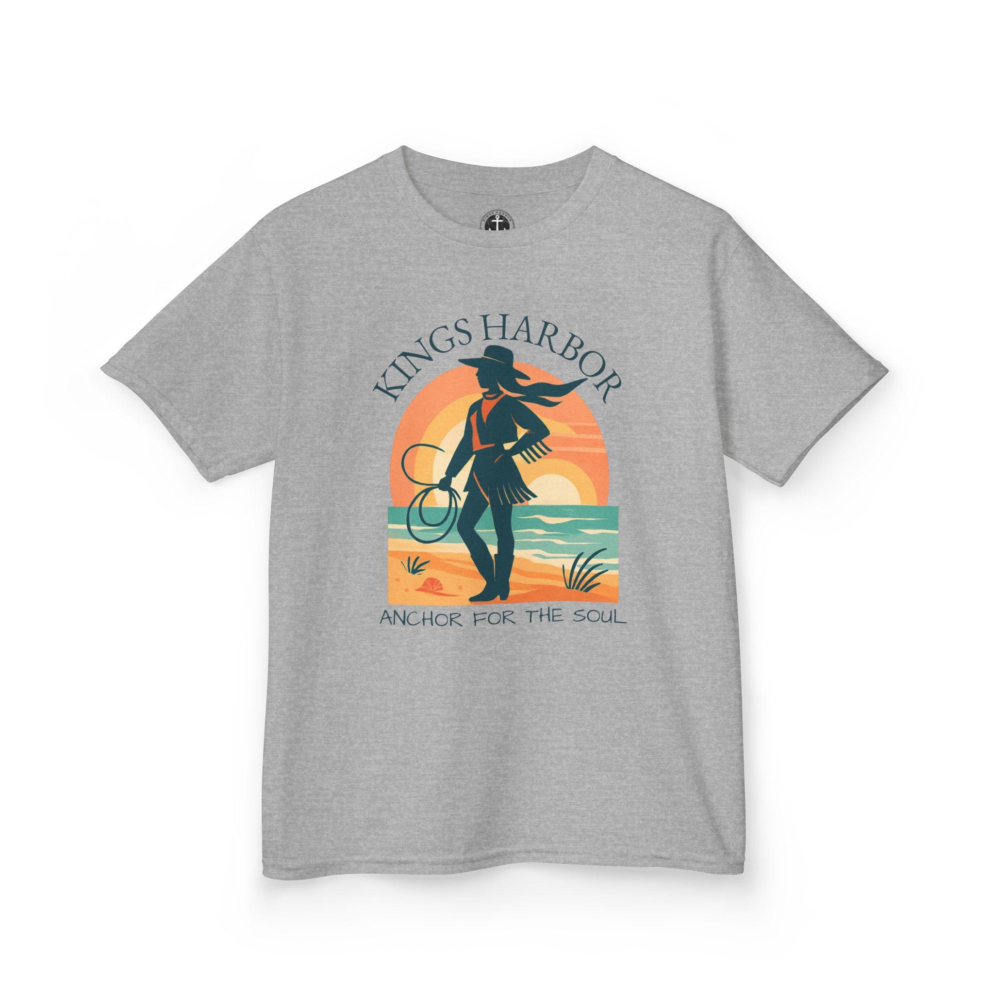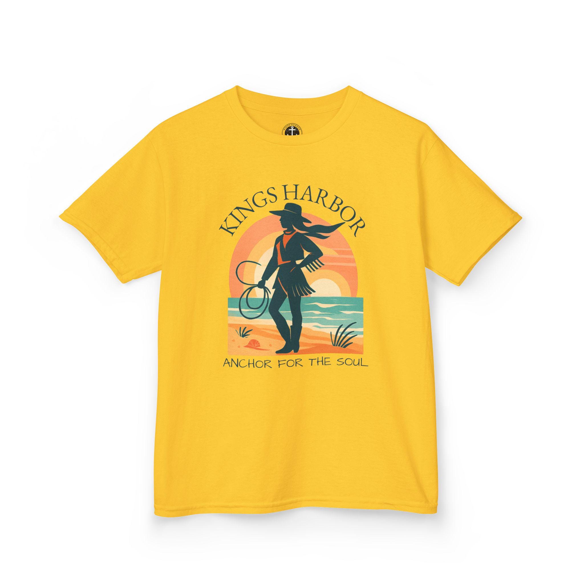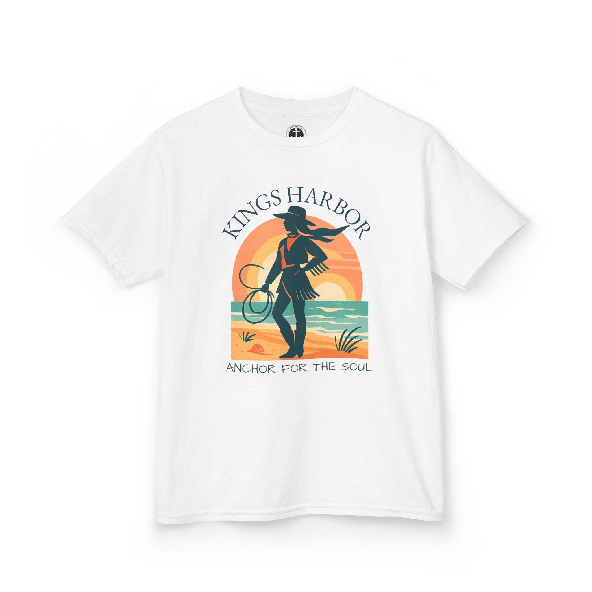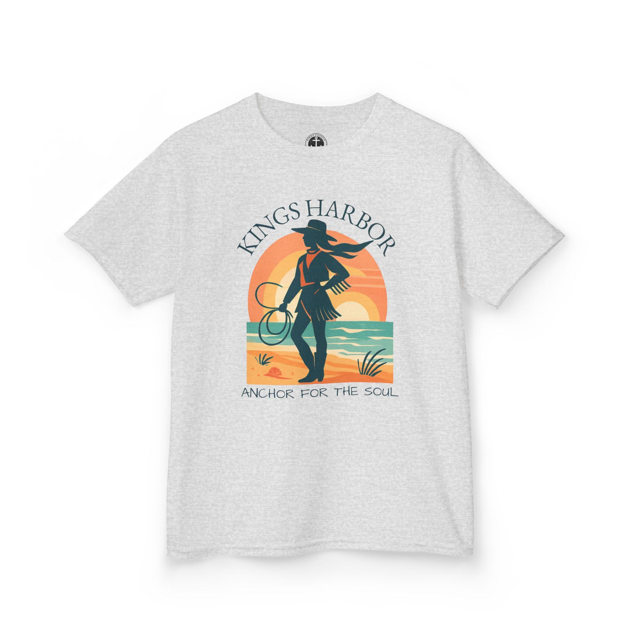 Embrace a coastal cowgirl vibe with this kids tee, perfect for little ones who love western wear. Ideal for daily wear, this comfortable tee is made from 100% soft cotton and features a classic fit with a crew neckline. Suitable for children with age restrictions, this tee is ethically made with US cotton and comes with tear-away labels for added comfort.