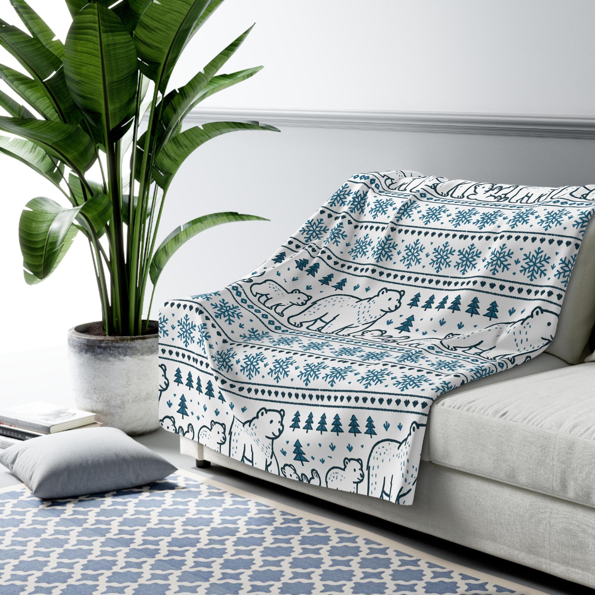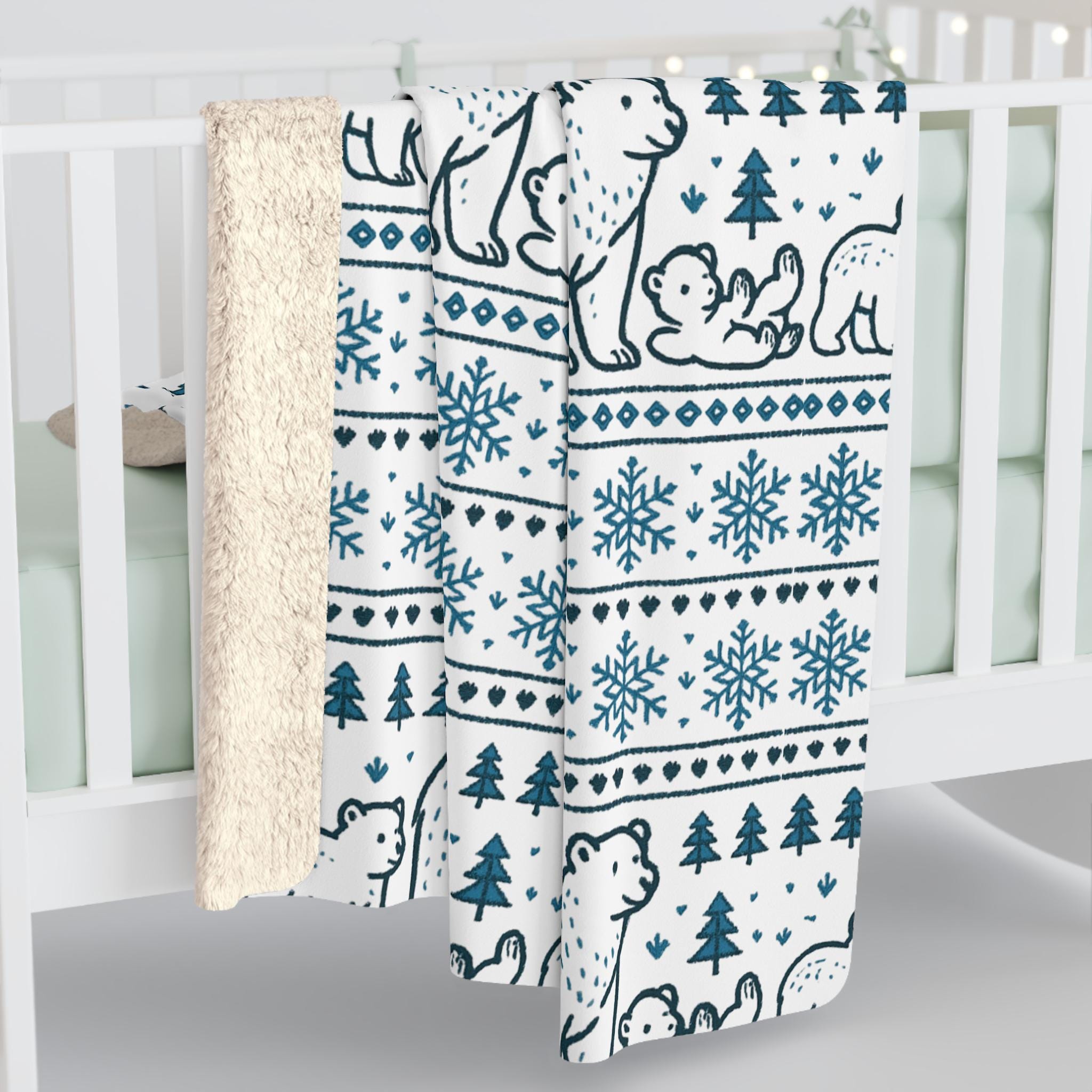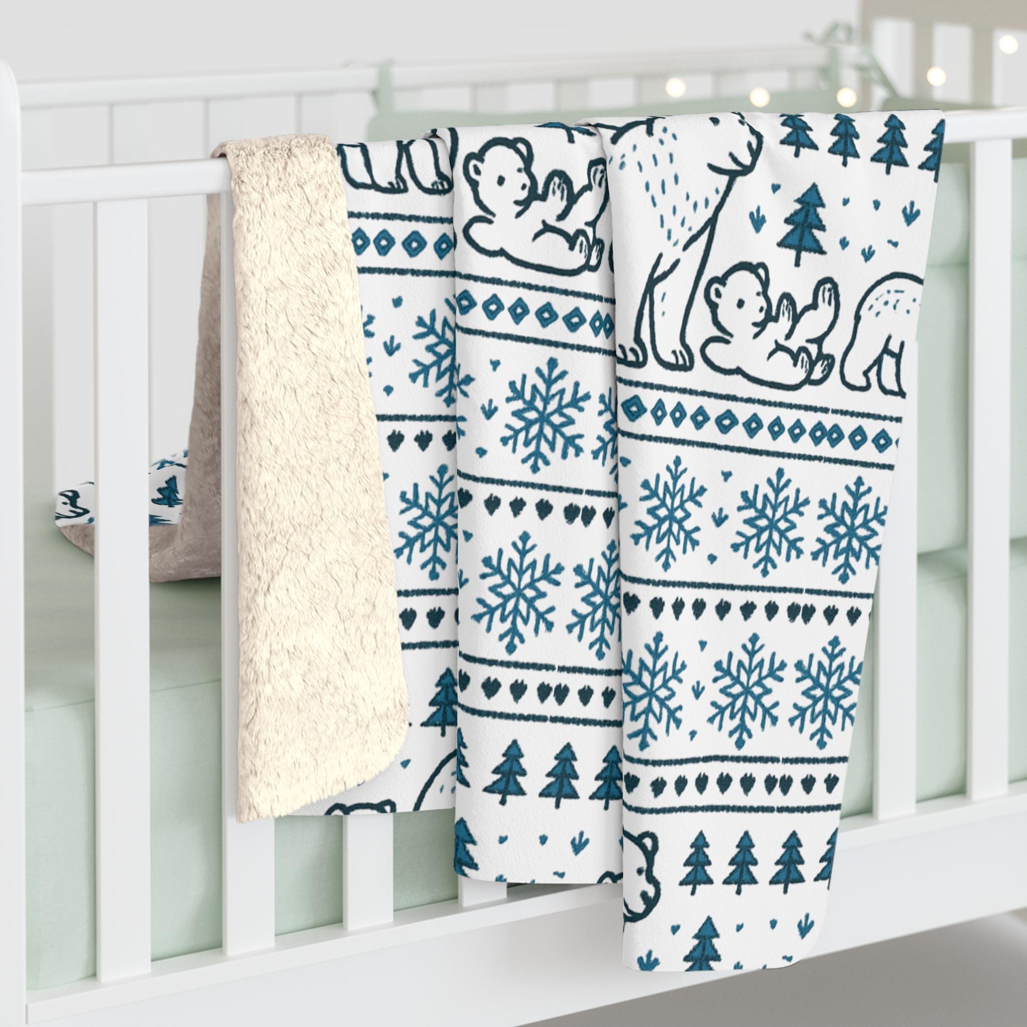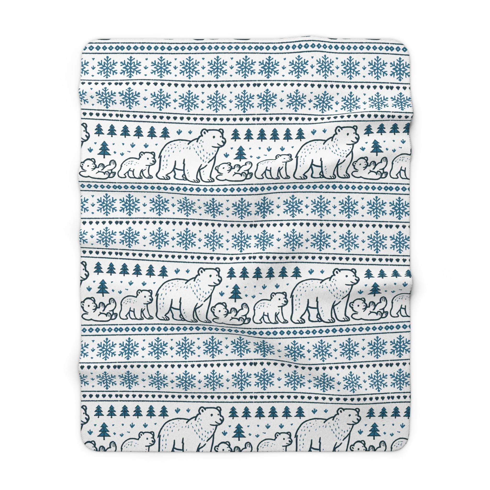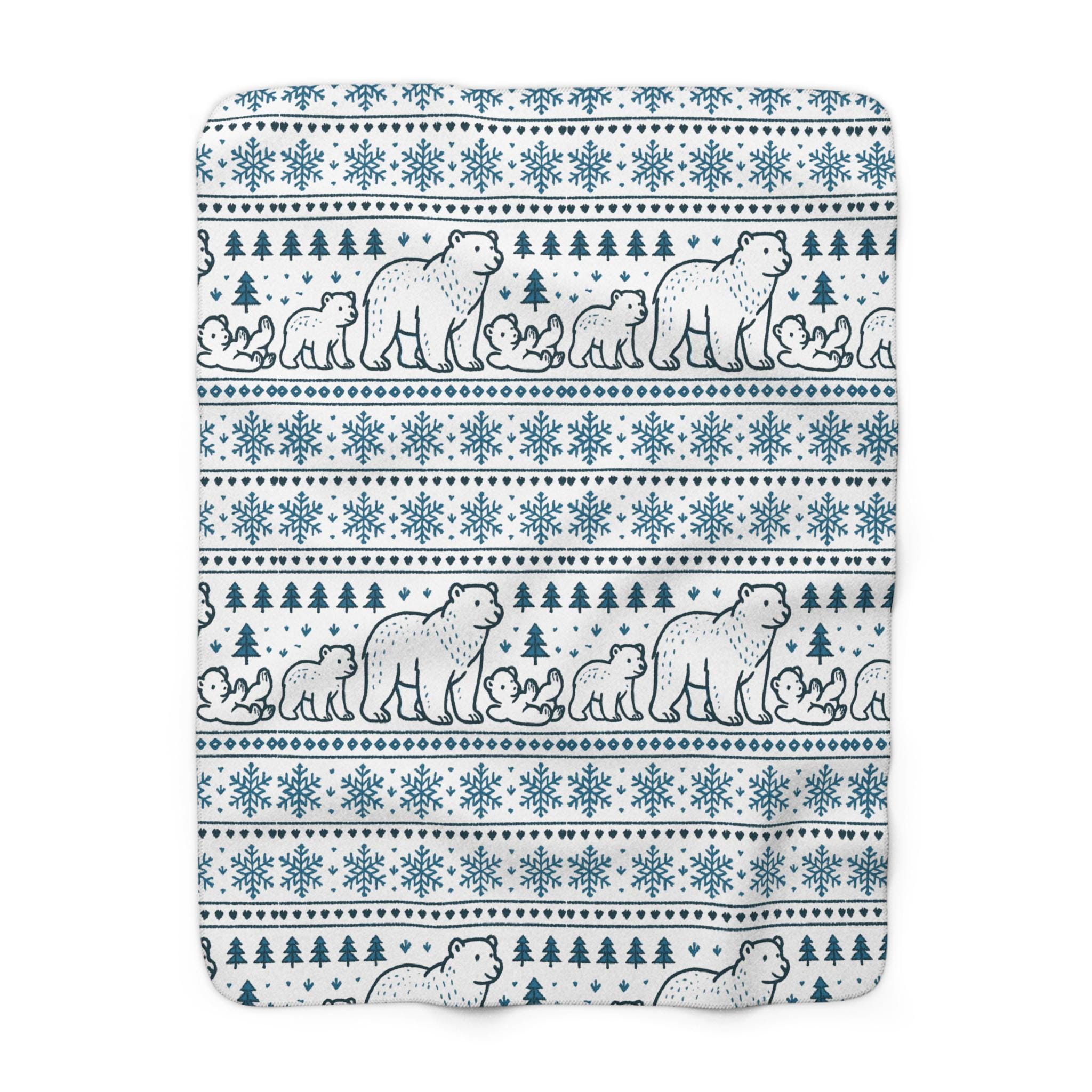 Wrap yourself in a quiet winter evening with this sherpa fleece blanket. Playful polar bear and cub silhouettes drift across the surface, bringing a touch of Arctic calm to your living room or reading nook. The plush sherpa backside cushions your shoulders while the velvety face carries the whimsical pattern — a cozy companion for slow mornings, movie nights, or bundled-up porch sittings. Lightweight yet insulating, it layers easily over couches or at the foot of a bed, inviting lingering warmth without weight. Designed for grown-up use, it blends practical durability with soft, tactile comfort so you can reach for it whenever the air turns crisp.