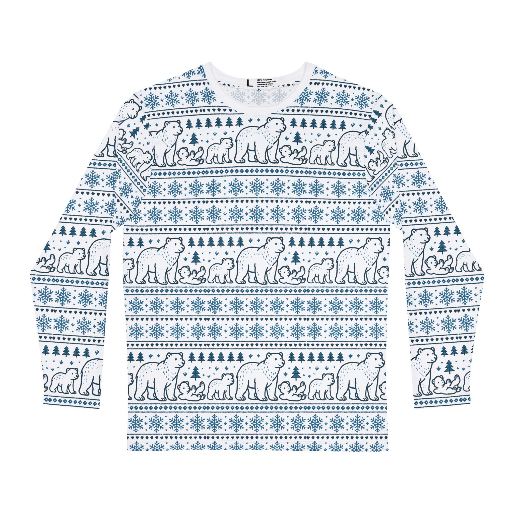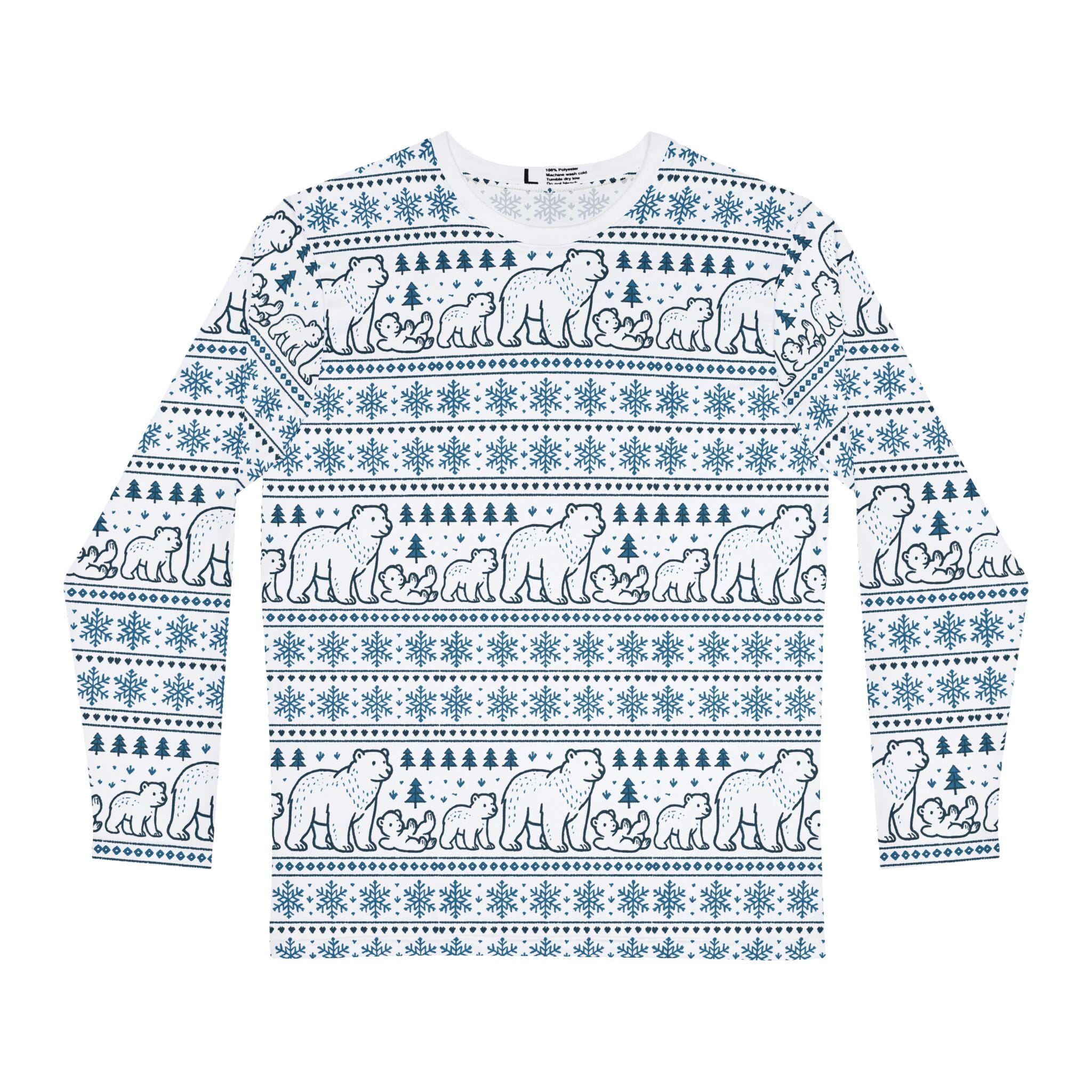 Wrap yourself in quiet Arctic nights with this long-sleeve shirt featuring a tender Polar Bear and cubs winter pattern. Softly detailed polar bears seem to nuzzle across the fabric, bringing a sense of slow, snowy walks and warm layers. Lightweight and breathable, the shirt layers easily under a coat or stands alone on a crisp day. It’s made to move with you — whether you’re out tracking footprints in fresh snow, curled up with cocoa by the window, or sharing a winter hike with friends. The pattern reads like a story: family, resilience, and the hush of a polar evening. Subtle seam colors and a printed care label keep the look clean and comfortable, while durable double-needle stitching holds up to repeated wear and washing. Comfortable, enduring, and quietly expressive — this long-sleeve finds its place in cold-weather routines and thoughtful wardrobes.