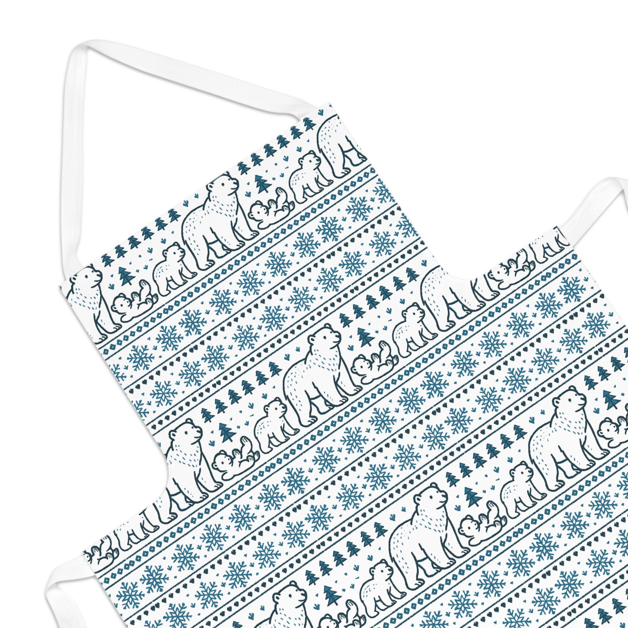 This lightweight adult apron brings a quiet, wintry hush to your kitchen. Soft cotton with a polyester sublimation coating carries a delicate polar bear and cubs pattern that feels both homey and gently nostalgic. Wear it while kneading dough, layering spices, or wrapping gifts; the scene on the fabric invites slow breaths and warm memories of snowy mornings. The tie-back closure and one-size design make it easy to slip on and adjust, and the reinforced overlocked seams stand up to frequent use without losing the print’s soft detail. For those who love cozy, nature-inspired touches in everyday chores, this apron turns routine into a small, soothing ritual.