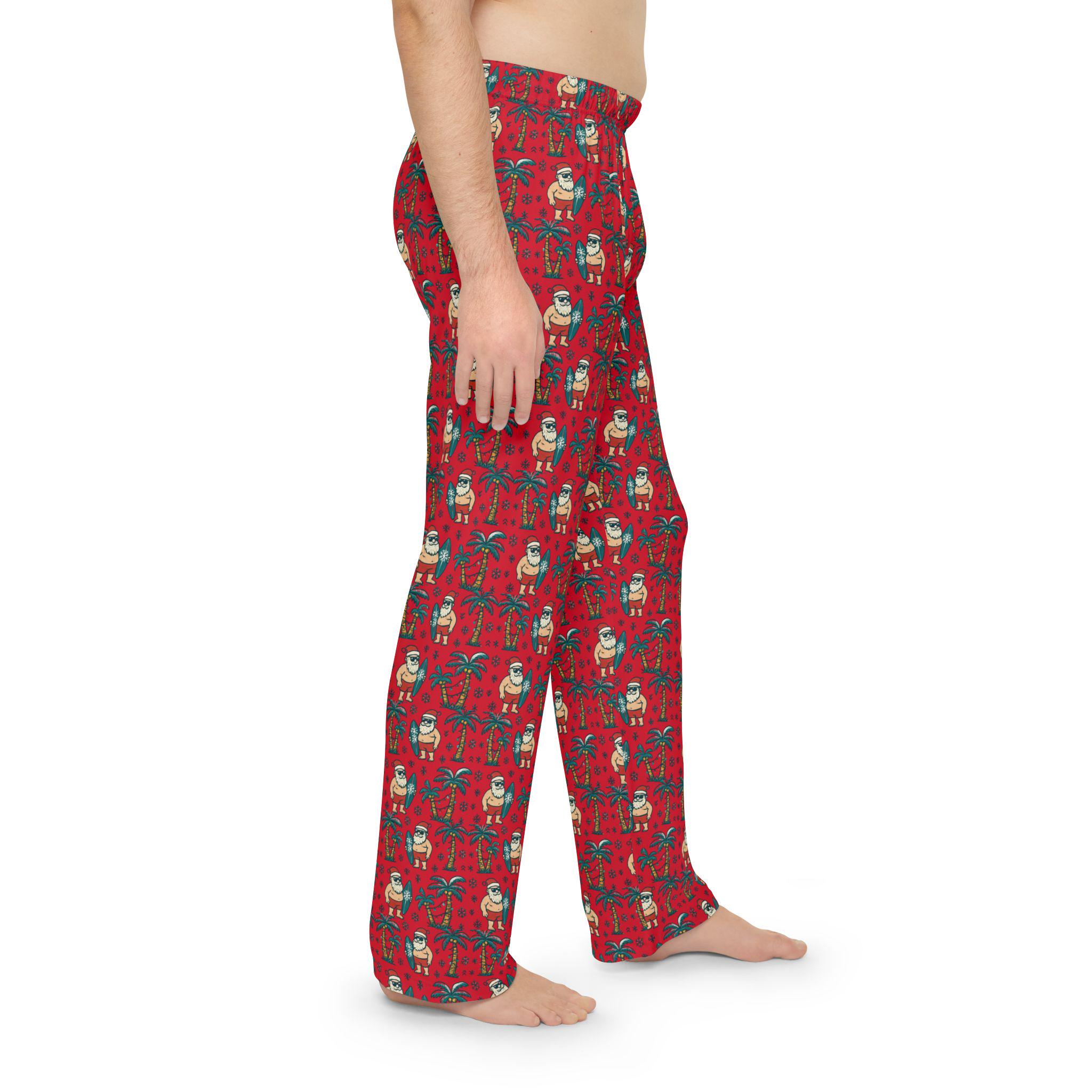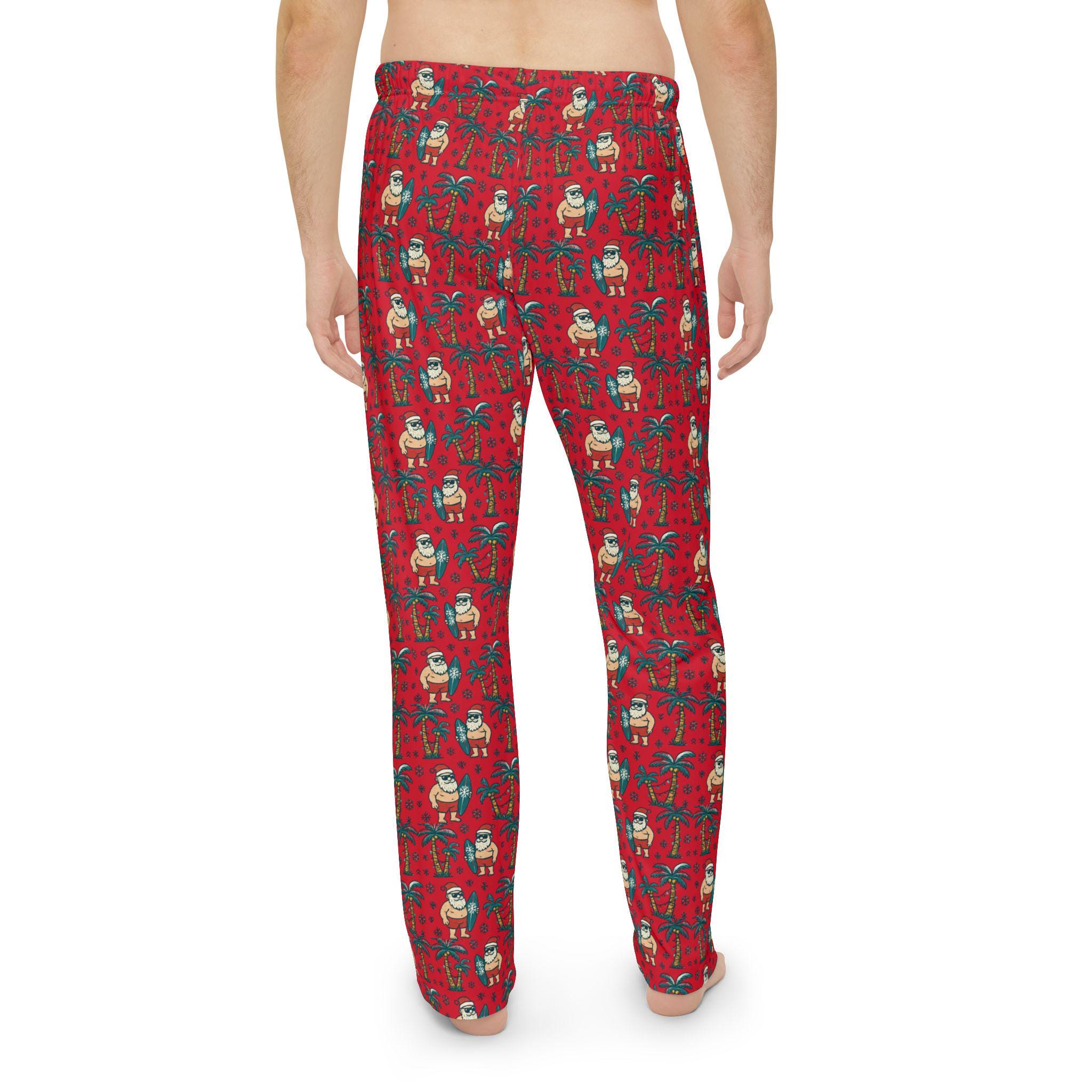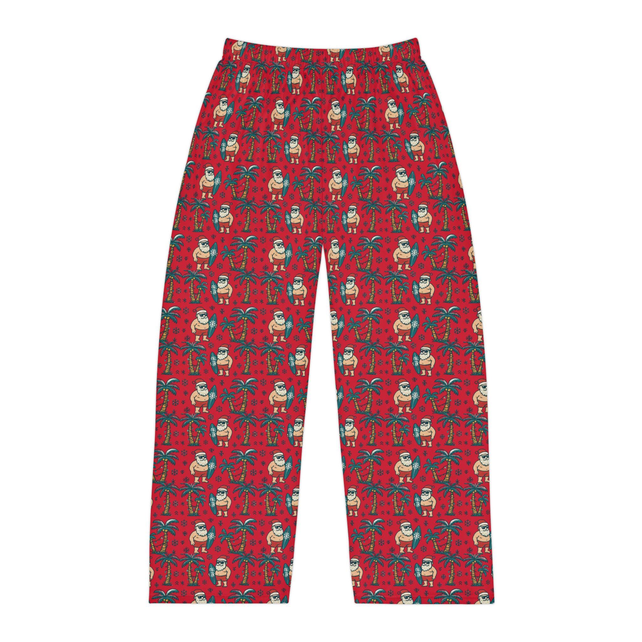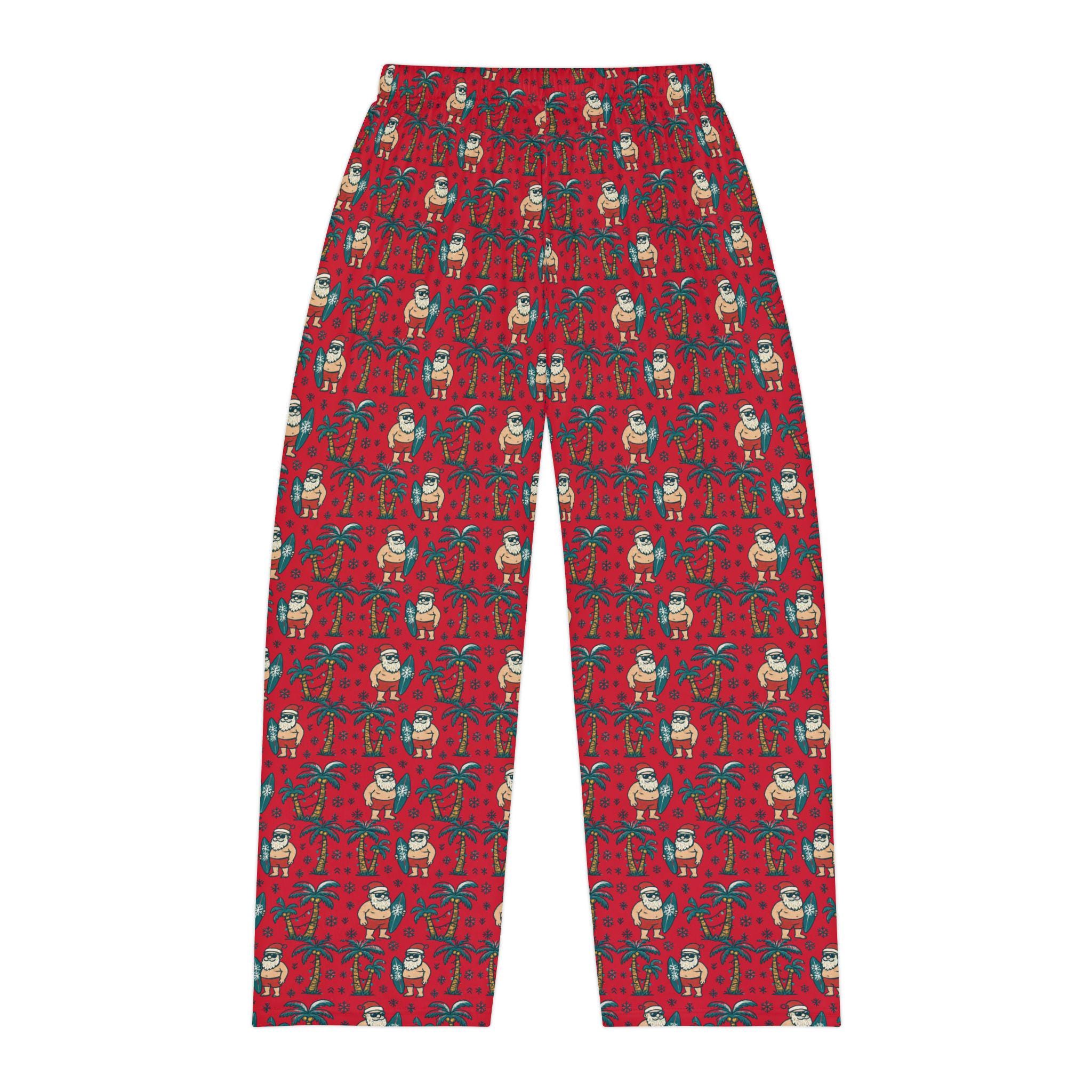 These pajama pants carry a sunlit, salty-warm holiday mood—Santa trading snow for surf, palm trees strung with lights, and the quiet hum of waves instead of sleigh bells. Slip them on for late-night movie marathons, gingerbread baking that runs past midnight, or packing for a beachside winter getaway. The lightweight, brushed polyester feels smooth against skin and breathes through warm, cozy evenings. The elastic waistband and soft hand-feel make them easy to lounge in after a long day, while the all-over tropical-Christmas print keeps the vibe playful and a little rebellious—holiday cheer with flip-flops. They're the sort of pants that make you smile when you catch your reflection or reach for a second cup of cocoa under twinkling palm lights.