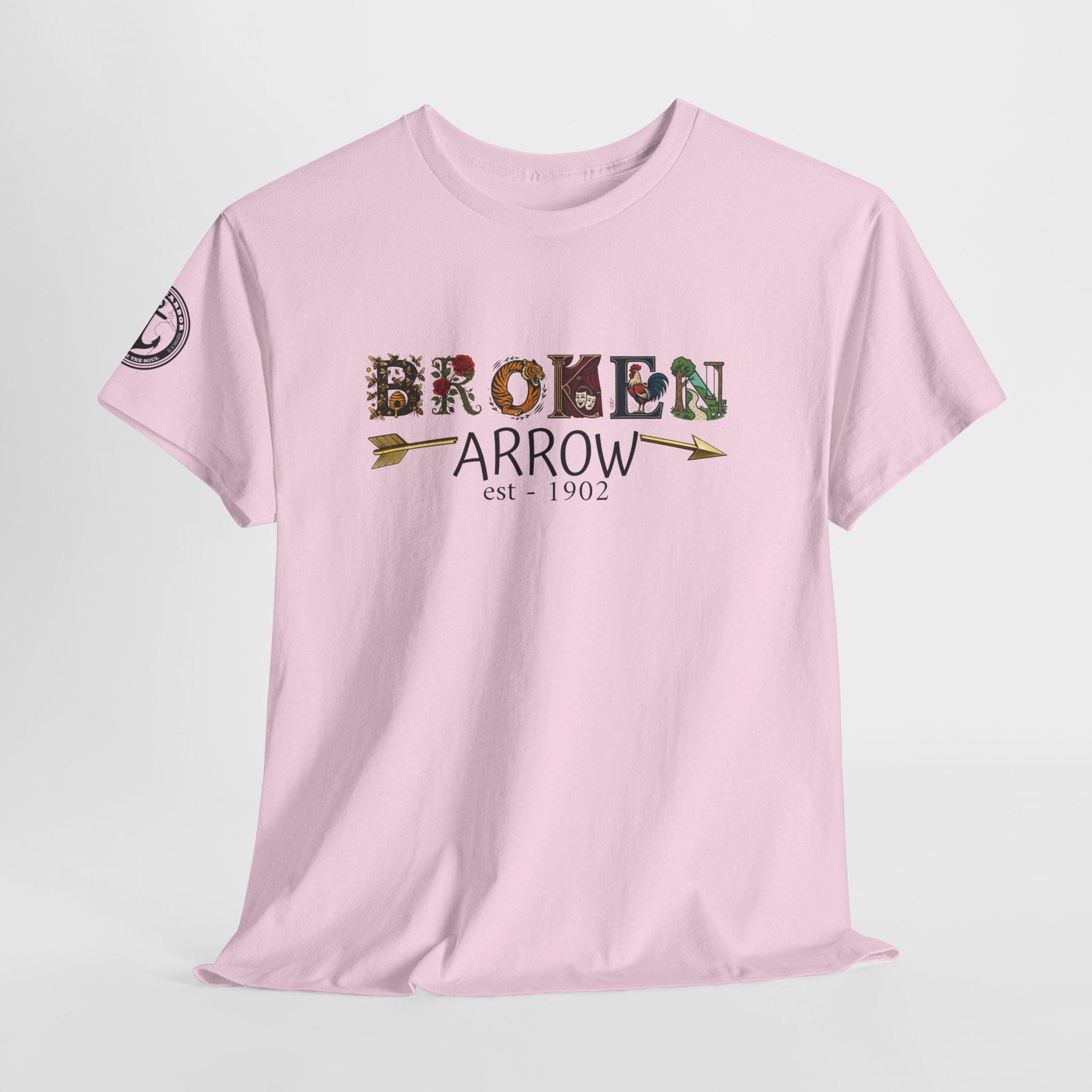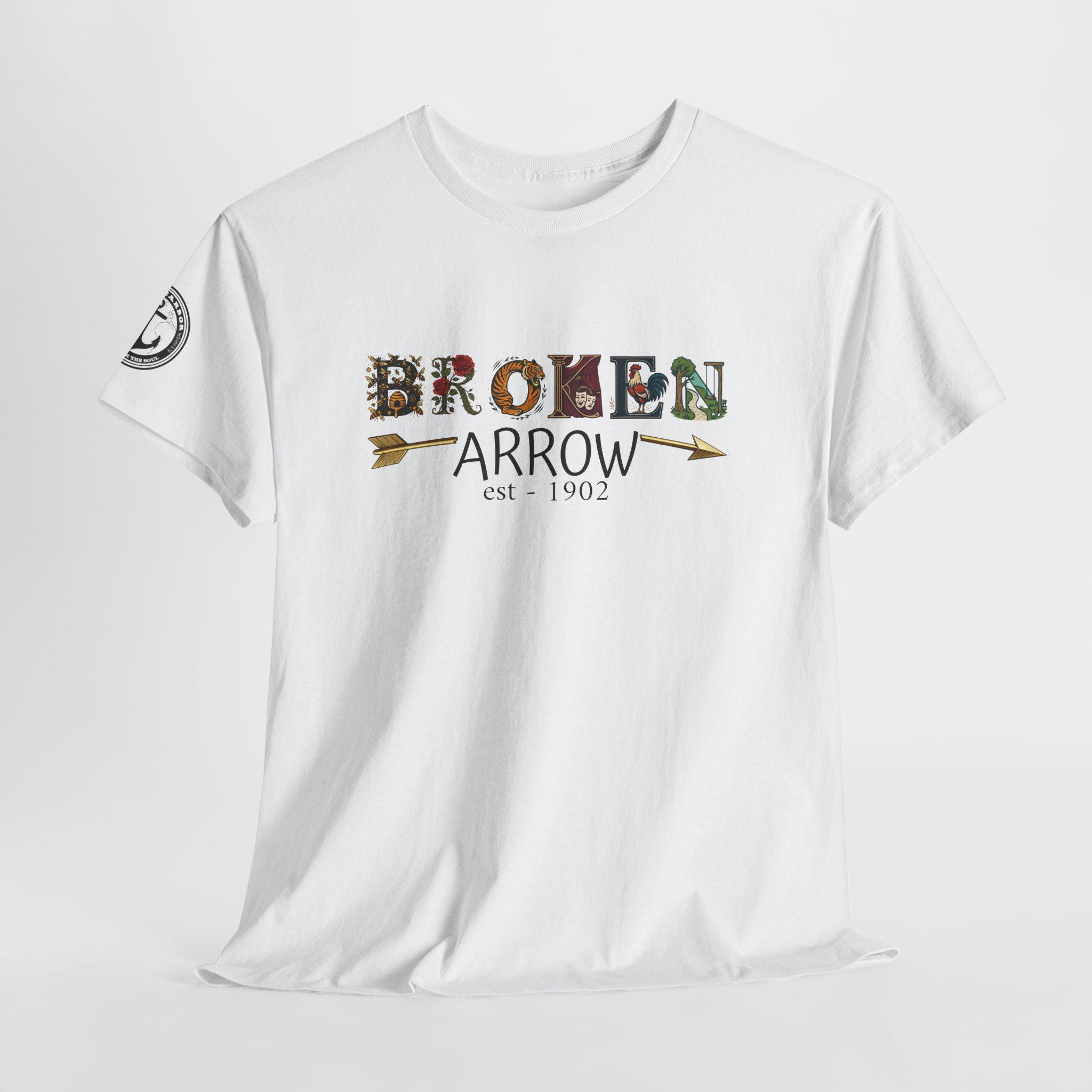 This short-sleeve city tee carries the spirit of Broken Arrow wherever you go. Soft, smooth cotton holds detailed designs in reference to the BA Buzz, Rose District landmarks, BA Tigers pride, Kristin Chenoweth’s performing arts legacy, Rooster Days energy, and the neighborhood parks. Wear it on weekend strolls through downtown, to local events, or when you want to show quiet hometown pride. The relaxed crew neckline and classic fit make it easy to layer under a jacket or pair with jeans. It feels like an unfussy local badge—comfortable, familiar, and made to be worn often by people who know and love Broken Arrow.