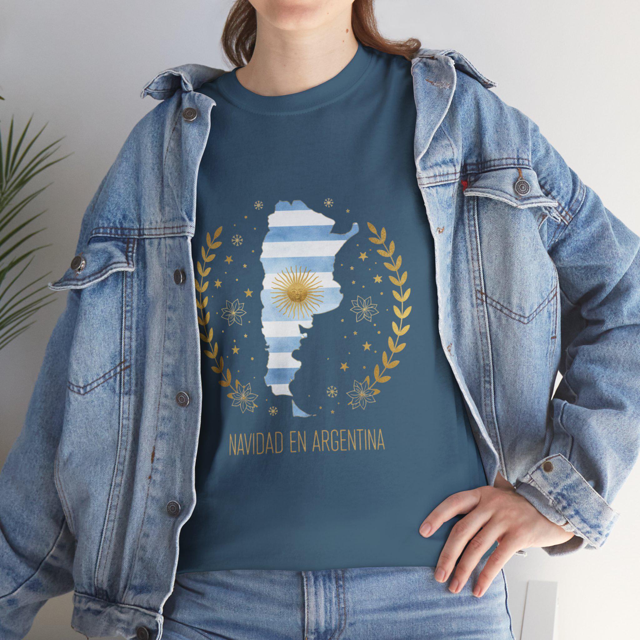 This cotton tee carries quiet holiday spirit with a nod to Argentine Navidad — warm, familiar, and a little festive. Lightweight but sturdy, it sits comfortably at the shoulders and keeps its shape through many wearings. Picture gathering under soft lights, chiming mate cups, and the gentle bustle of family preparations; this shirt slips into that scene without shouting, adding a subtle celebratory touch that reads as both local pride and seasonal warmth. The natural color option echoes handwoven textures with tiny flecks; the fit is relaxed for moving around kitchens, visiting mercados, or strolling evening plazas. Printed with crisp, detailed techniques, the design stays vibrant wash after wash, so memories built this season stay visible next year and the next.