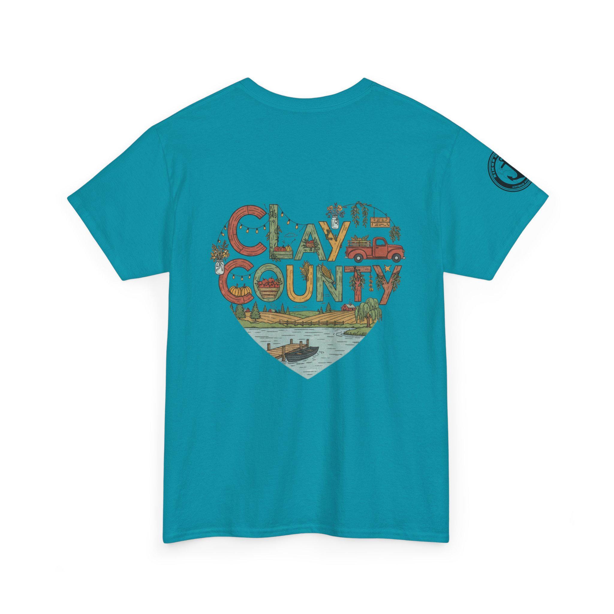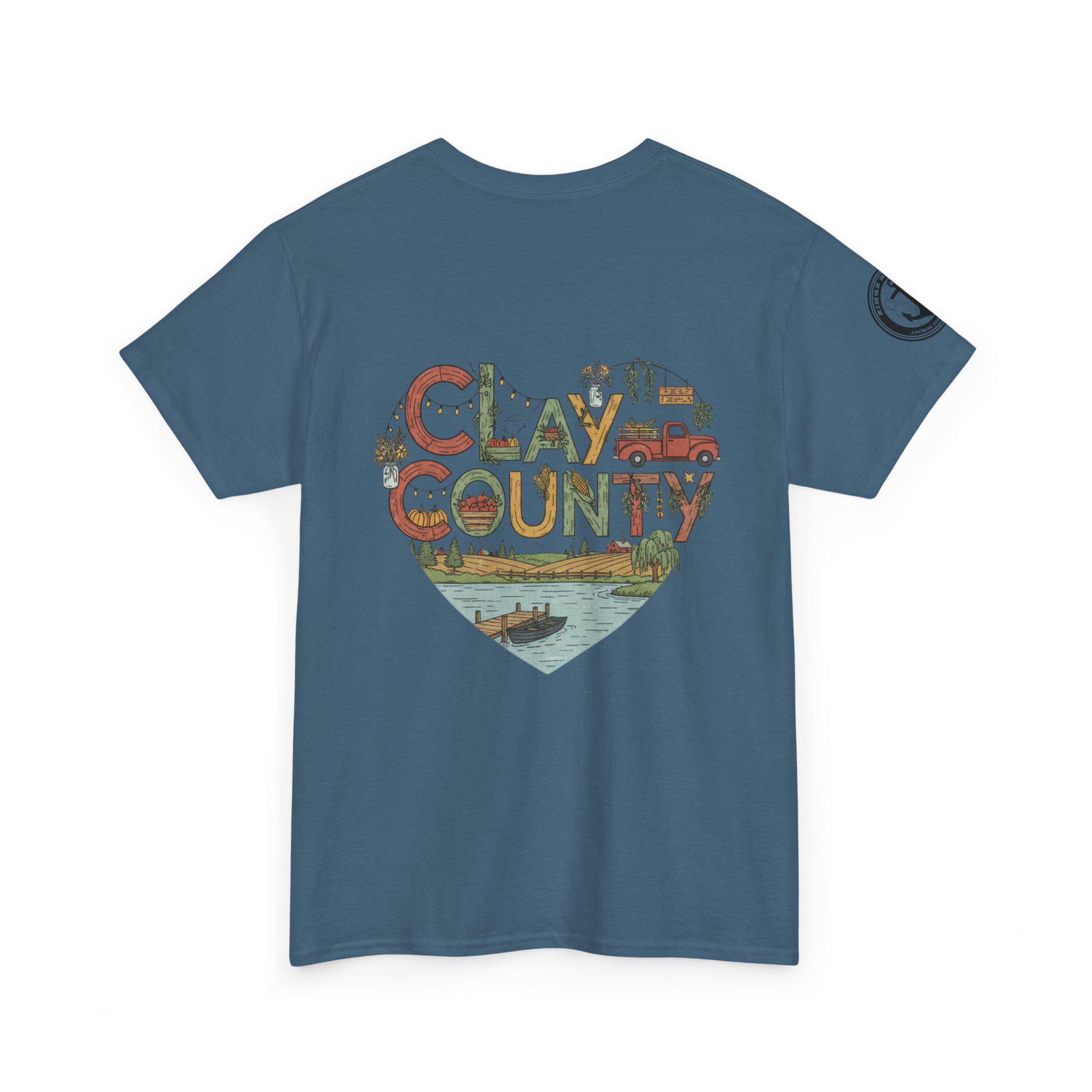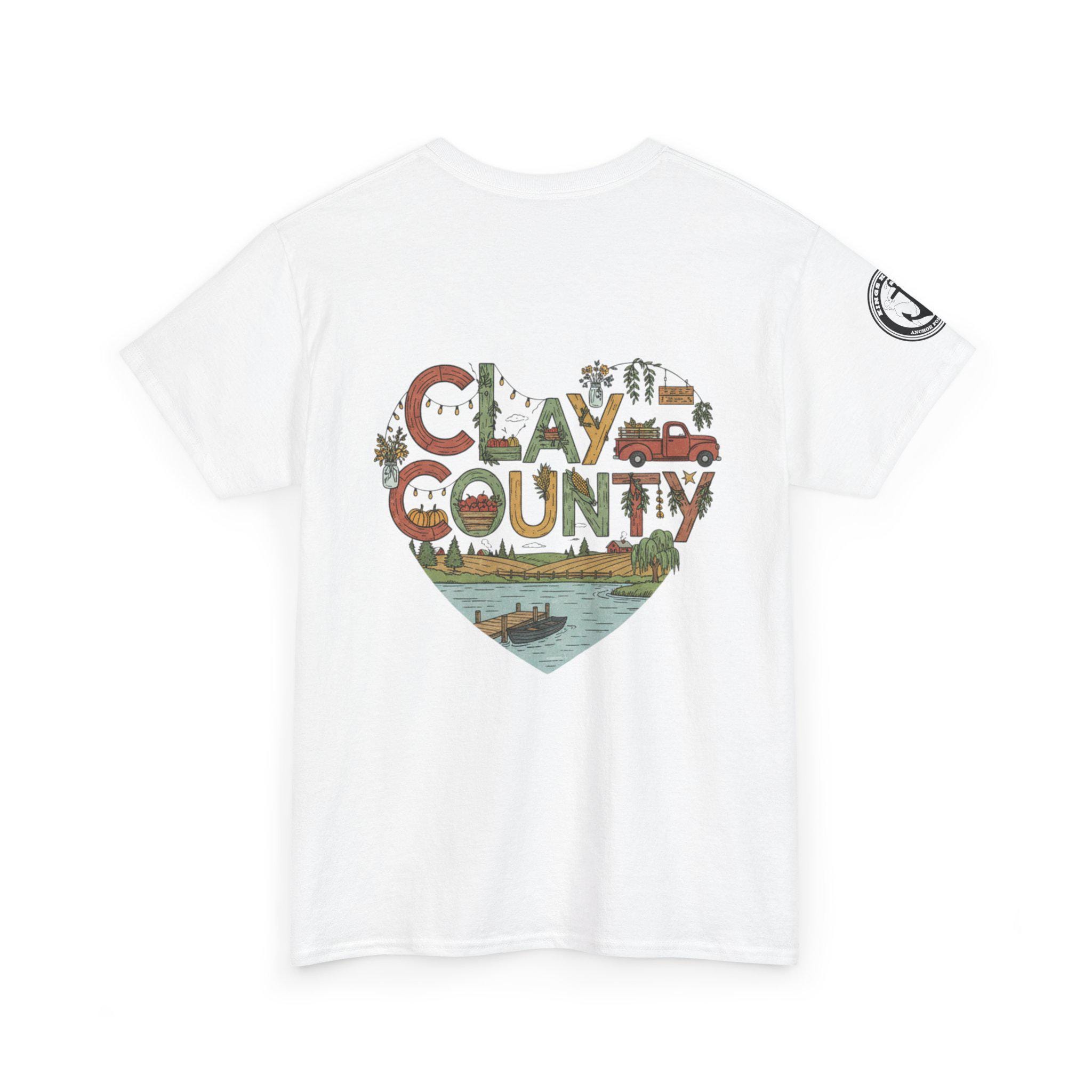 Wear your Clay County pride close to the heart. This tee opens conversations—soft, steady cotton that carries a hand-drawn Clay County crest on the chest and a larger country-themed heart on the back. It’s the kind of shirt you reach for when you want to show hometown love at weekend market runs, county fairs, or low-key family reunions. The fabric sits comfortably against skin and keeps its shape through repeated wear, so the design stays crisp while you move from coffee shop to porch swing. Subtle natural flecks in the undyed option add an organic, lived-in feel that pairs well with denim or work boots. Thoughtful printing and a tear-away label mean nothing gets between you and the simple pleasure of wearing a reminder of home.