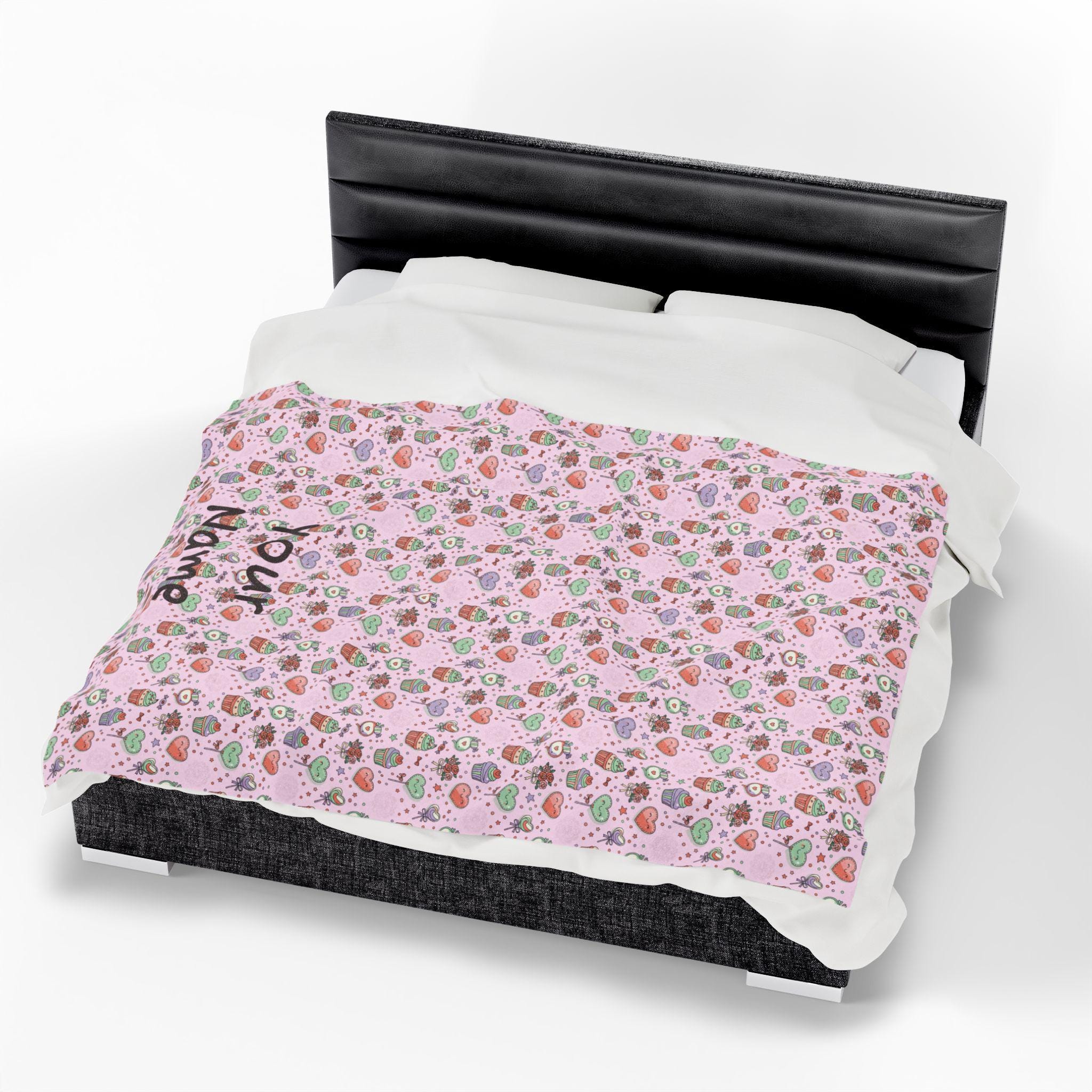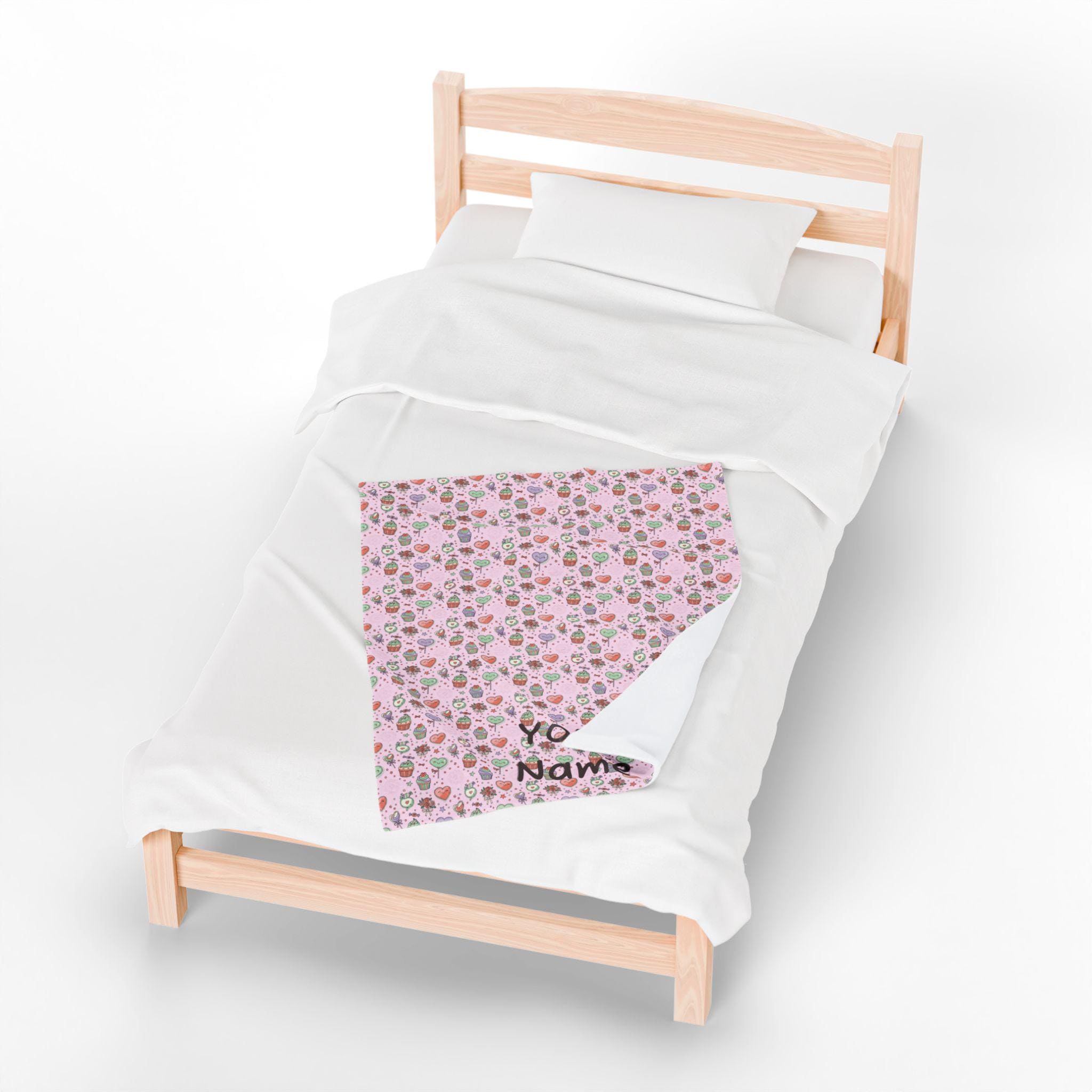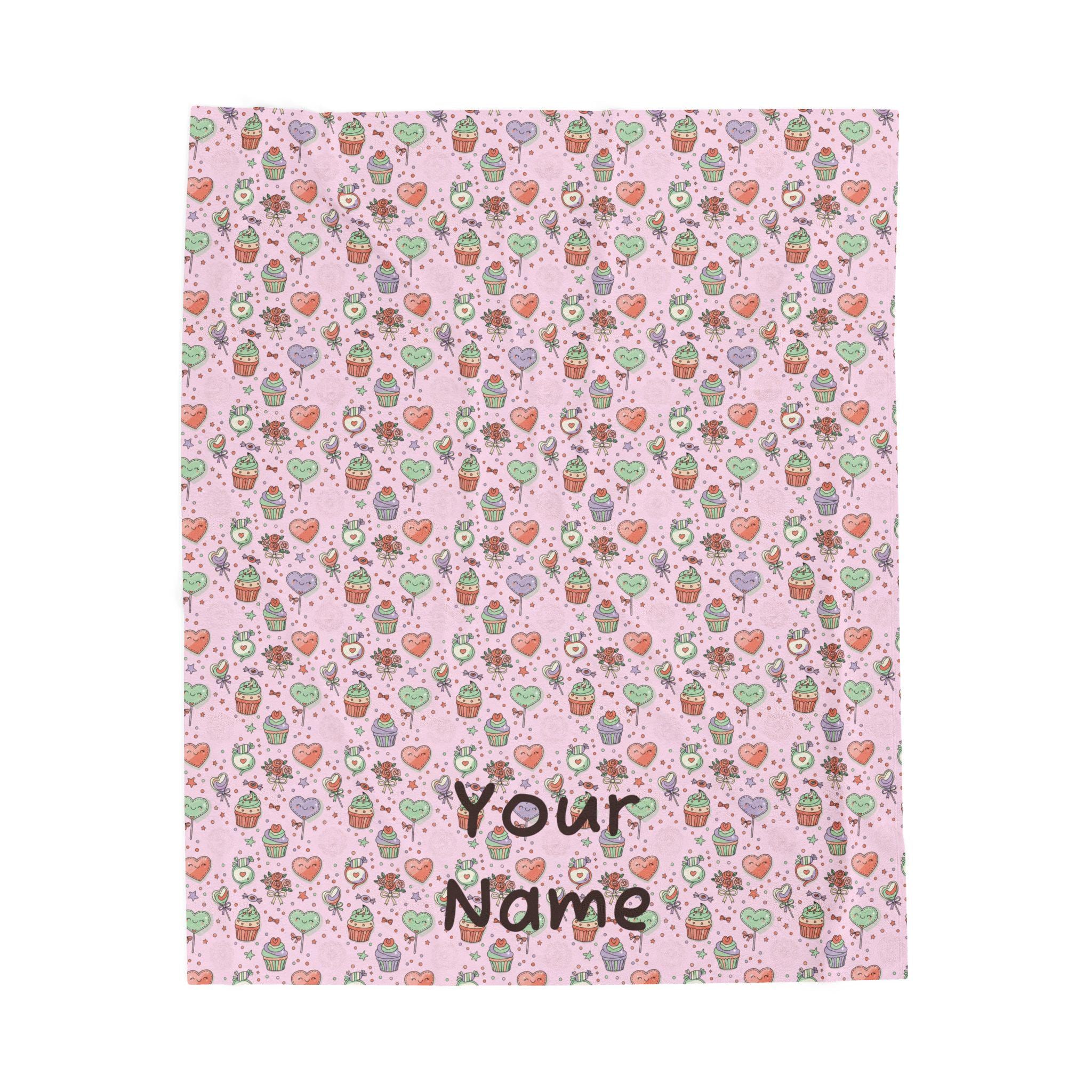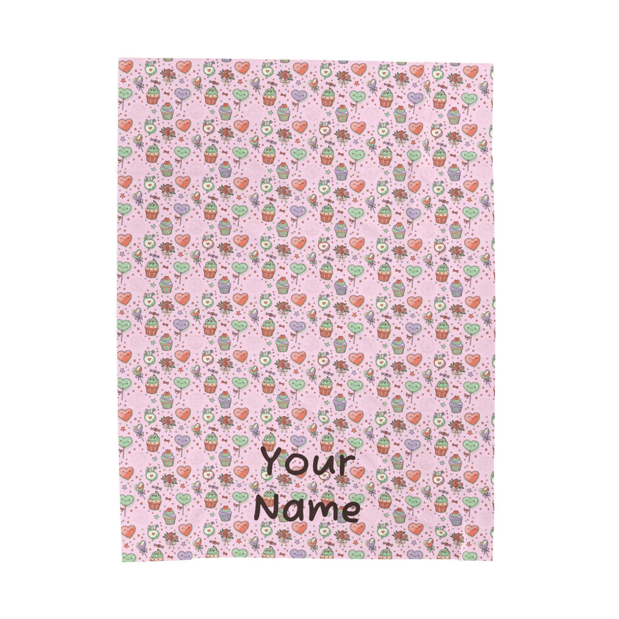 Wrap yourself in a soft, whimsical world with this velveteen plush blanket. A candy-dream pattern of cupcake roses, hearts, and sweets blooms across a blush-pink field, evoking cozy afternoons curled up with a warm drink and a good story. The plush surface feels silky against the skin; the medium heavy-weight fabric holds gentle warmth without feeling bulky. Thoughtfully stitched with double-needle topstitching, the edges stay neat wash after wash. This blanket brings a playful, comforting touch to quiet mornings, birthday movie nights, or when you want a little sweet nostalgia in your space.