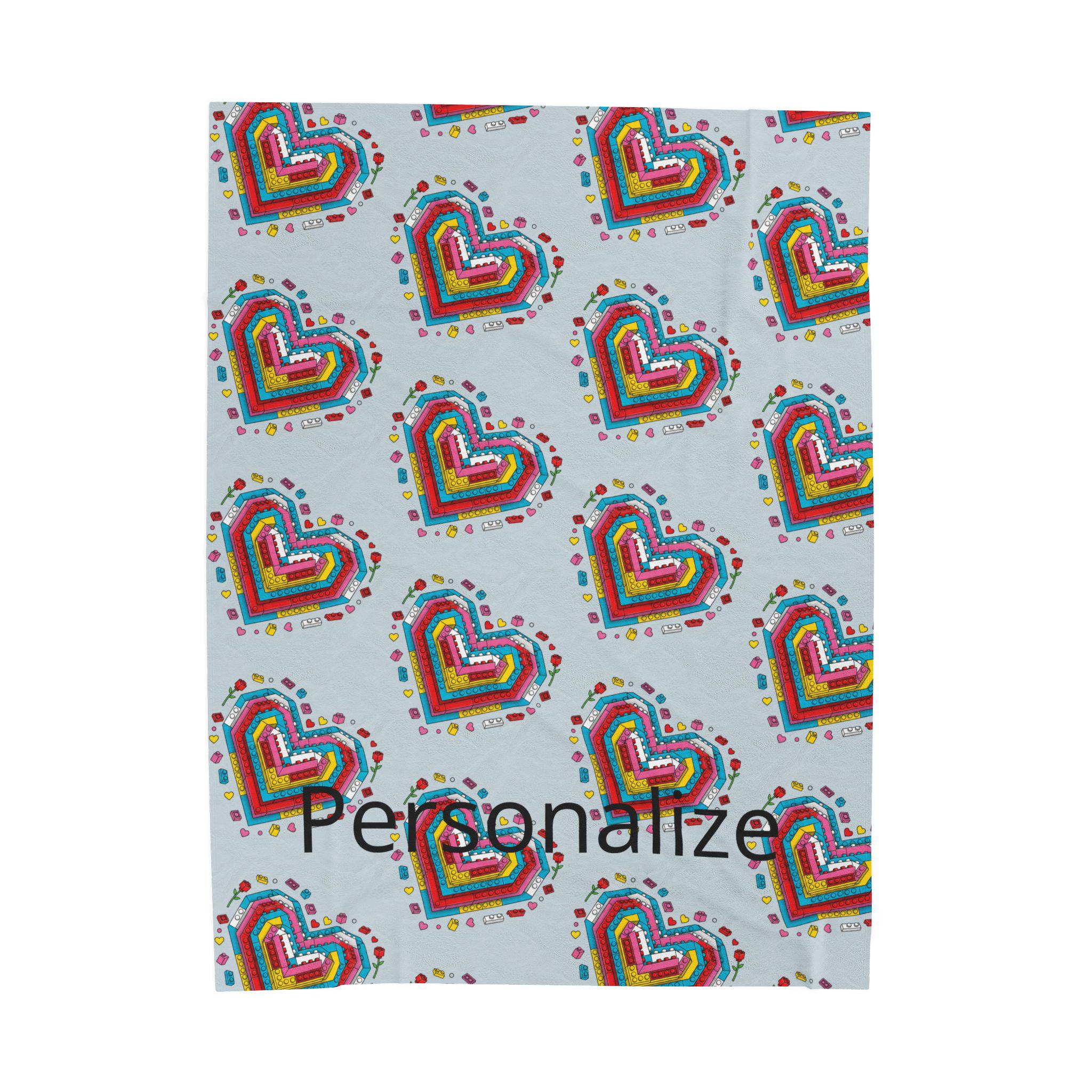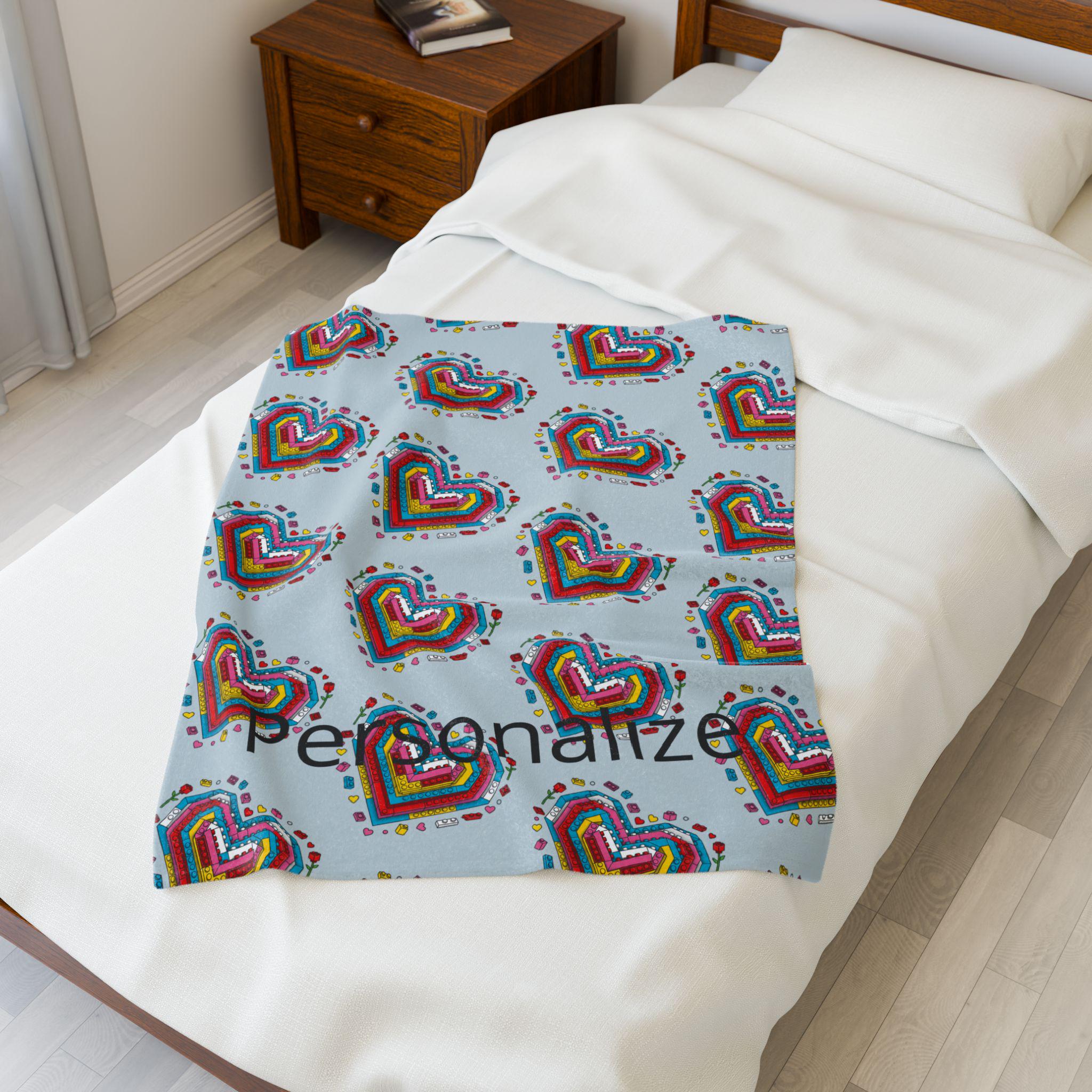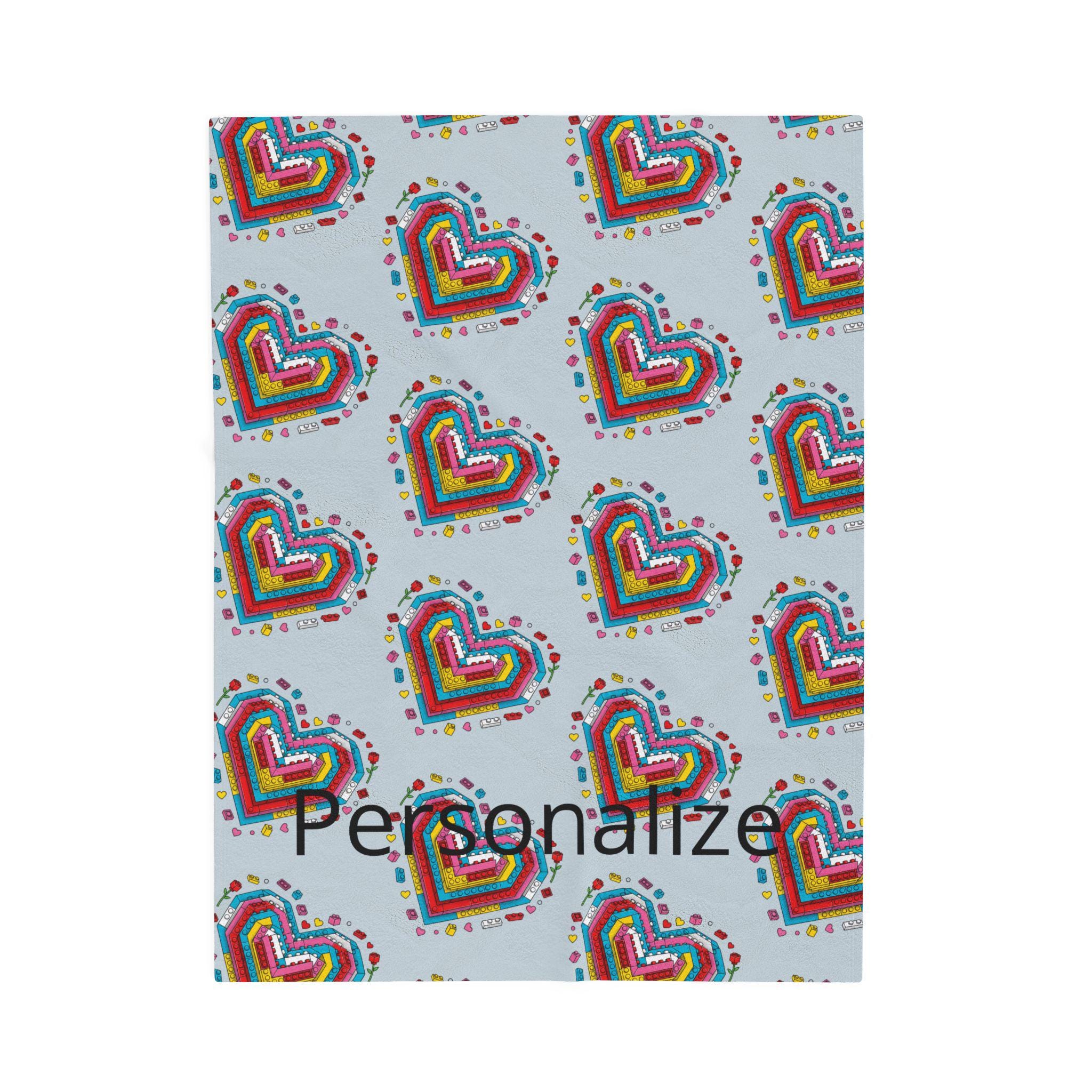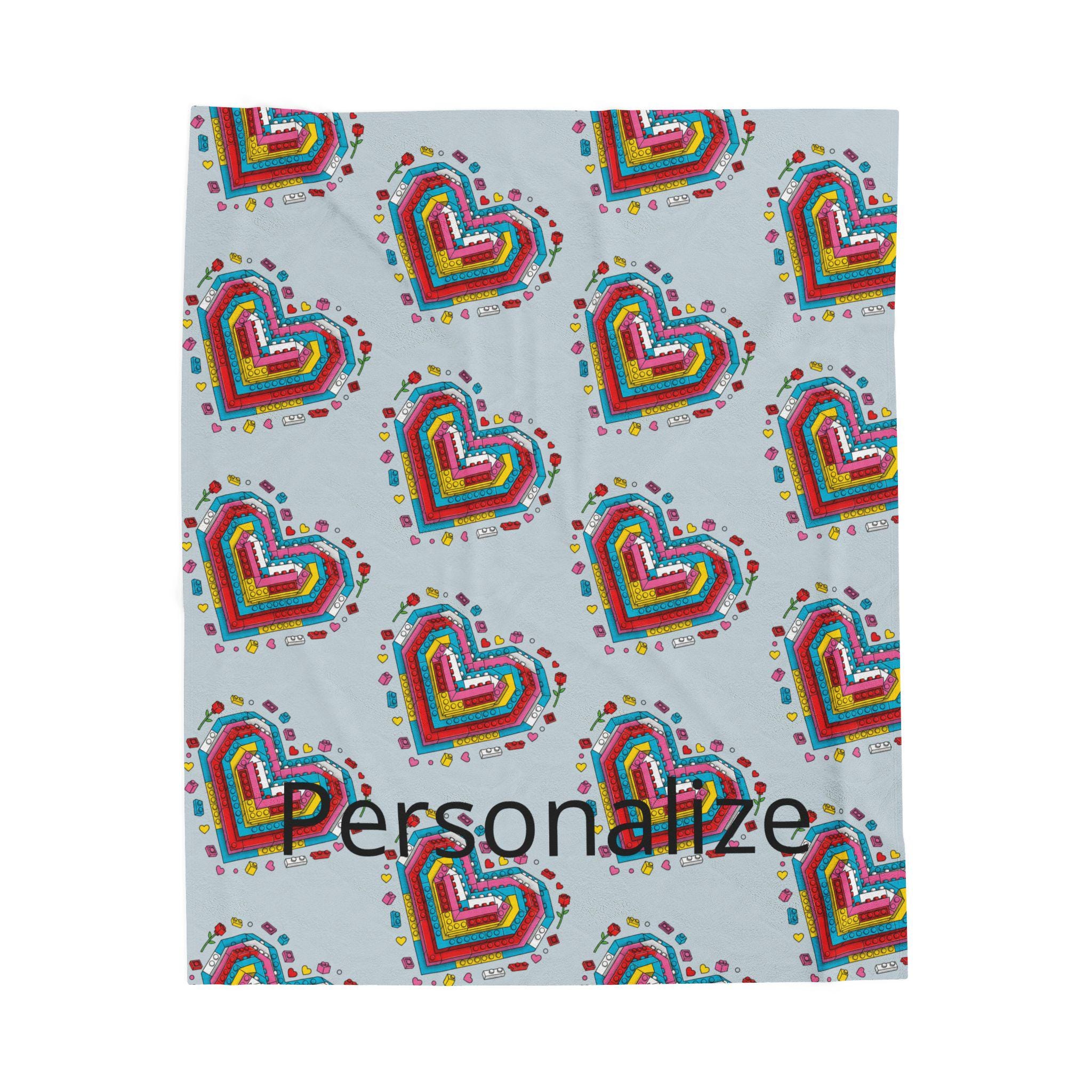 Soft, cozy, and quietly playful—this velveteen plush blanket folds a personal story into every stitch. A mosaic of tiny Lego-style hearts blooms across a calming blue-gray field, while a cherished name is printed into the pattern so the piece truly belongs to someone. It’s the kind of throw you reach for on slow evenings: to wrap around your shoulders during a movie, to drape over the back of a favorite chair, or to tuck across your knees on a breezy night. The plush surface is gentle against skin and holds rich color so the brick-heart motif stays vivid through use. Give warmth that reads like an inside joke, a tender memory, or a quiet dedication—this blanket carries both comfort and meaning.