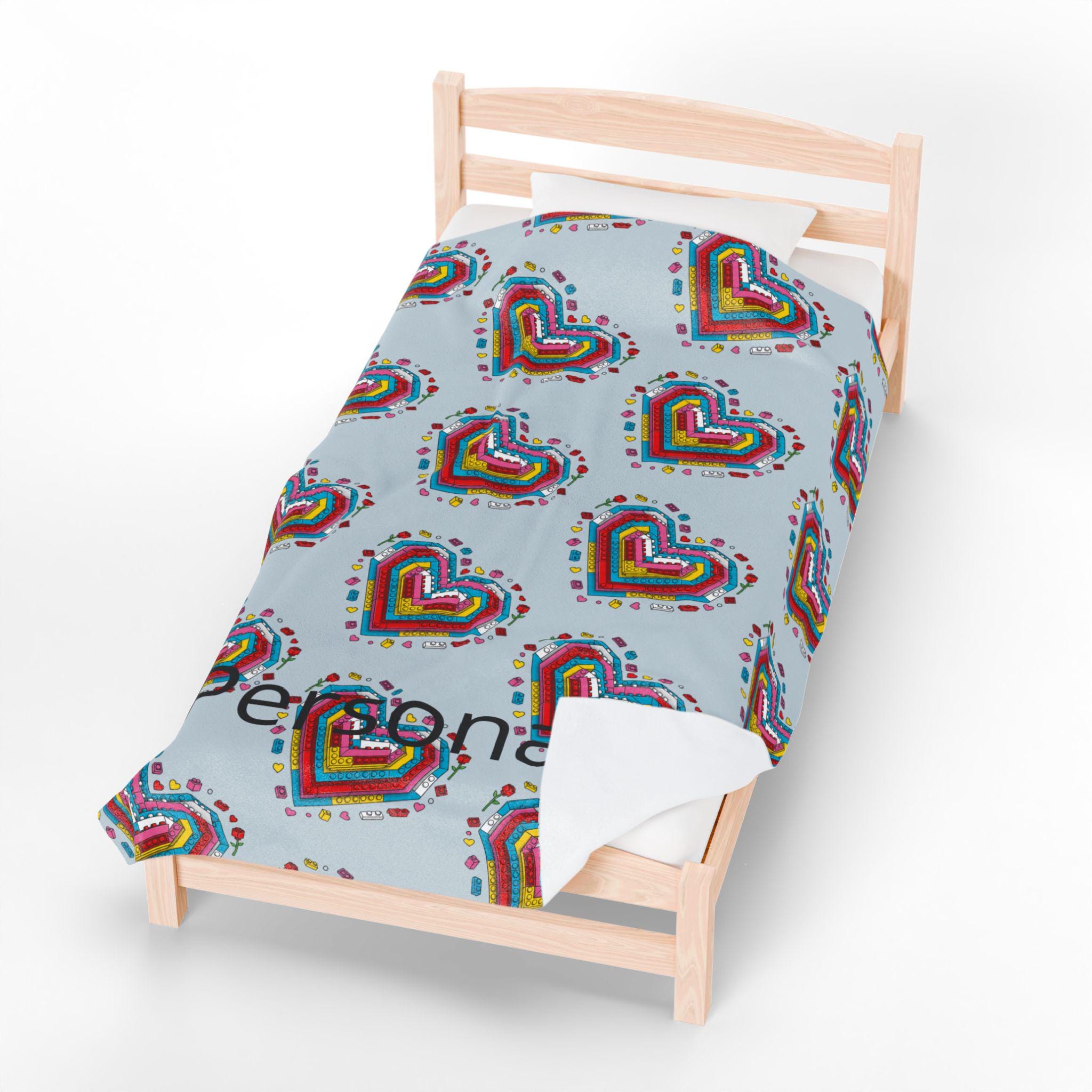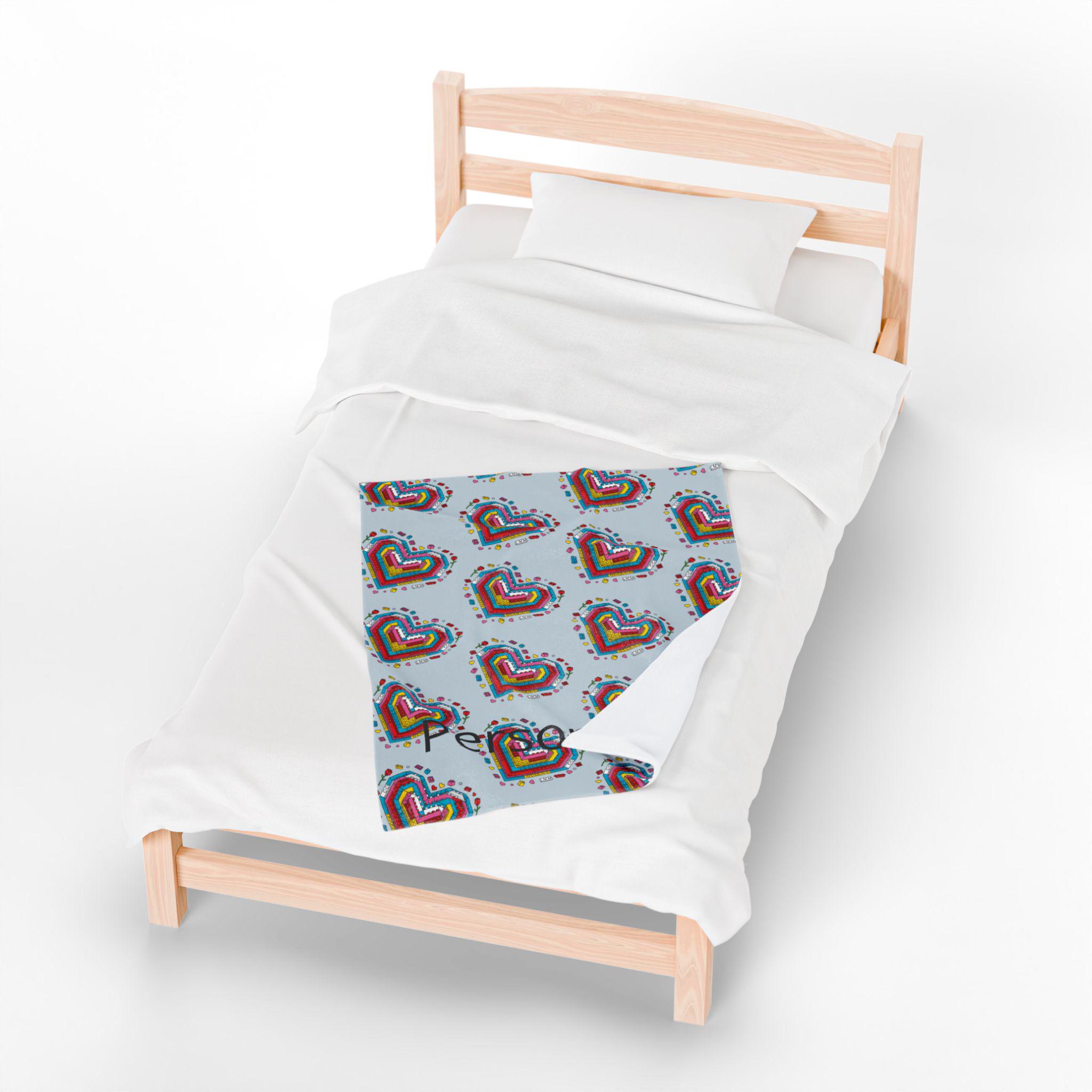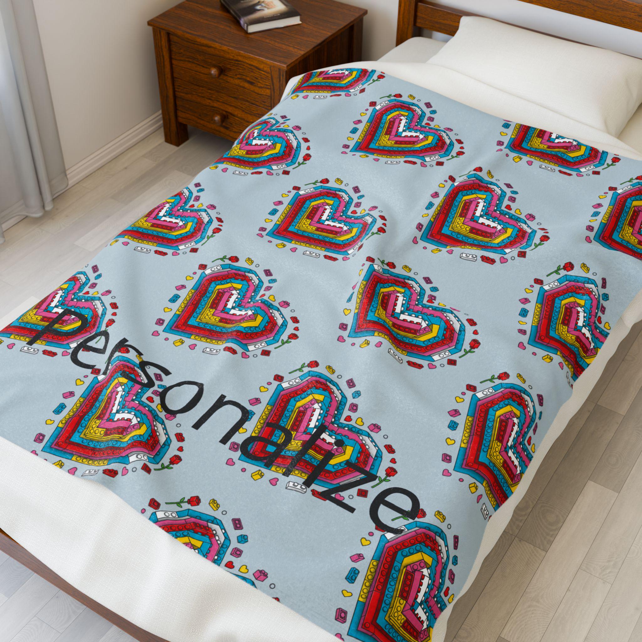 Soft, cozy, and quietly playful—this velveteen plush blanket folds a personal story into every stitch. A mosaic of tiny Lego-style hearts blooms across a calming blue-gray field, while a cherished name is printed into the pattern so the piece truly belongs to someone. It’s the kind of throw you reach for on slow evenings: to wrap around your shoulders during a movie, to drape over the back of a favorite chair, or to tuck across your knees on a breezy night. The plush surface is gentle against skin and holds rich color so the brick-heart motif stays vivid through use. Give warmth that reads like an inside joke, a tender memory, or a quiet dedication—this blanket carries both comfort and meaning.