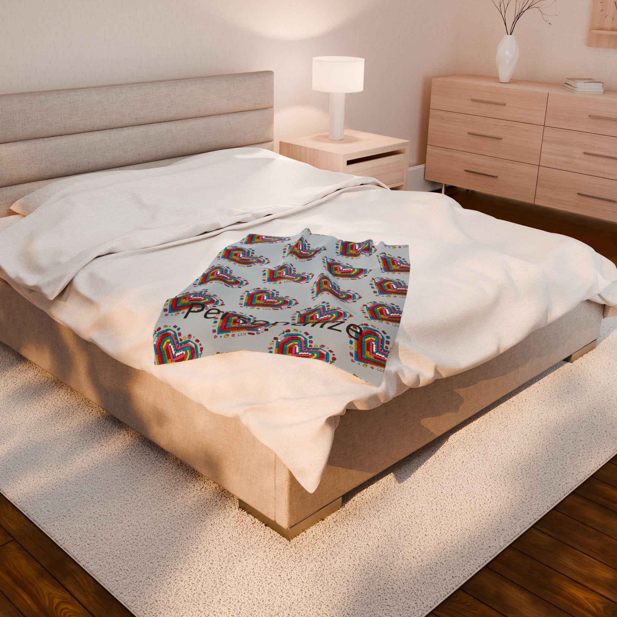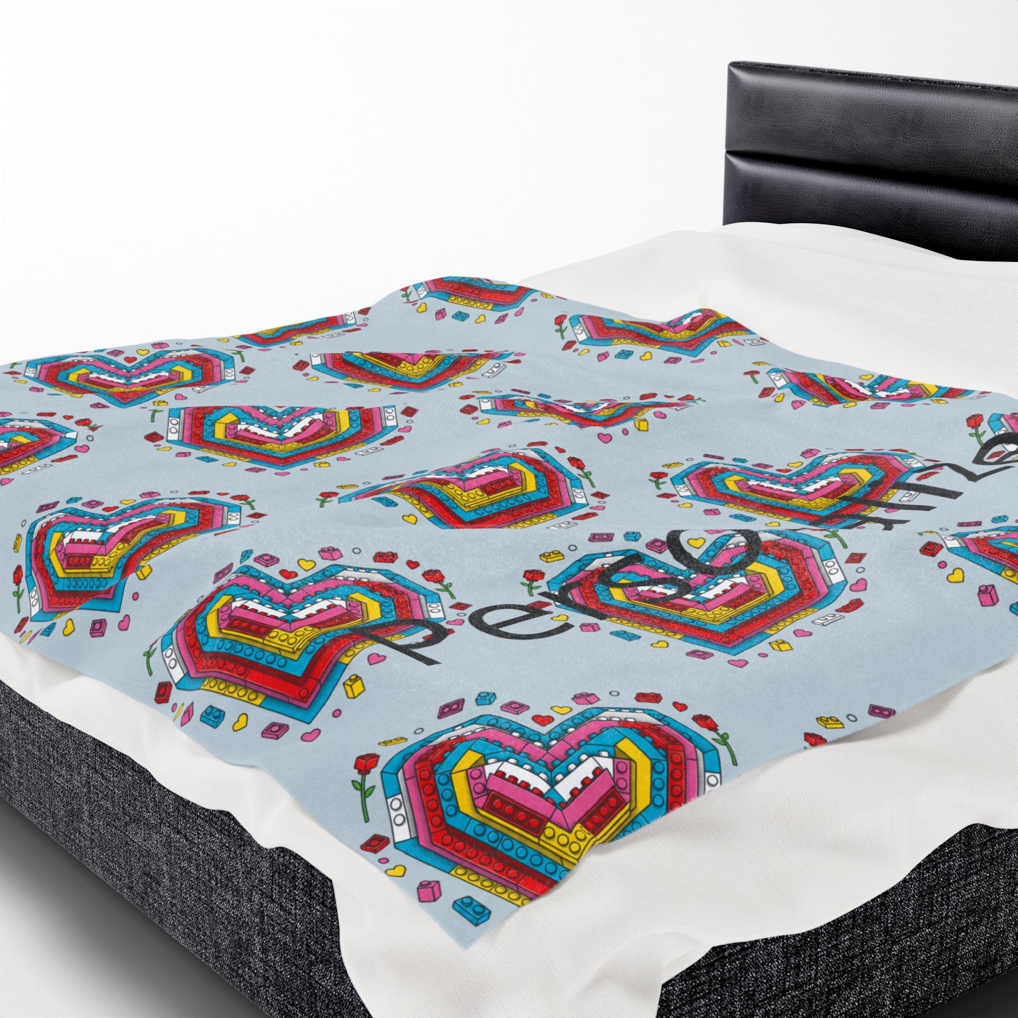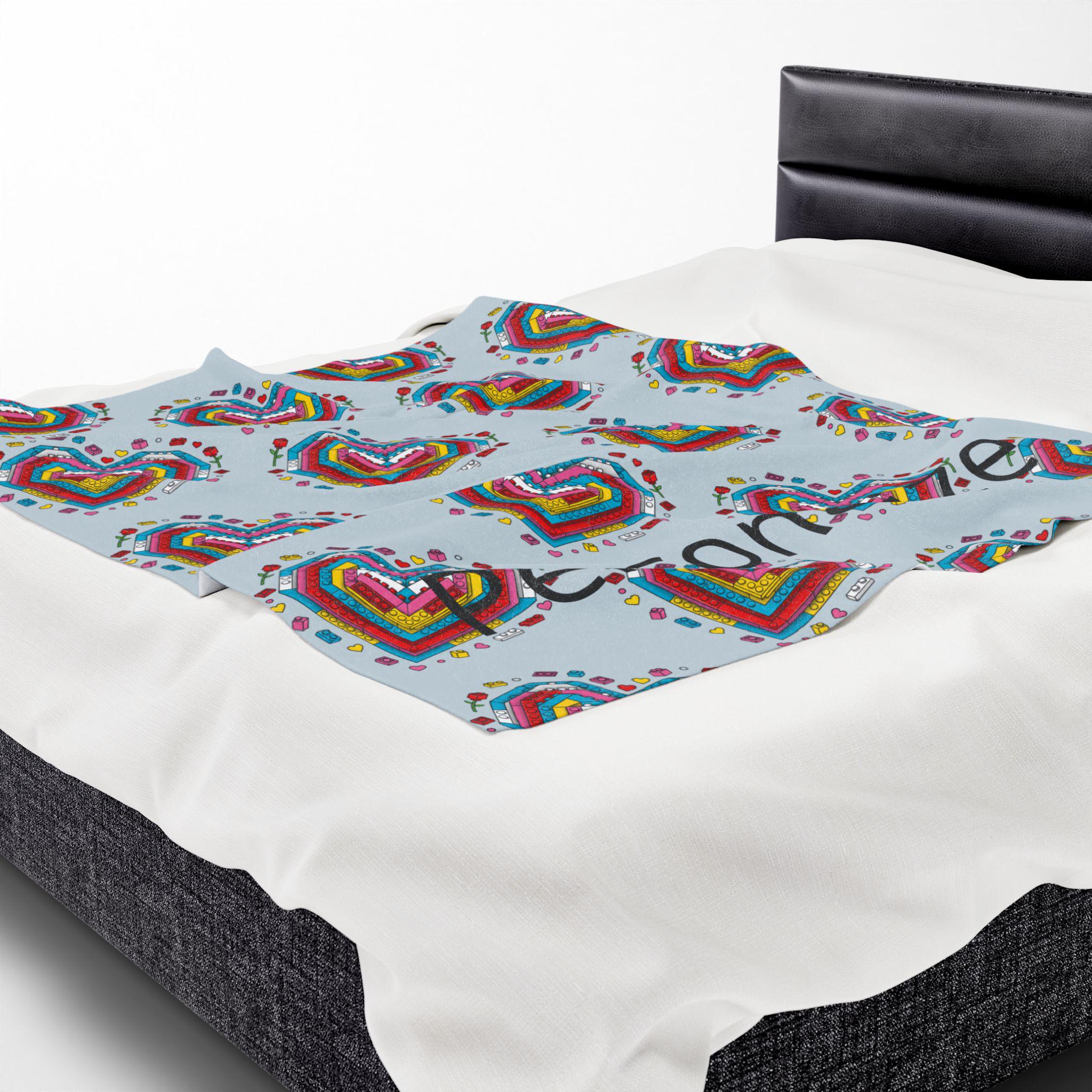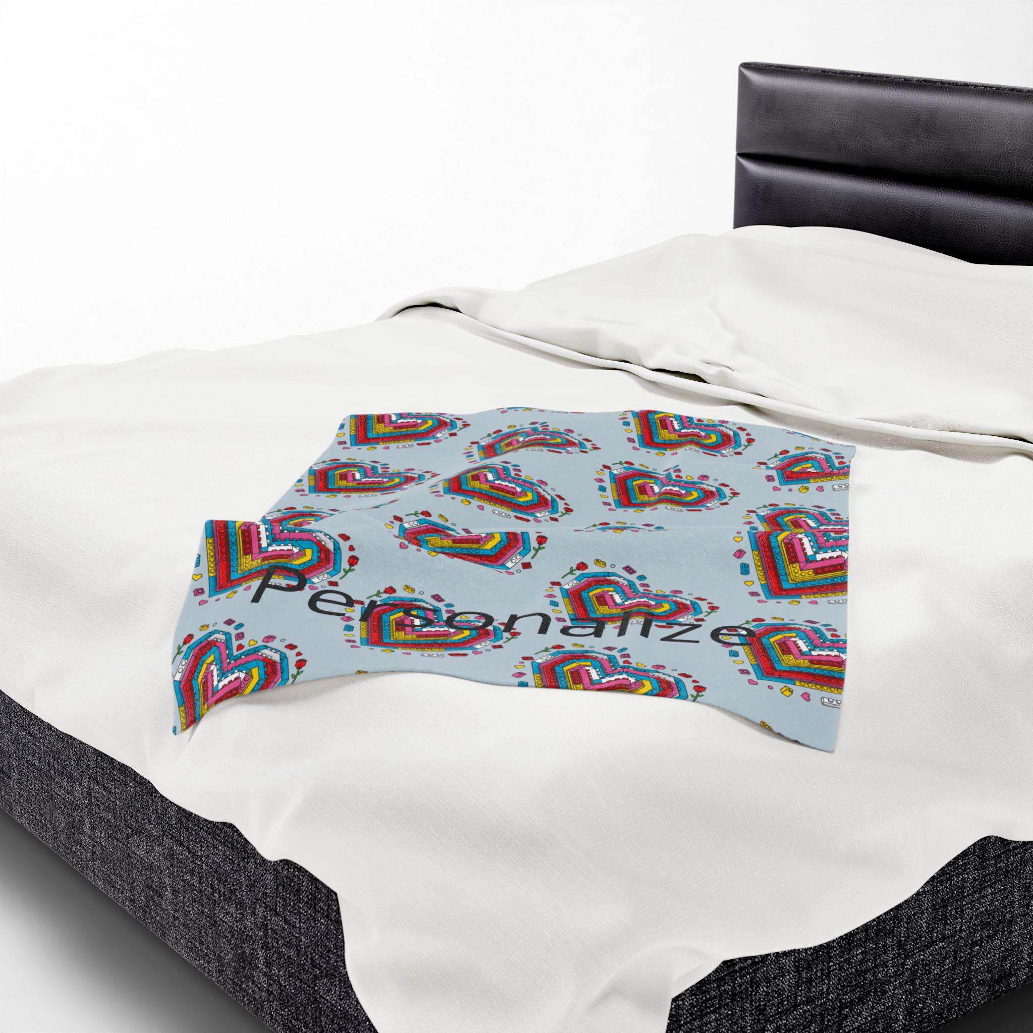 Soft, cozy, and quietly playful—this velveteen plush blanket folds a personal story into every stitch. A mosaic of tiny Lego-style hearts blooms across a calming blue-gray field, while a cherished name is printed into the pattern so the piece truly belongs to someone. It’s the kind of throw you reach for on slow evenings: to wrap around your shoulders during a movie, to drape over the back of a favorite chair, or to tuck across your knees on a breezy night. The plush surface is gentle against skin and holds rich color so the brick-heart motif stays vivid through use. Give warmth that reads like an inside joke, a tender memory, or a quiet dedication—this blanket carries both comfort and meaning.