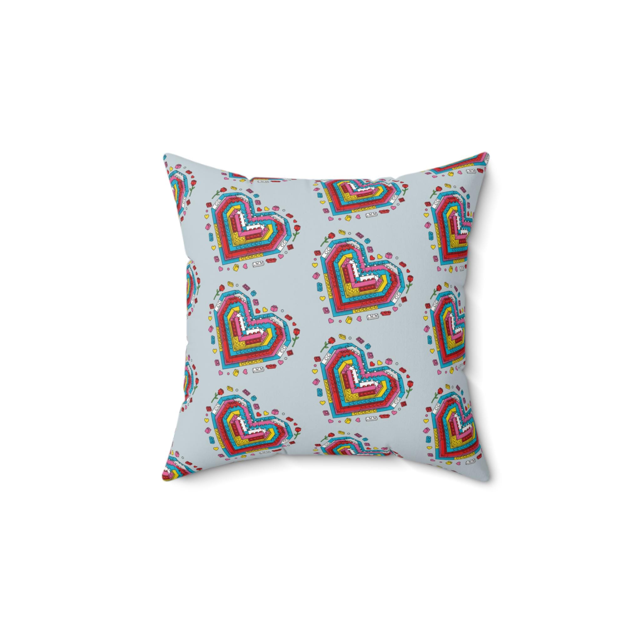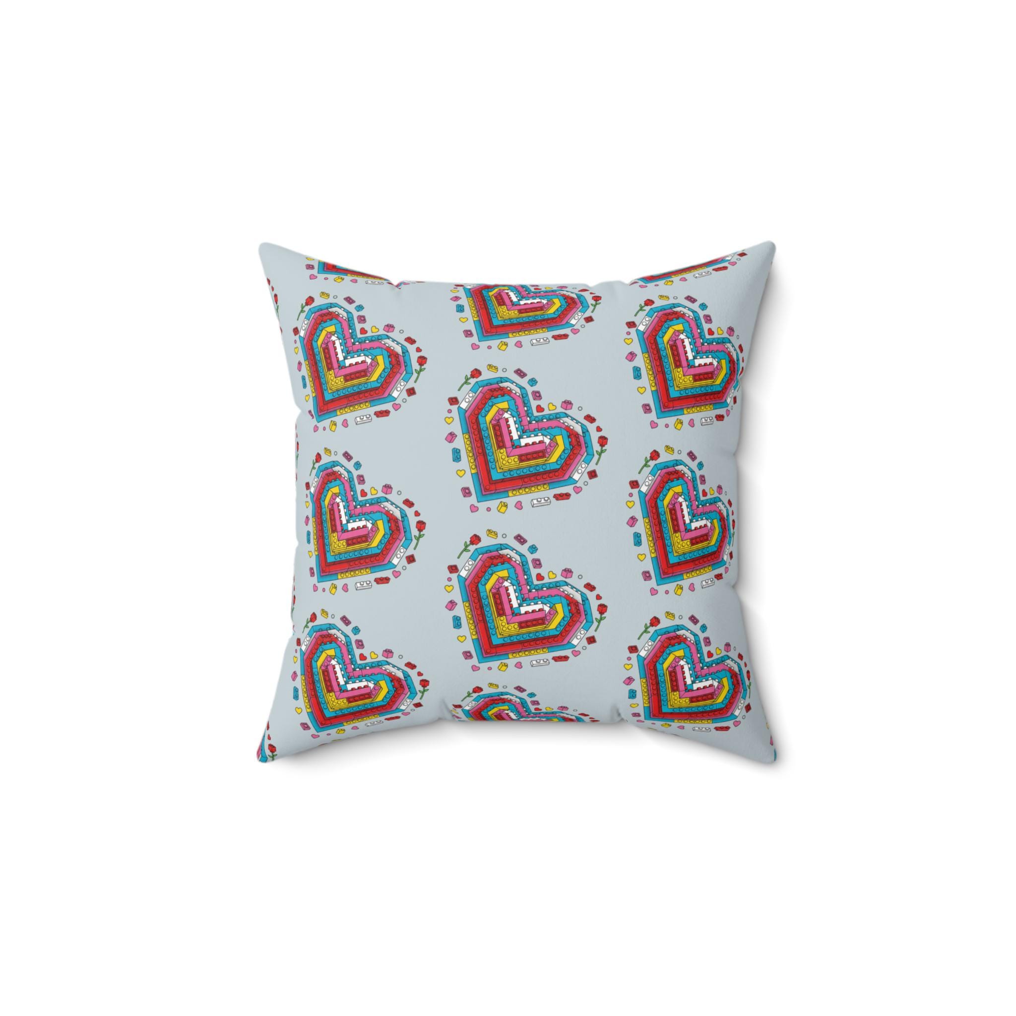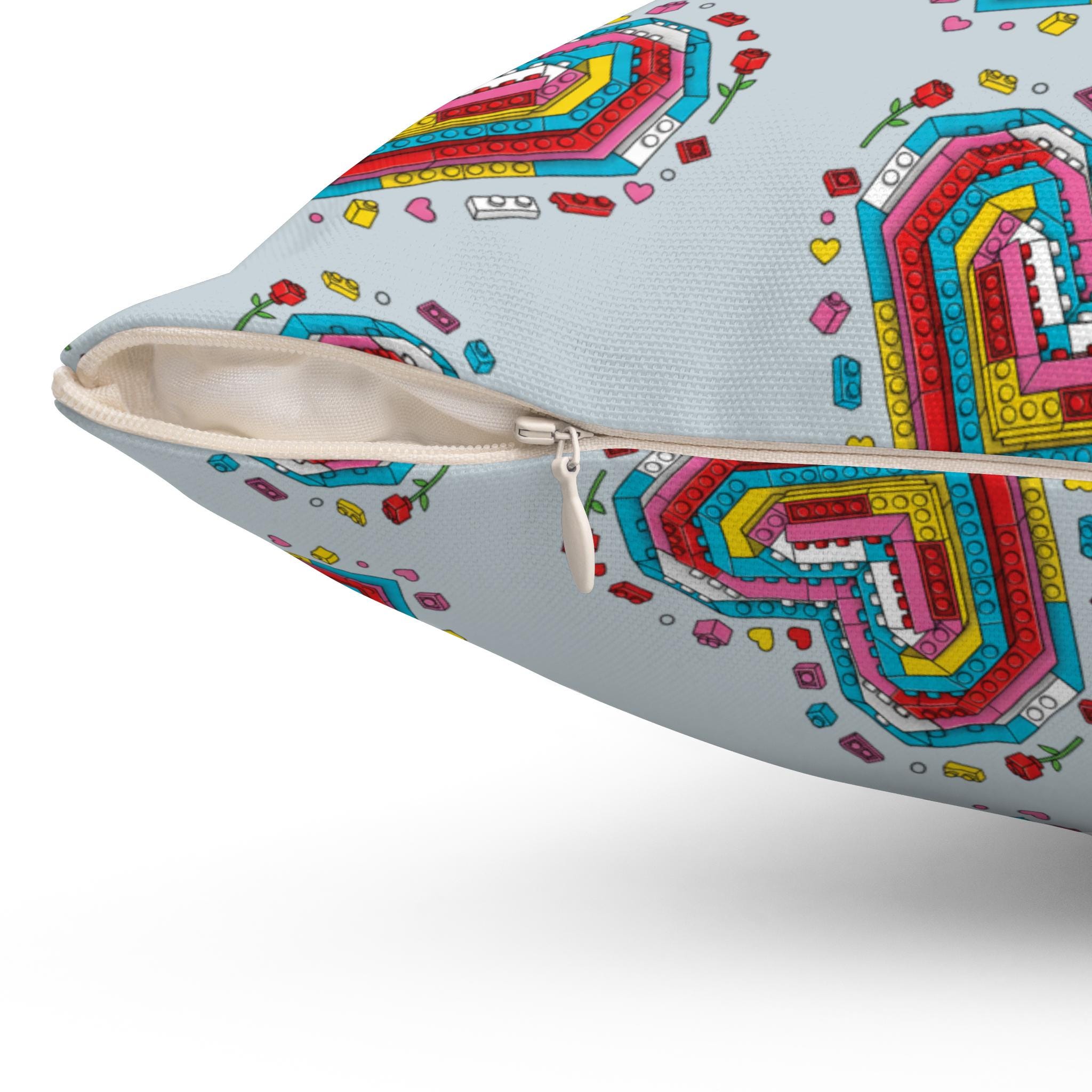 A mosaic of tiny Lego-style hearts blooms across a calming blue-gray field — this square pillow brings a pocket of joy wherever it settles. The double-sided print layers rows of Lego-style hearts. Lego hearts come to life: whimsical, nostalgic, and lively. Any lego lover will sure to enjoy this nostalgic pillow. The concealed zipper and soft polyester fabric keep the look clean and comfortable, while the generously overstuffed recycled insert gives it a plush, hug-ready shape. Whether celebrating a birthday morning, brightening a teen’s room, or creating a cheerful seat for a cozy chat — this pillow reads like a warm, Lego addition in the room.