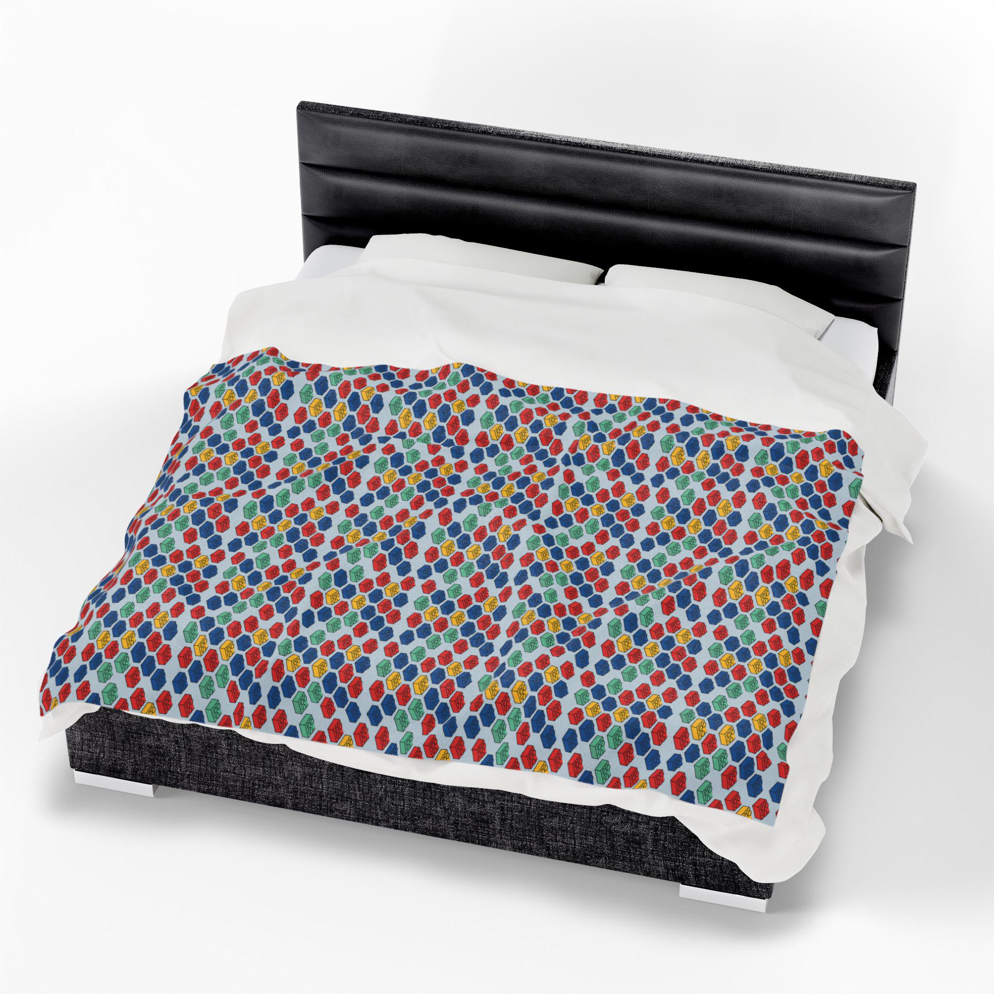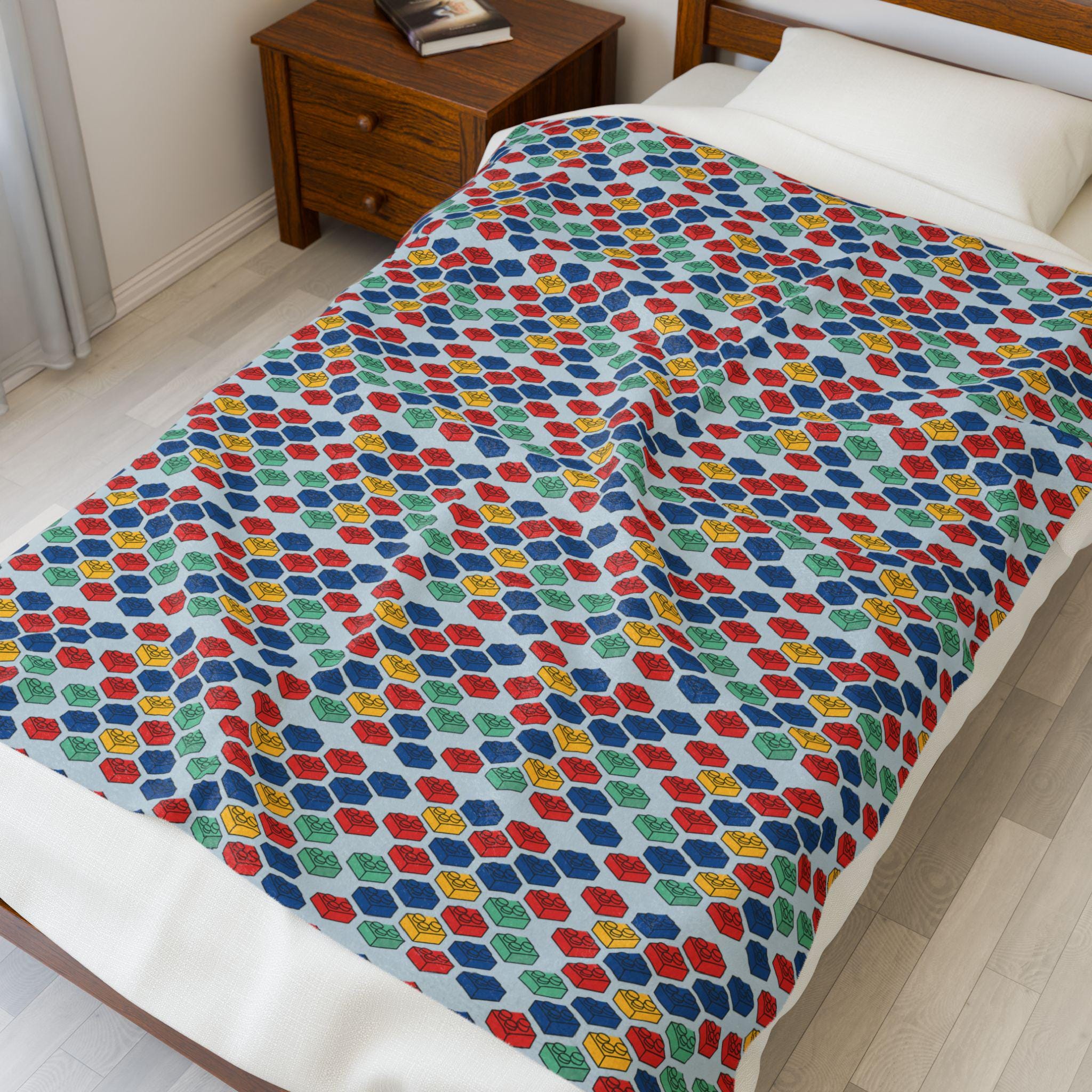 Wrap yourself in a soft, Lego world with this velveteen plush blanket. A Lego-inspired pattern for cozy afternoons curled up with a warm drink and a good story. The plush surface feels silky against the skin; the medium heavy-weight fabric holds gentle warmth without feeling bulky. Thoughtfully stitched with double-needle topstitching, the edges stay neat wash after wash. This blanket brings a playful, comforting touch to quiet mornings, birthday movie nights, or when you want a little sweet nostalgia in your space.